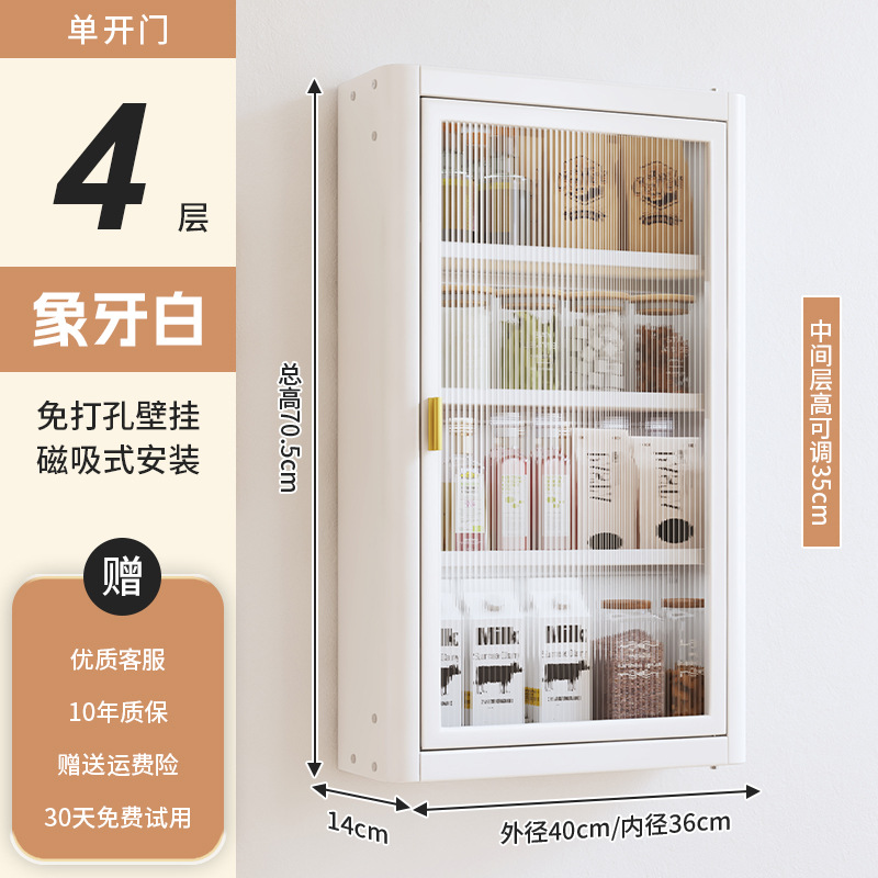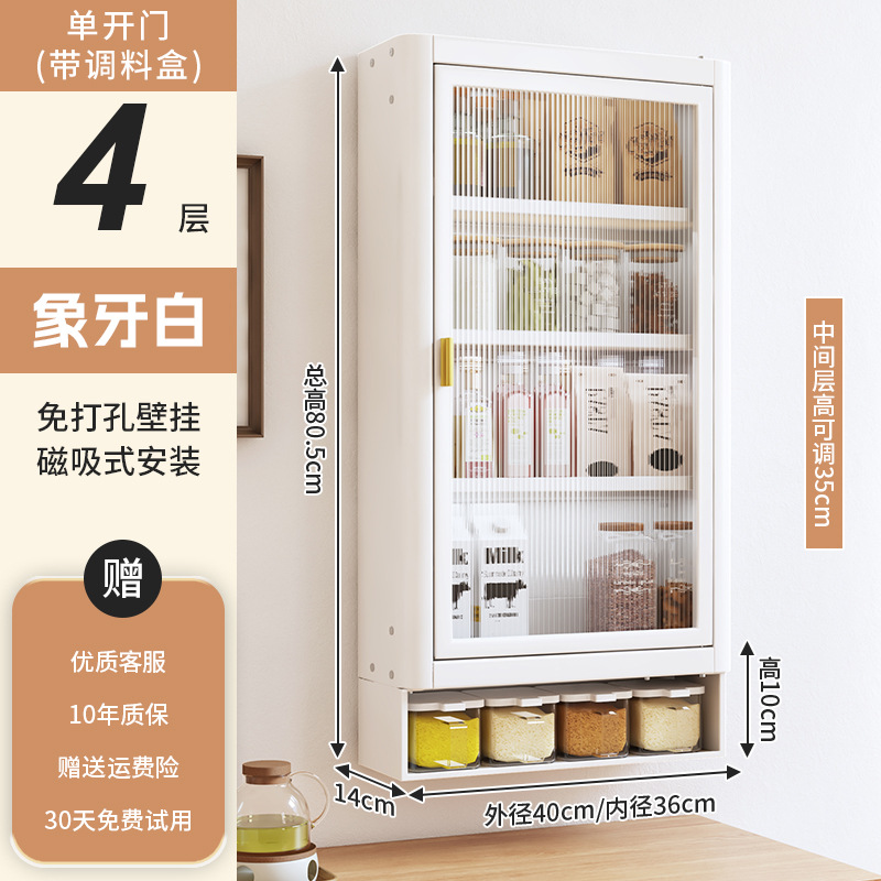 • [아이보리화이트] 대용량 40CM 무펀치 4단 벽걸이수납장(싱글도어) - 양념박스 포함
