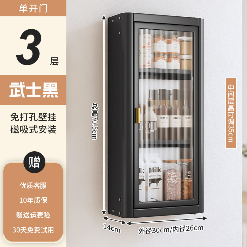 • [사무라이 블랙] 대용량 30CM 무펀치 3단 벽수납장(싱글도어) - 양념박스 포함