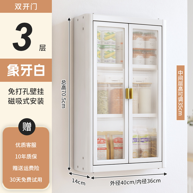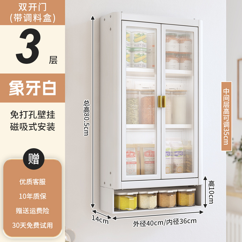 • [아이보리화이트] 대용량 40CM 무펀치 3단 벽걸이수납장(양문) - 양념박스 포함
