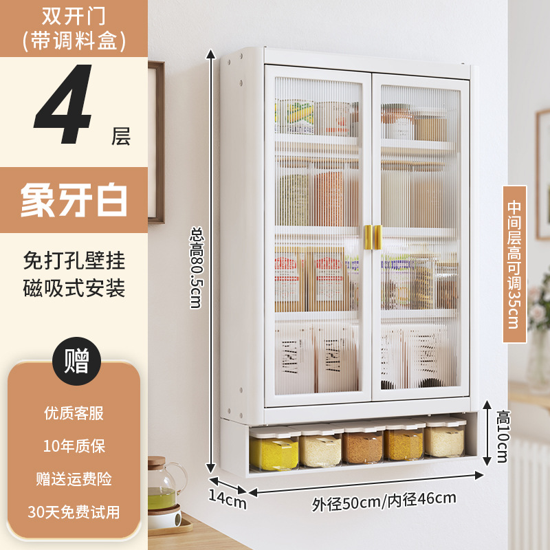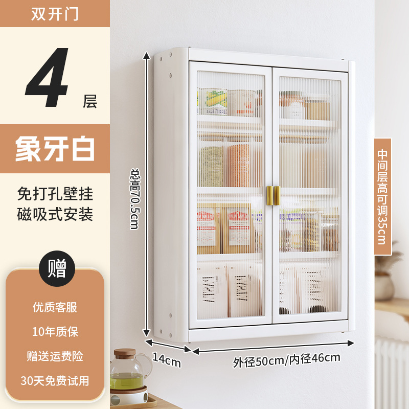 • [아이보리화이트] 대용량 50CM 무펀치 4단 벽걸이수납장(양문) - 양념박스 포함