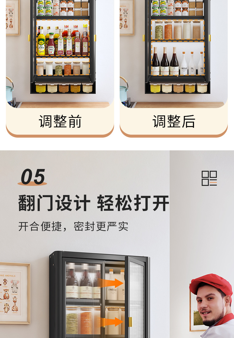 조미료 보관 상자 주방 벽걸이 형 다기능 랙 보관 캐비닛 오일 소금 소스 식초 항아리 보관 캐비닛