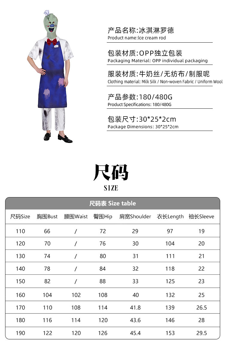크로스 보더 호러 아이스크림 로즈 코스프레 의상 할로윈 파티 프롬 코스프레 원피스 옷스토어 가기
