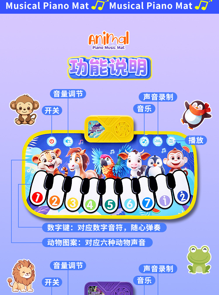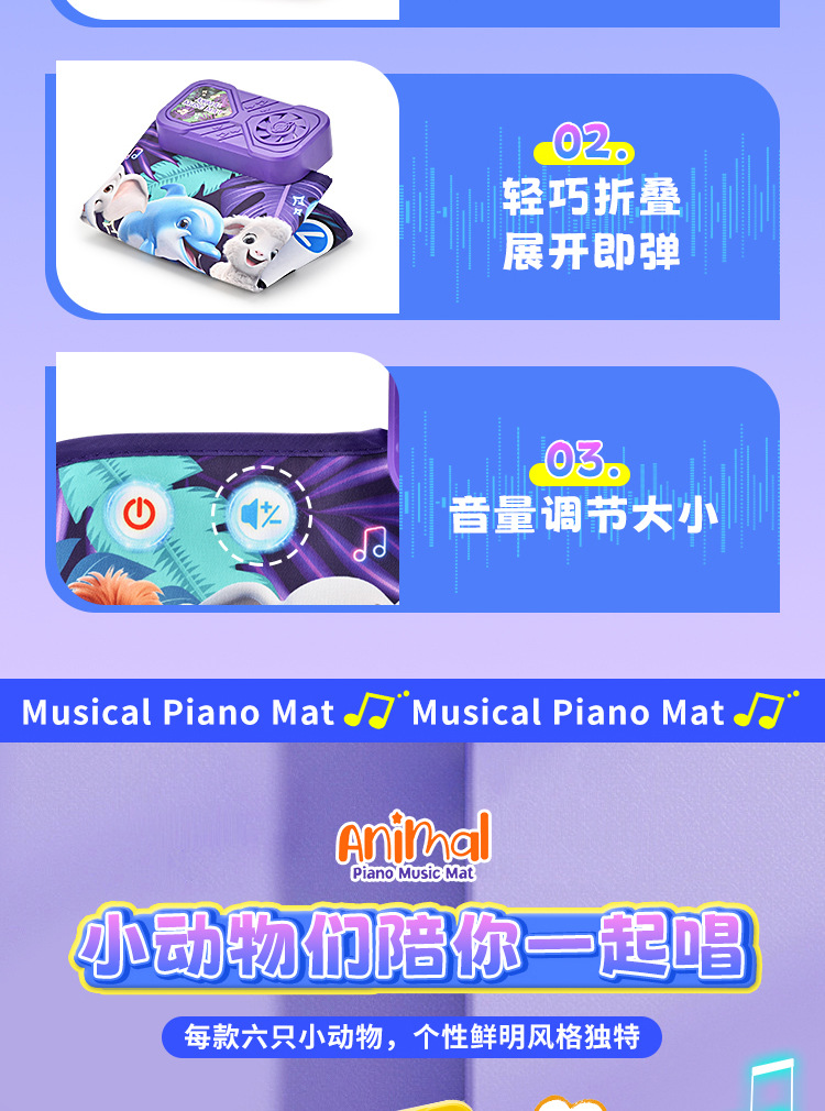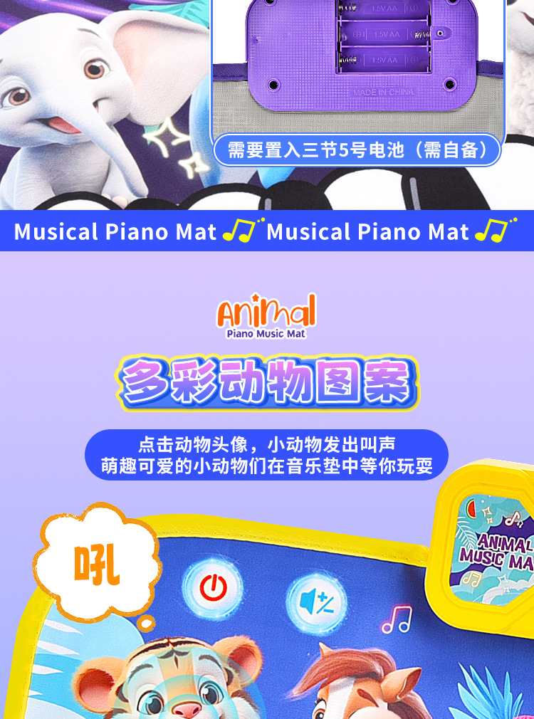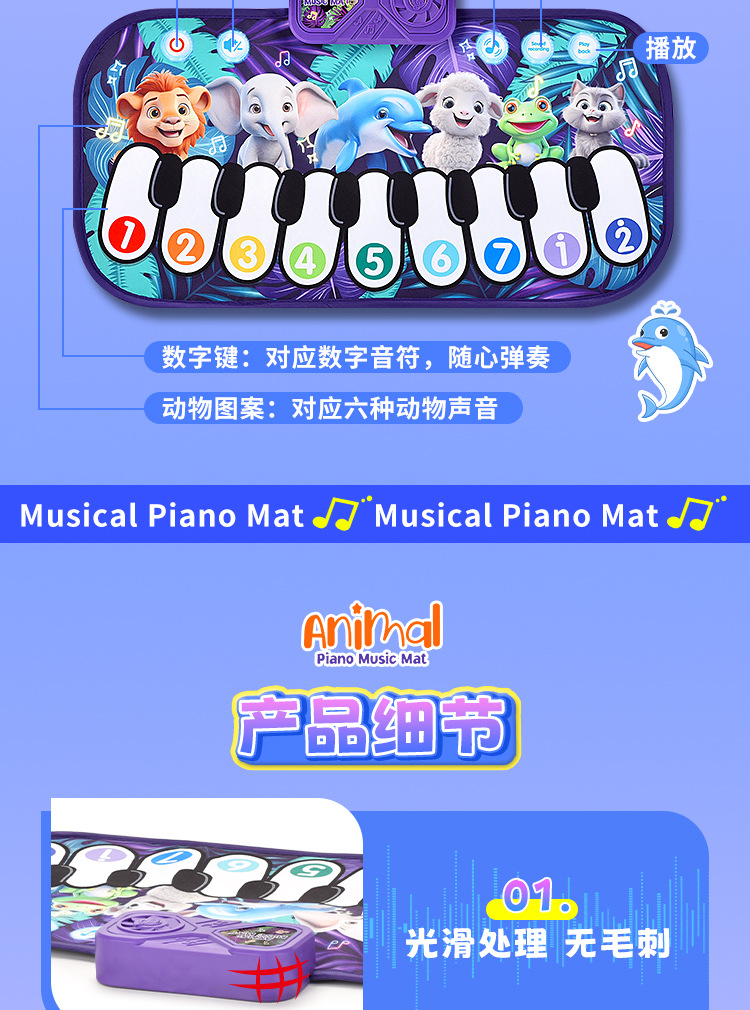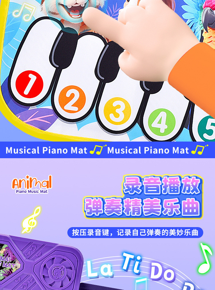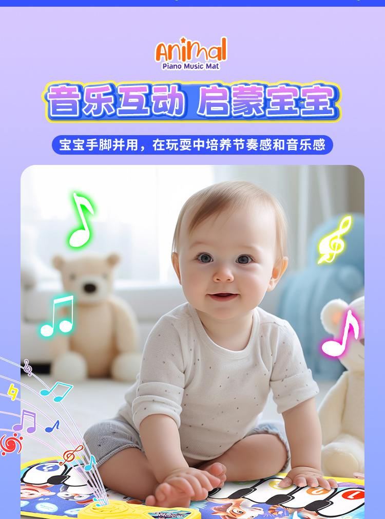국경 간 어린이 발 피아노 음악 담요 발자국 키 아기의 크롤링 담요 동물 재미있는 음악 매트