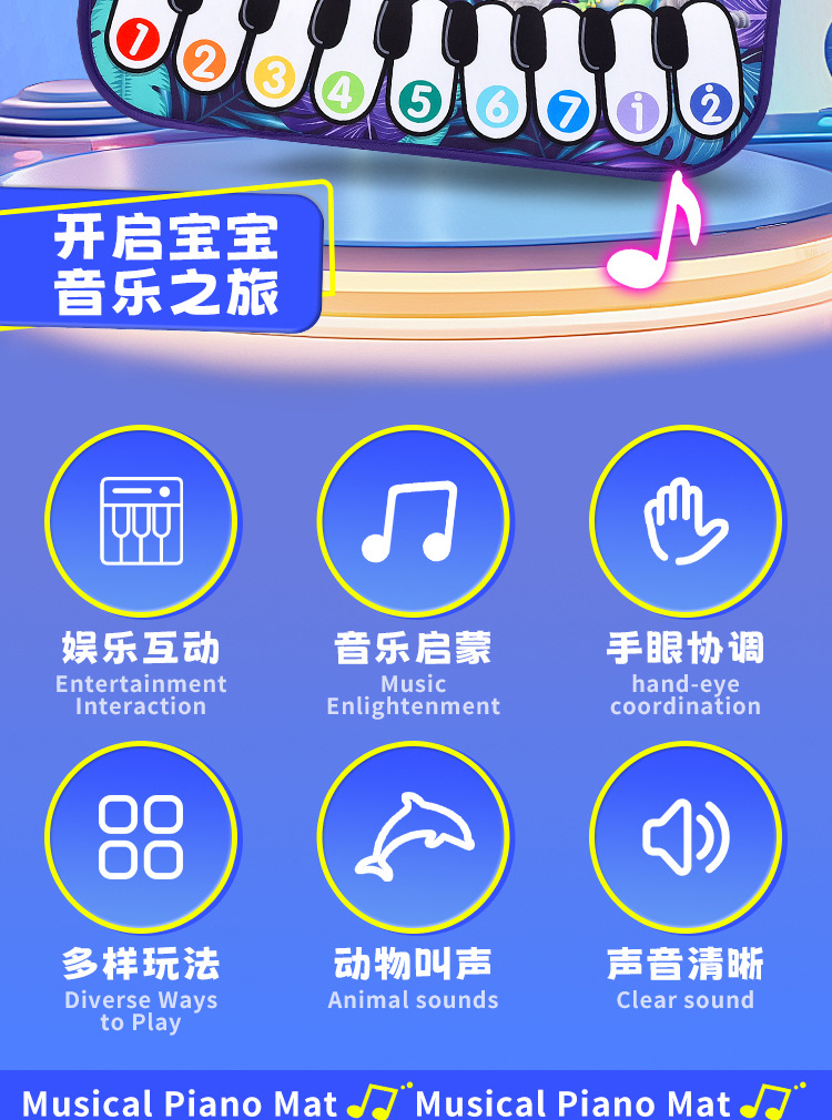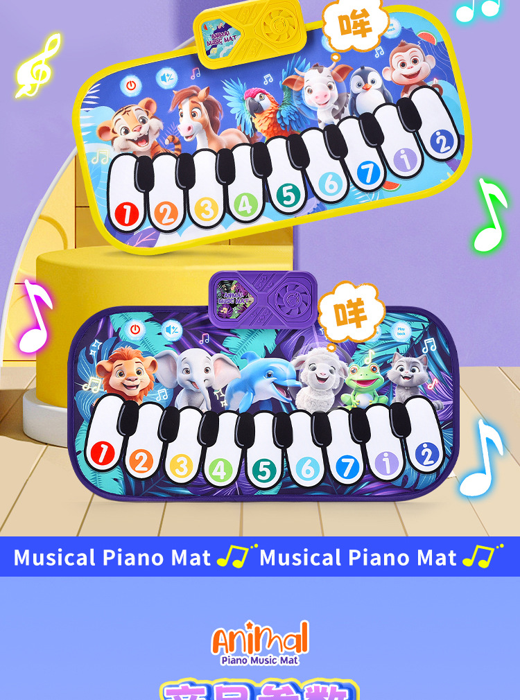국경 간 어린이 발 피아노 음악 담요 발자국 키 아기의 크롤링 담요 동물 재미있는 음악 매트스토어 가기