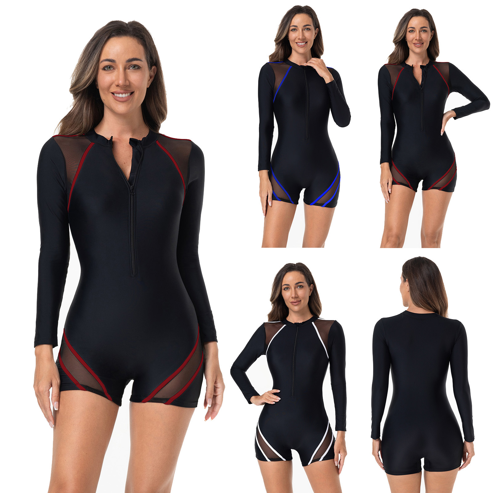 3 색 유럽과 미국의 수영복 여성 대외 무역 서퍼 세트 지퍼 플랫 앵글 다이빙 세트 스포츠 수영복 레이스 바 조립스토어 가기