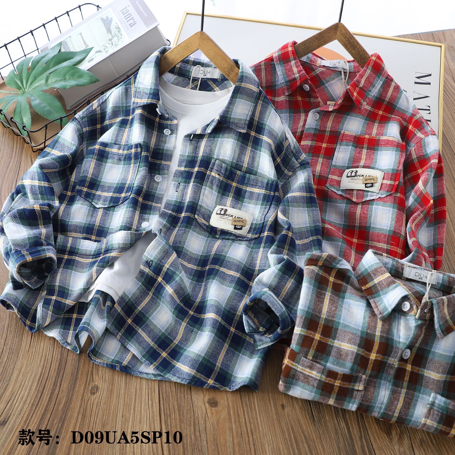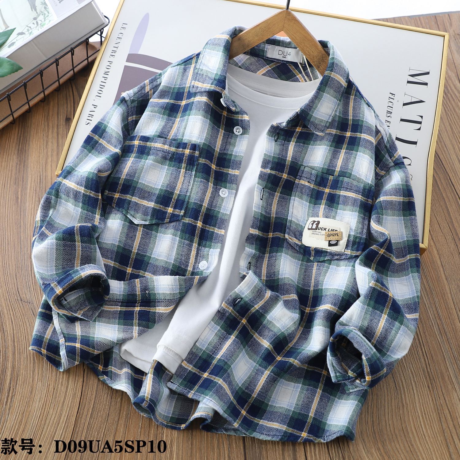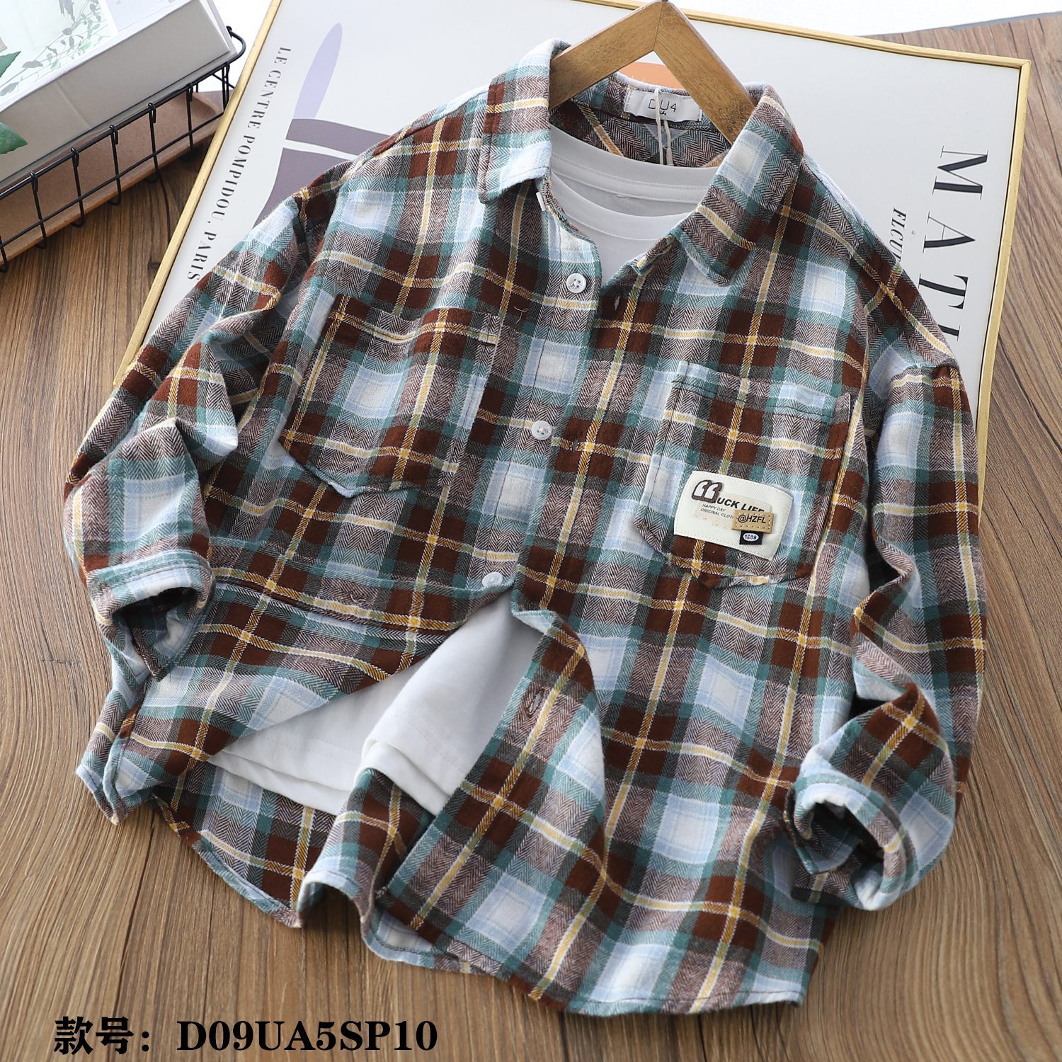 1.磨毛色织格纹面料,采用色织工艺,透气性好,不 设计亮点: 1:宽松版型,厚度适中,颜色清新春天。2:衬衫领,左前口袋组合皮标装饰,版型干净利索。3:可以搭配小背心或者t,春天小外套;也可以单穿,穿搭性。 版型介绍:宽松版型功能性:春天百搭款,适合多场景穿着。