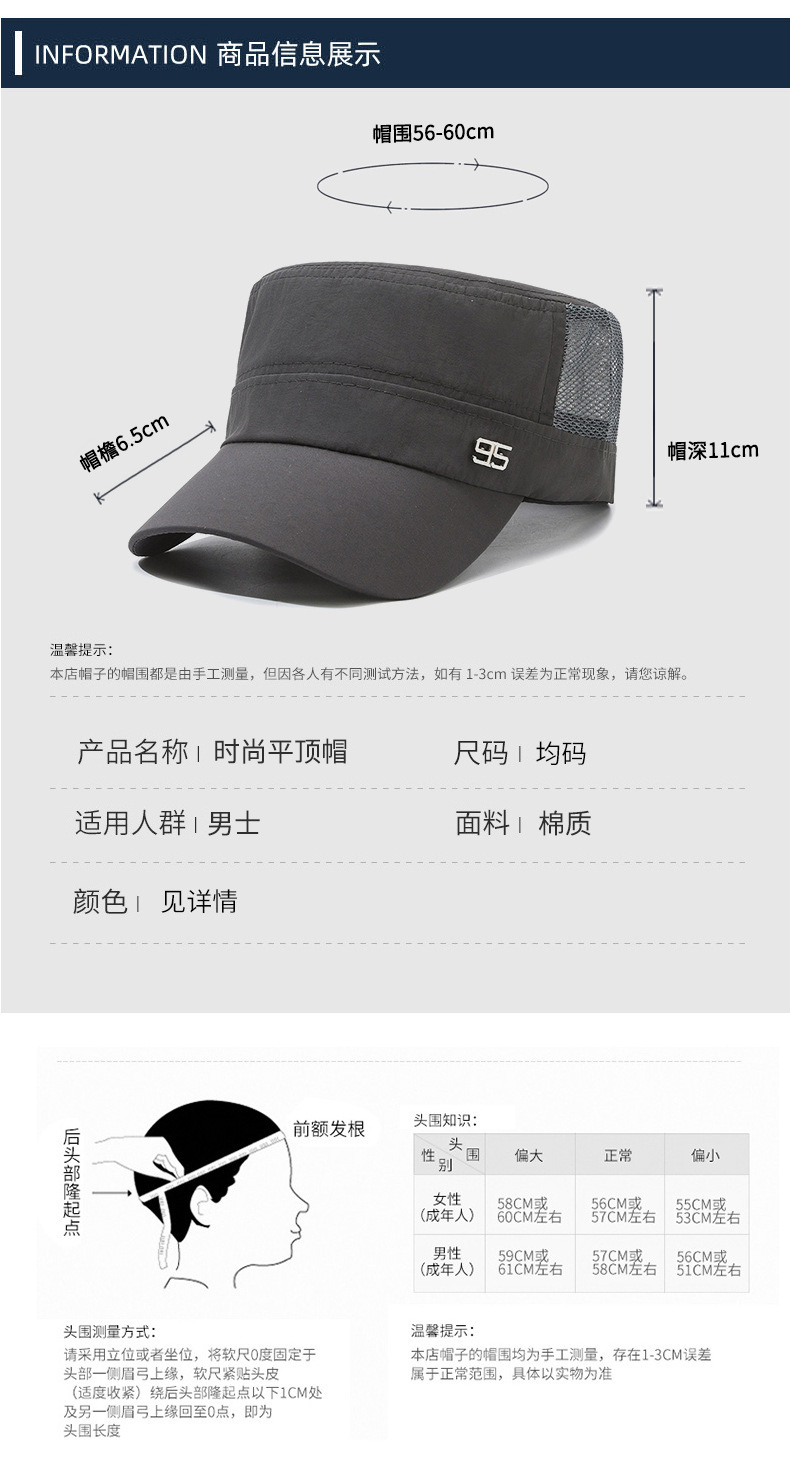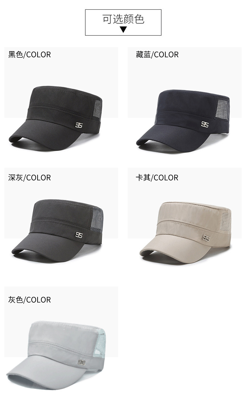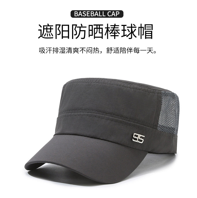 플랫 탑 모자 남자 여름 야외 선 스크린 육군 모자 메쉬 통기성 태양 모자 빠른 건조 모자 한국 야구 모자