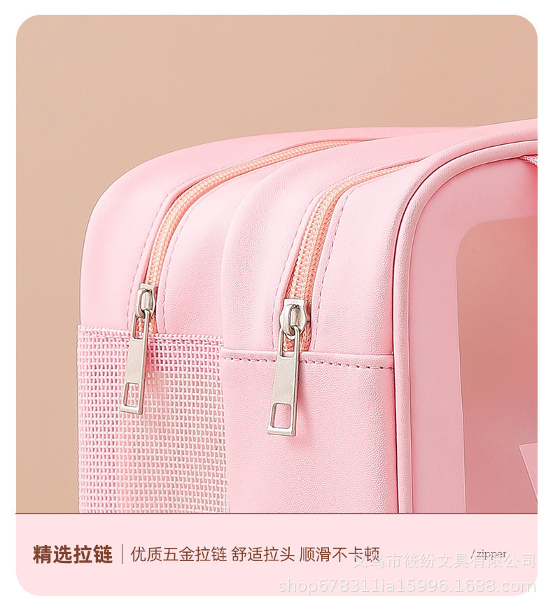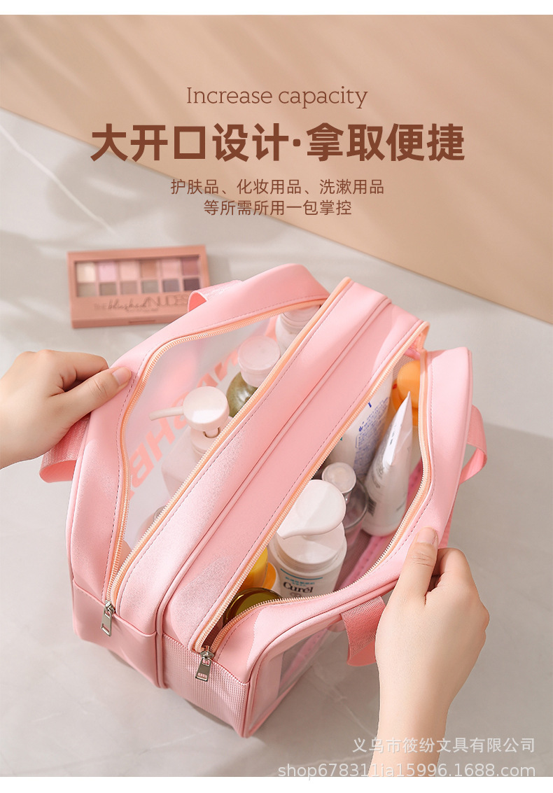 휴대용 PU 방수 세면 용품 가방, 여행용 간단한 대용량 휴대용 반투명 보관 가방, 건식 및 습식 분리 화장품 가방
