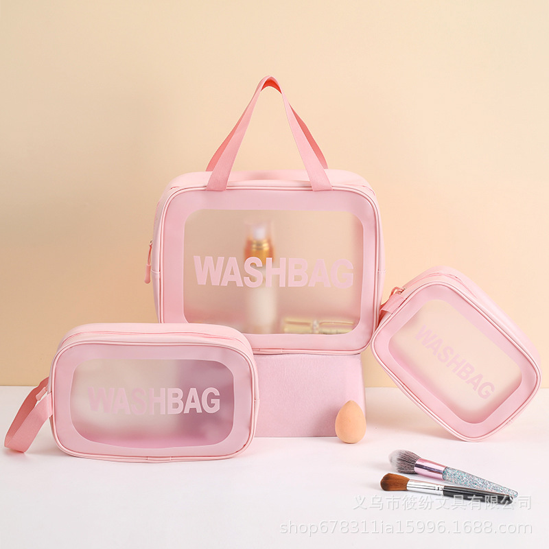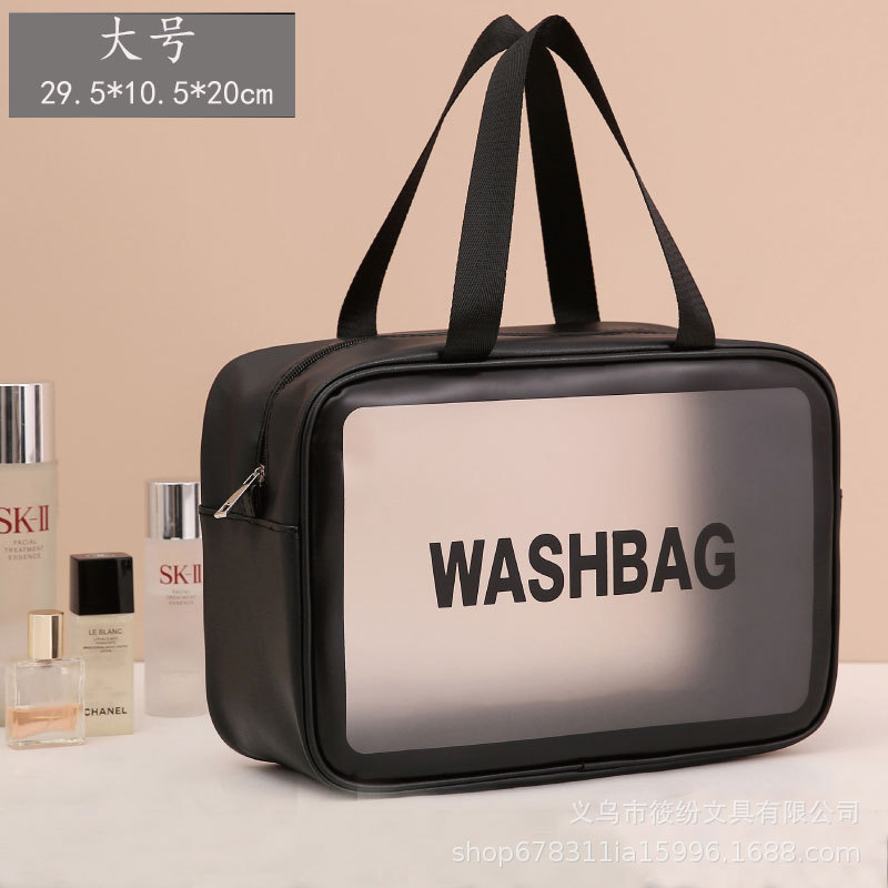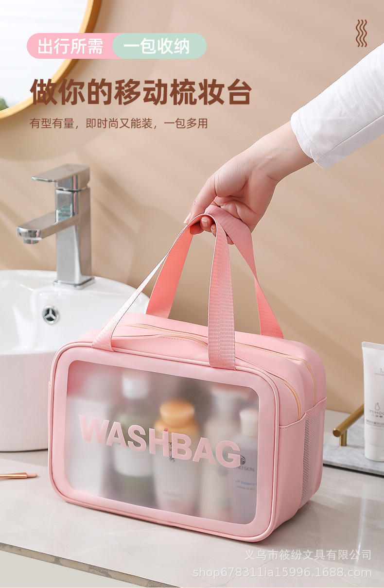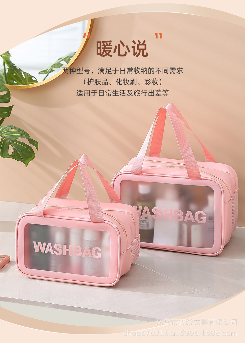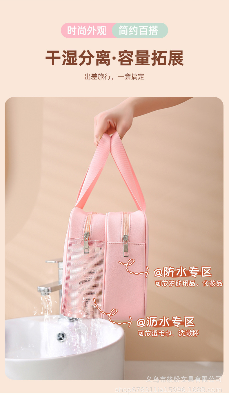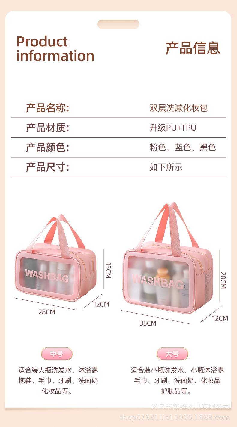 휴대용 PU 방수 세면 용품 가방, 여행용 간단한 대용량 휴대용 반투명 보관 가방, 건식 및 습식 분리 화장품 가방스토어 가기