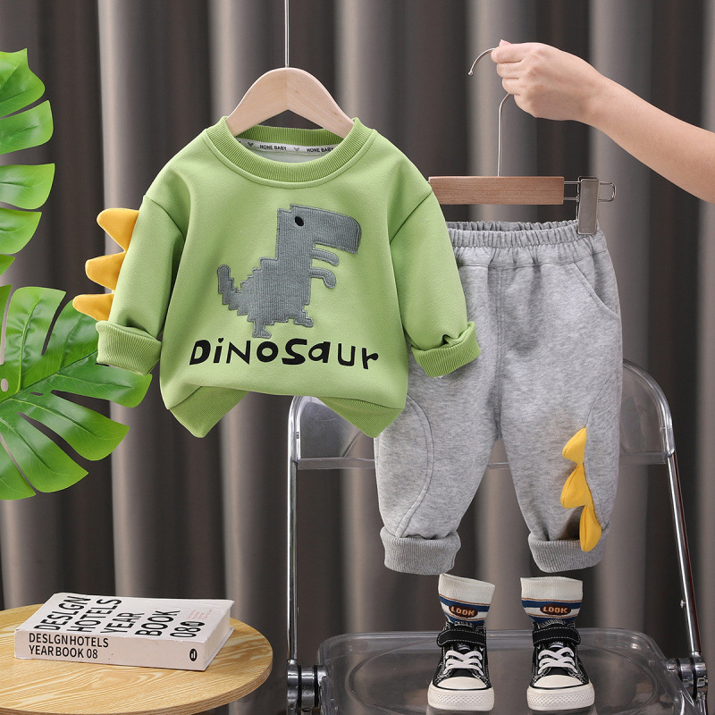 2025 새로운 아동복 소년 캐주얼 세트 봄과 가을 소년 공룡 조끼는 머리카락 한 세대에 두 조각 옷