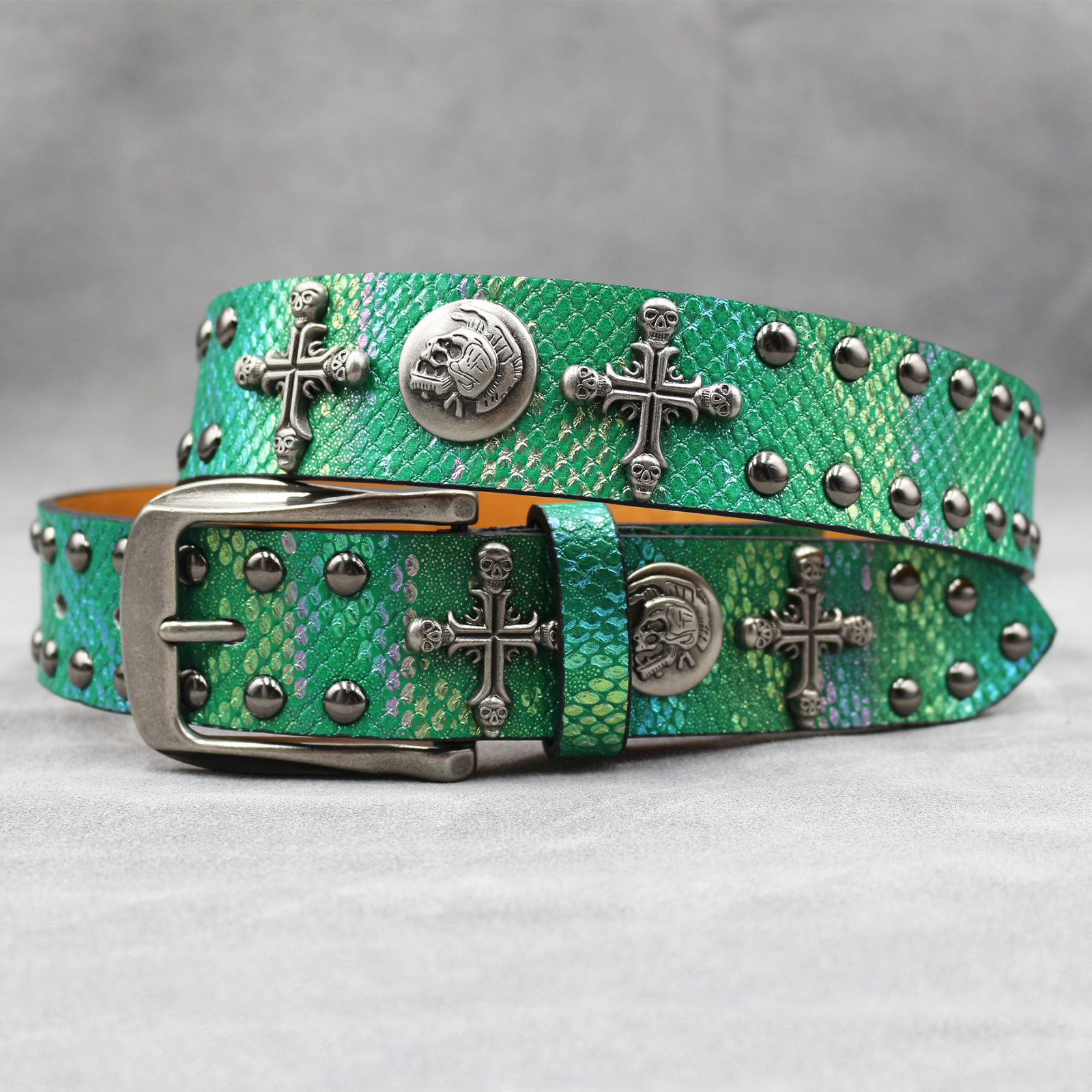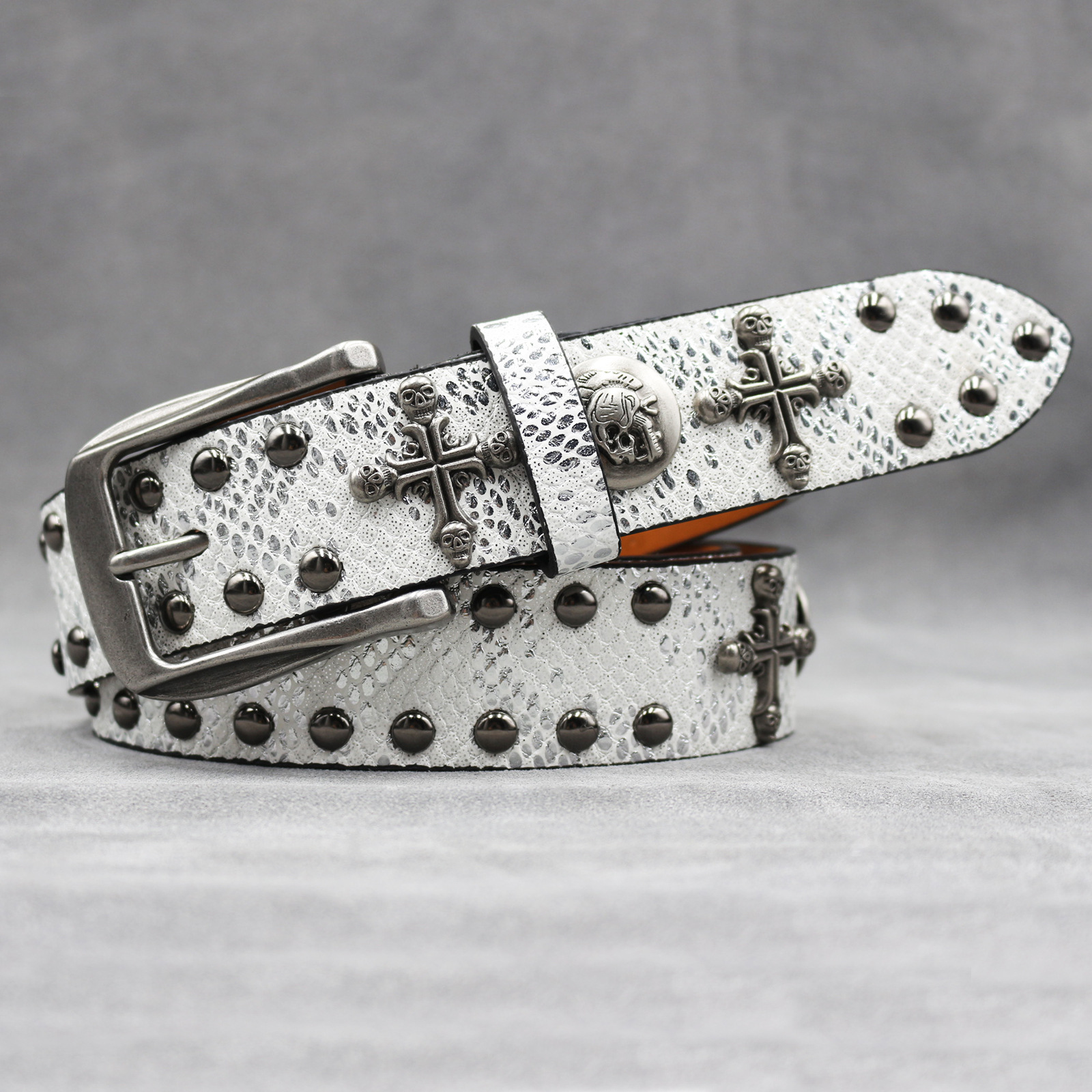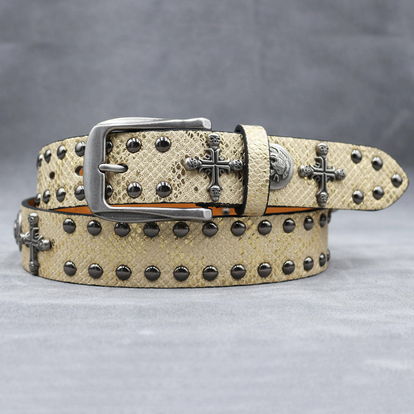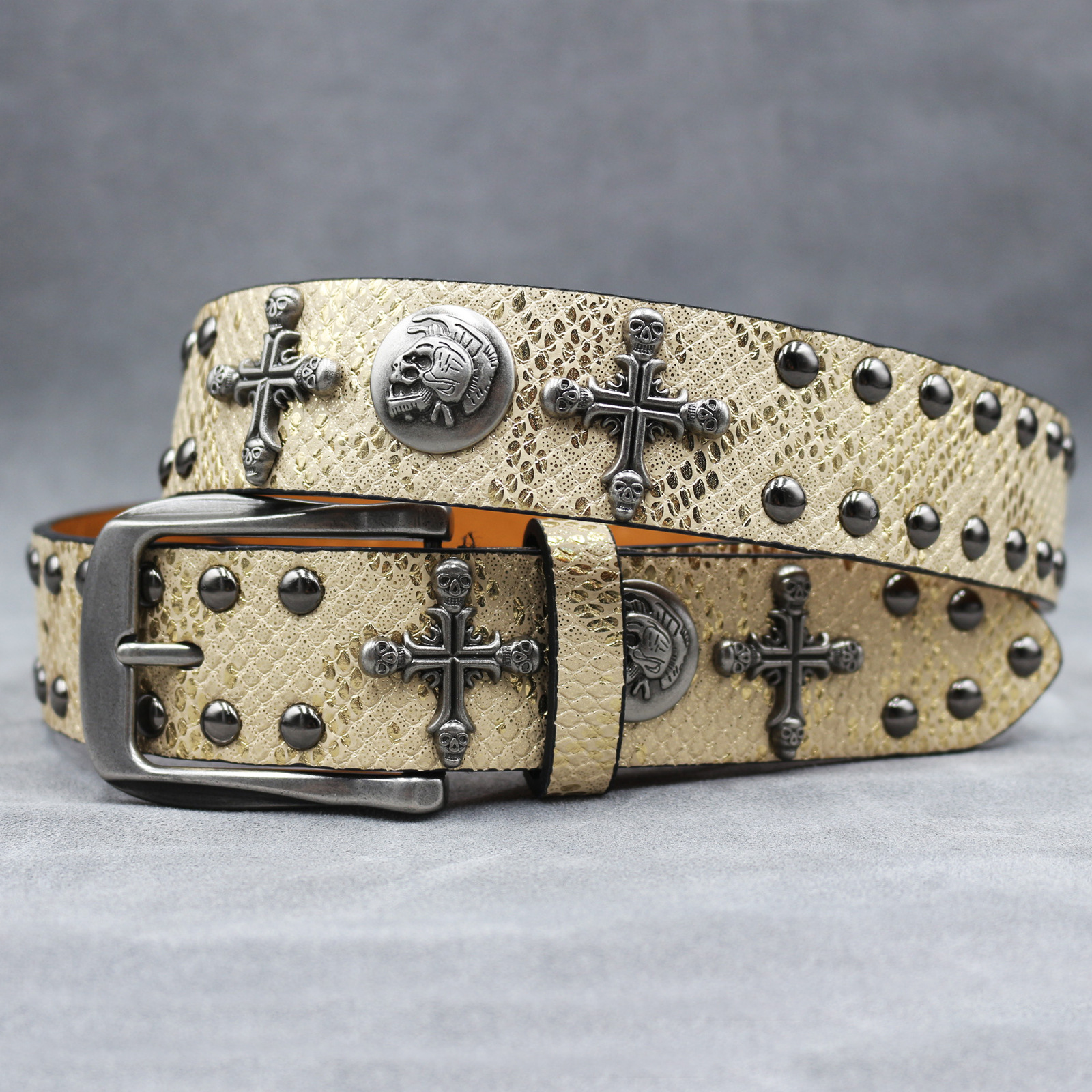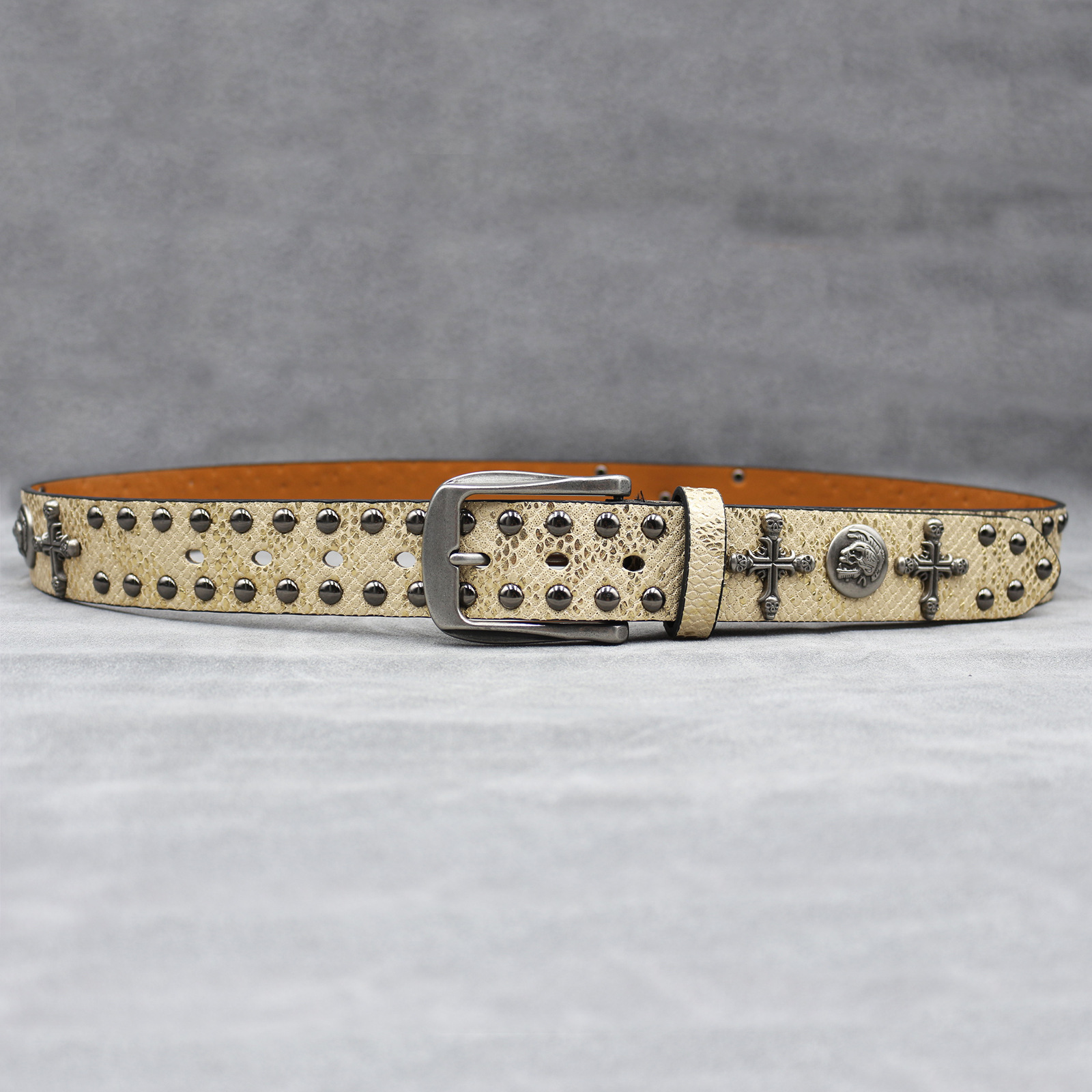 7 색 원래 크로스 해골 리벳 벨트 펑크 남성 벨트 여성 뱀 패턴 올 매치 장식 벨트 도매
