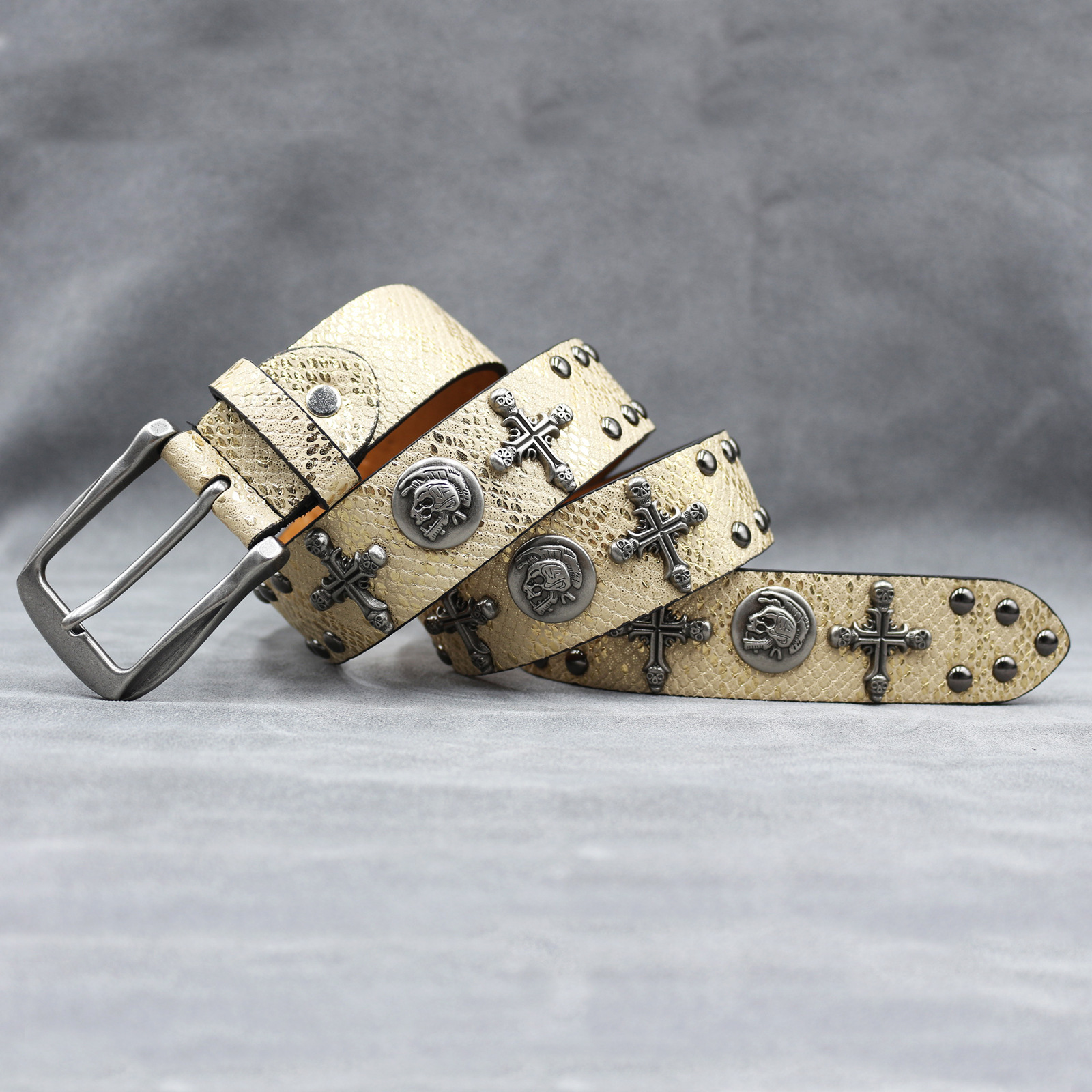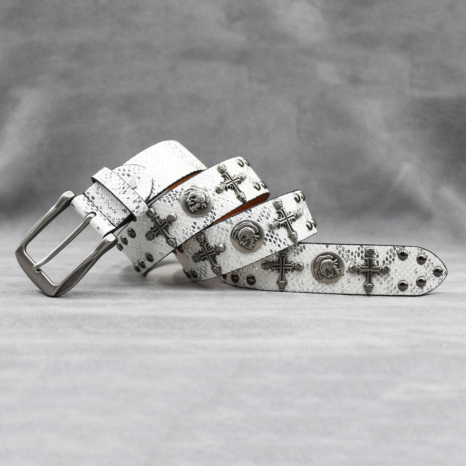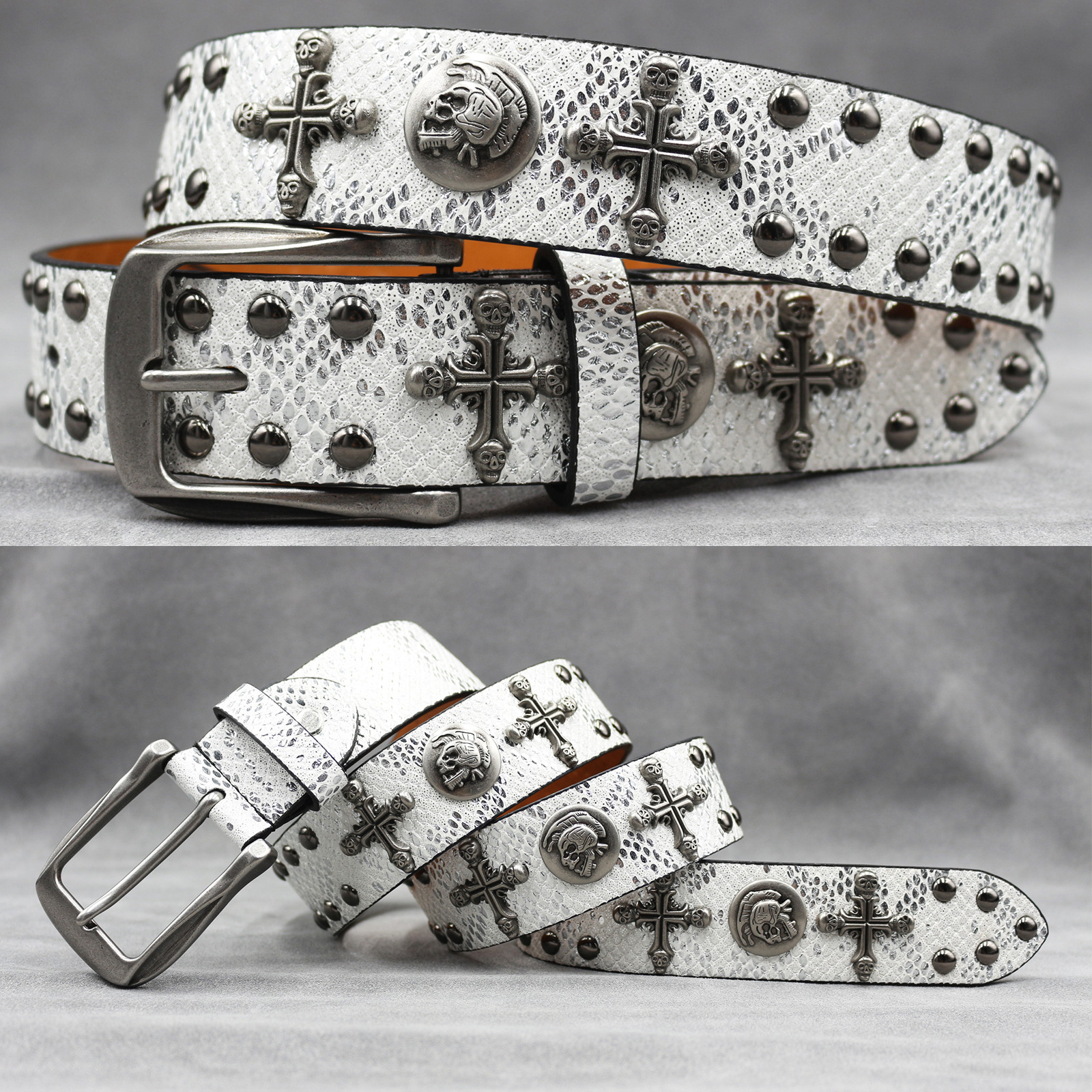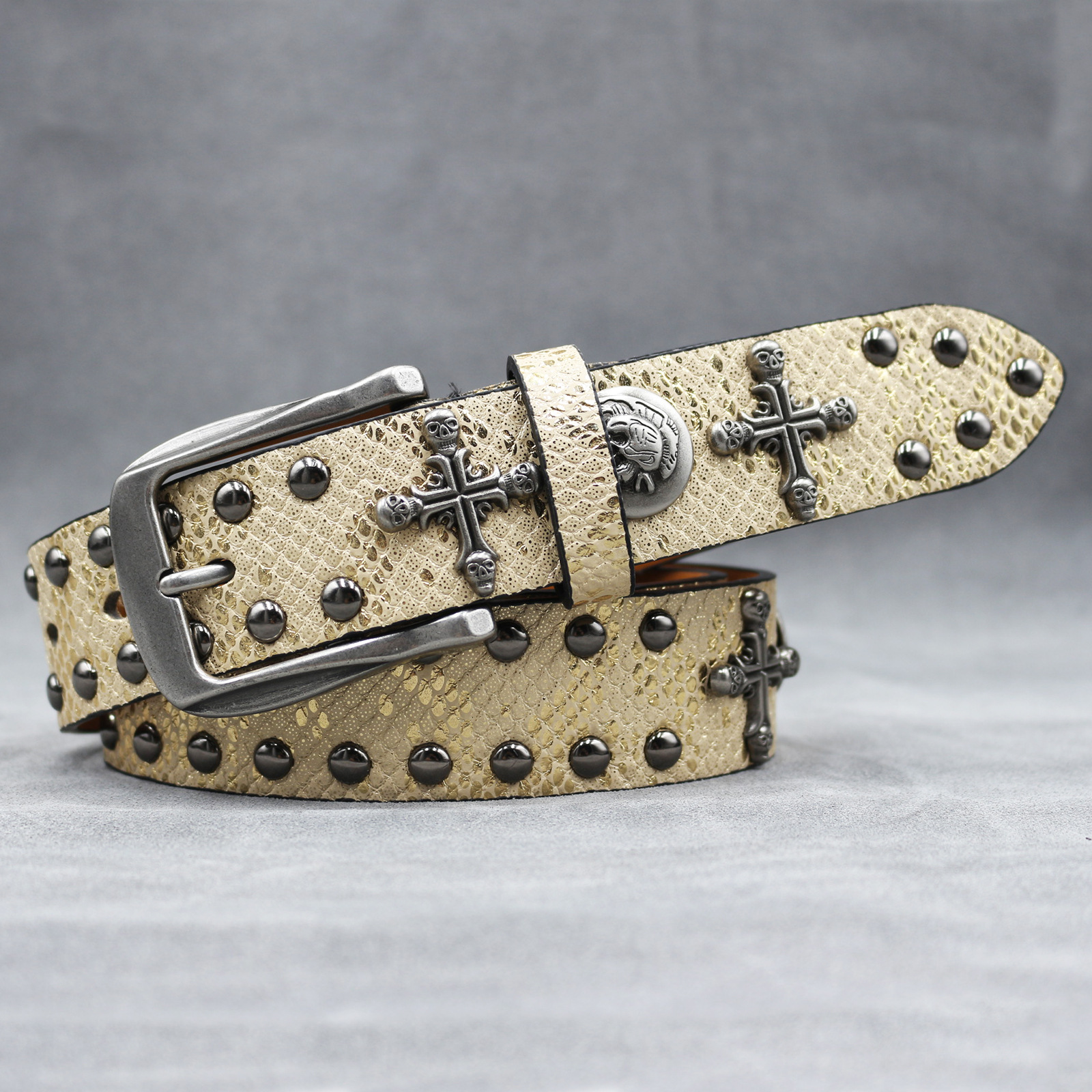 7 색 원래 크로스 해골 리벳 벨트 펑크 남성 벨트 여성 뱀 패턴 올 매치 장식 벨트 도매