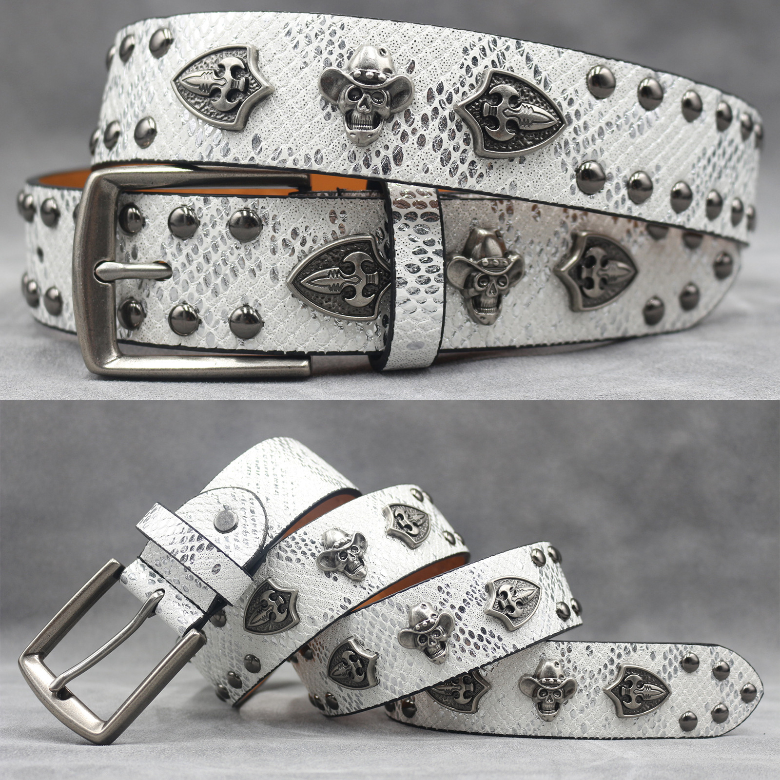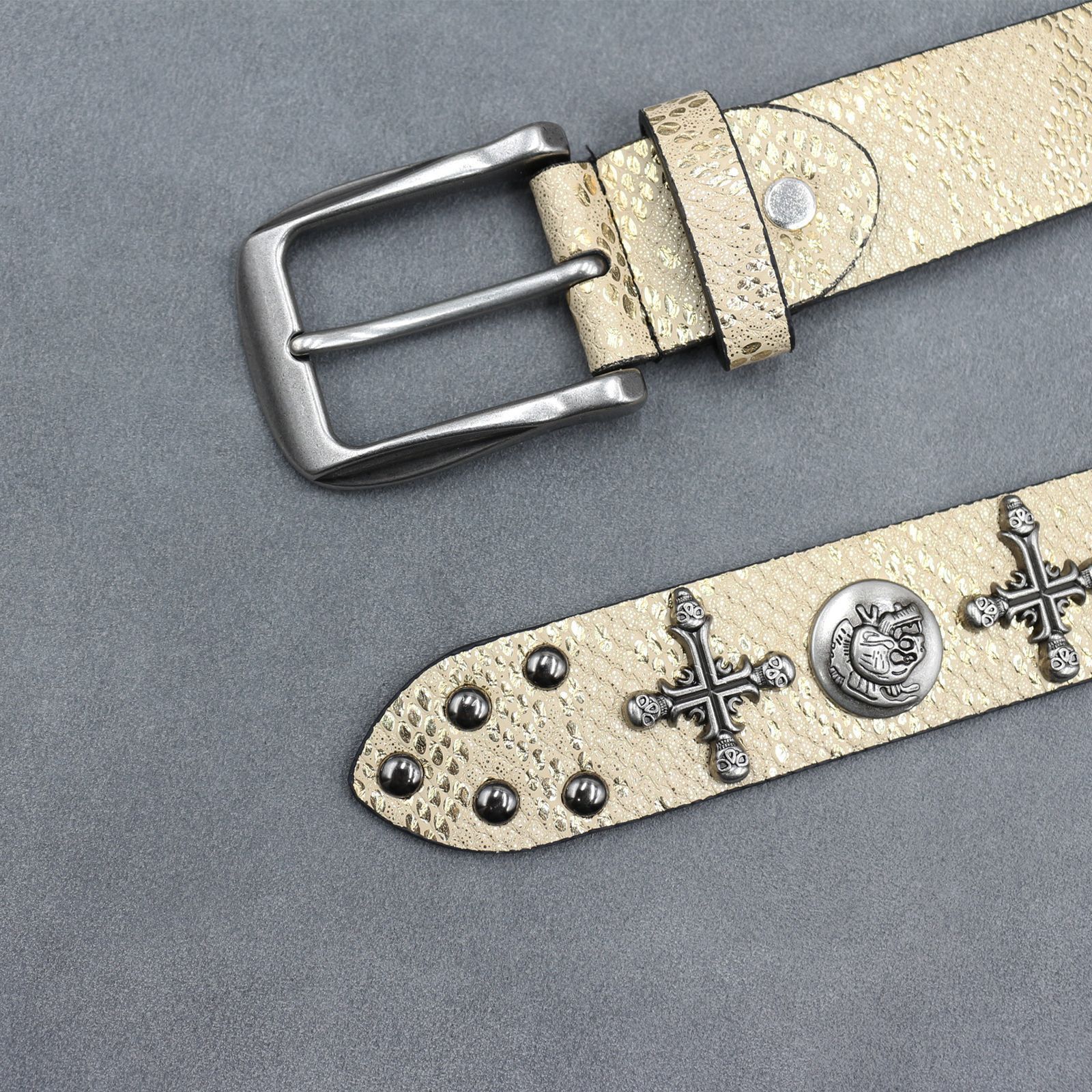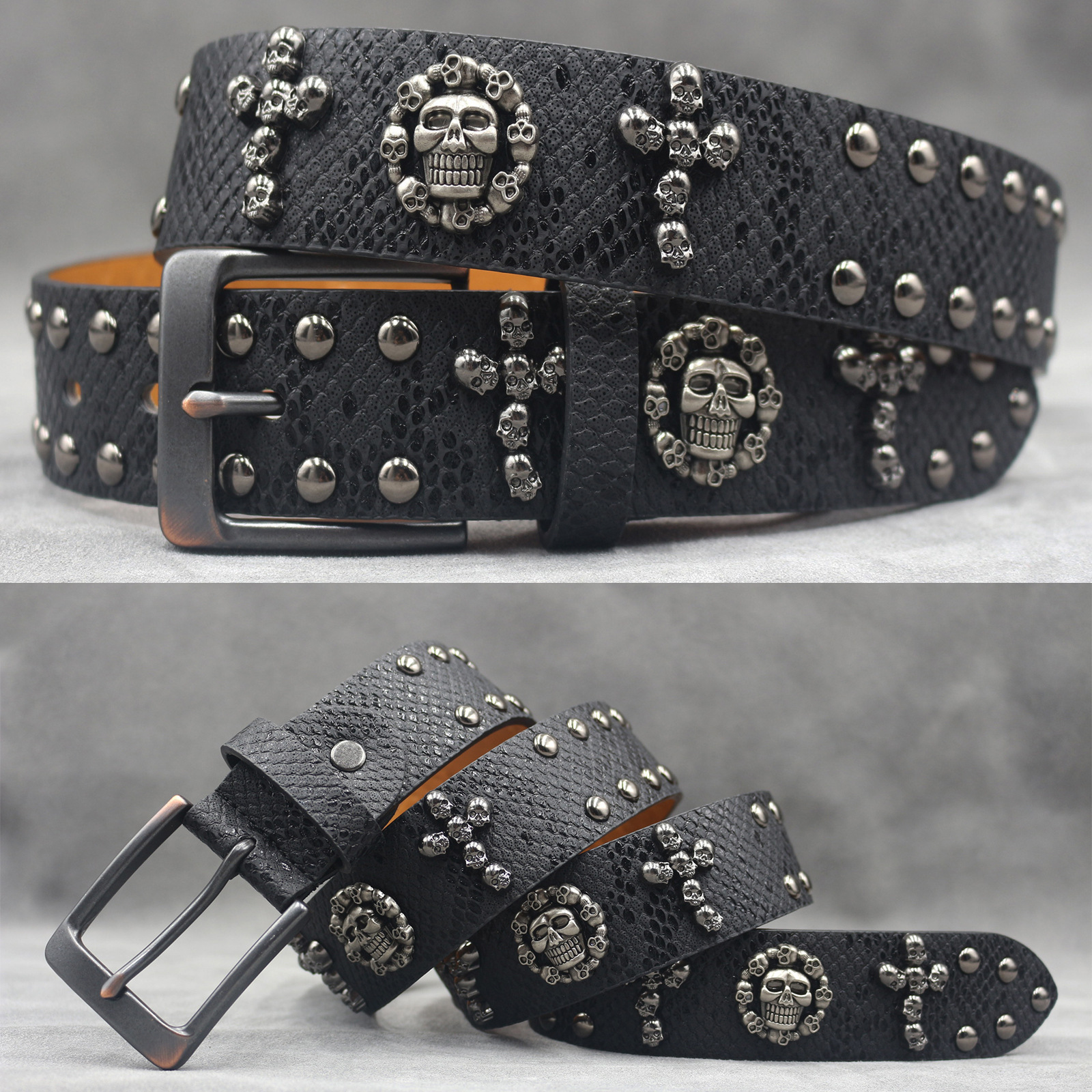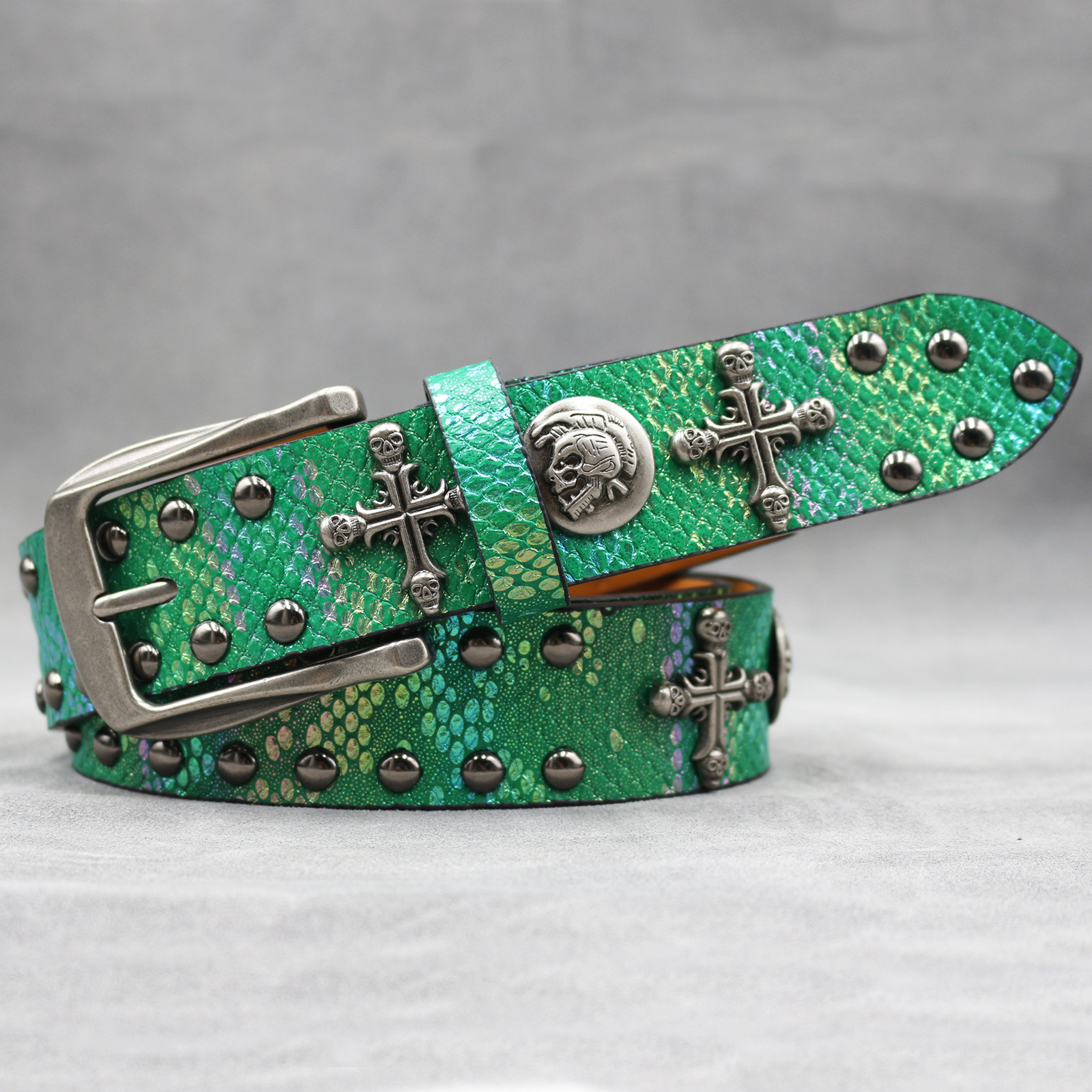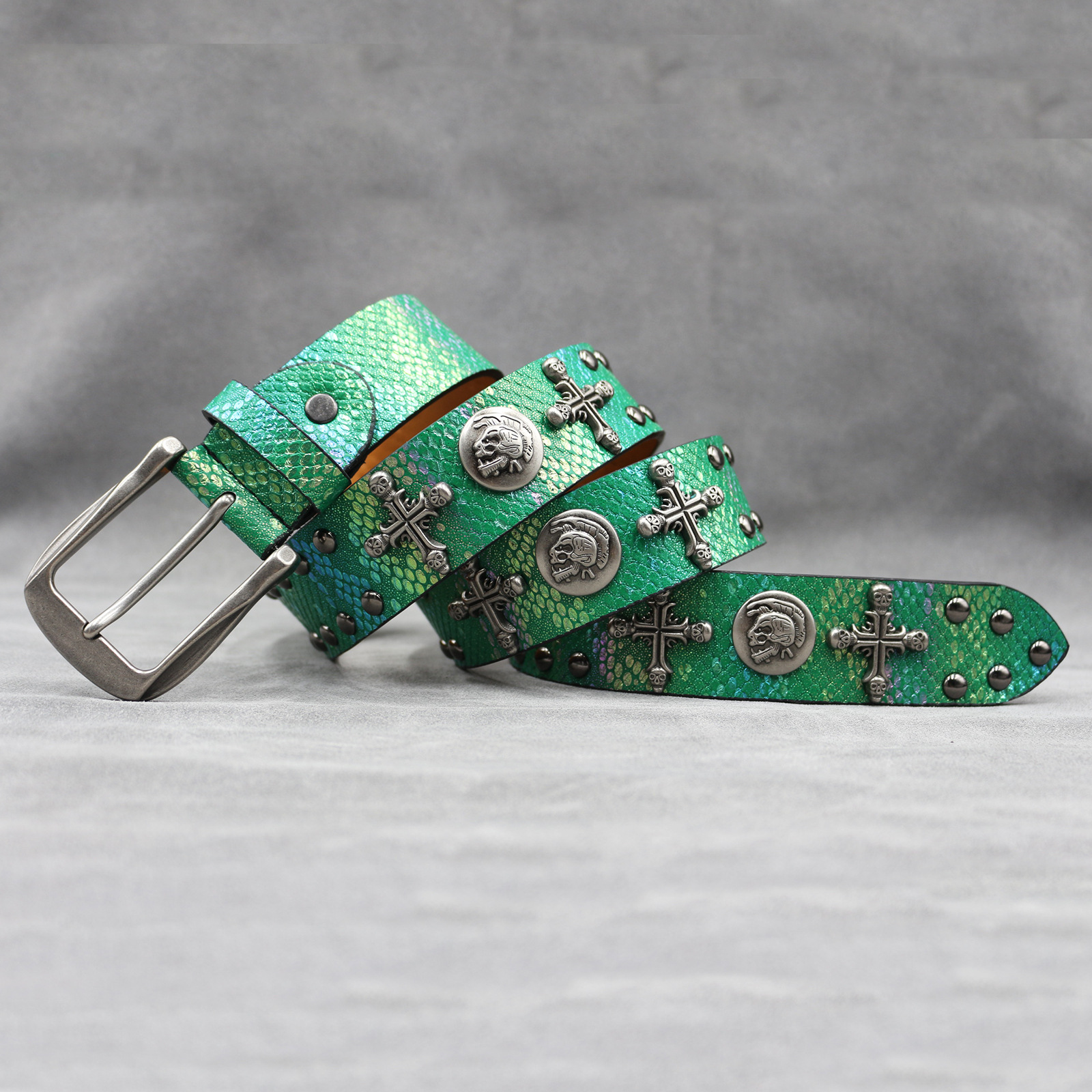 7 색 원래 크로스 해골 리벳 벨트 펑크 남성 벨트 여성 뱀 패턴 올 매치 장식 벨트 도매