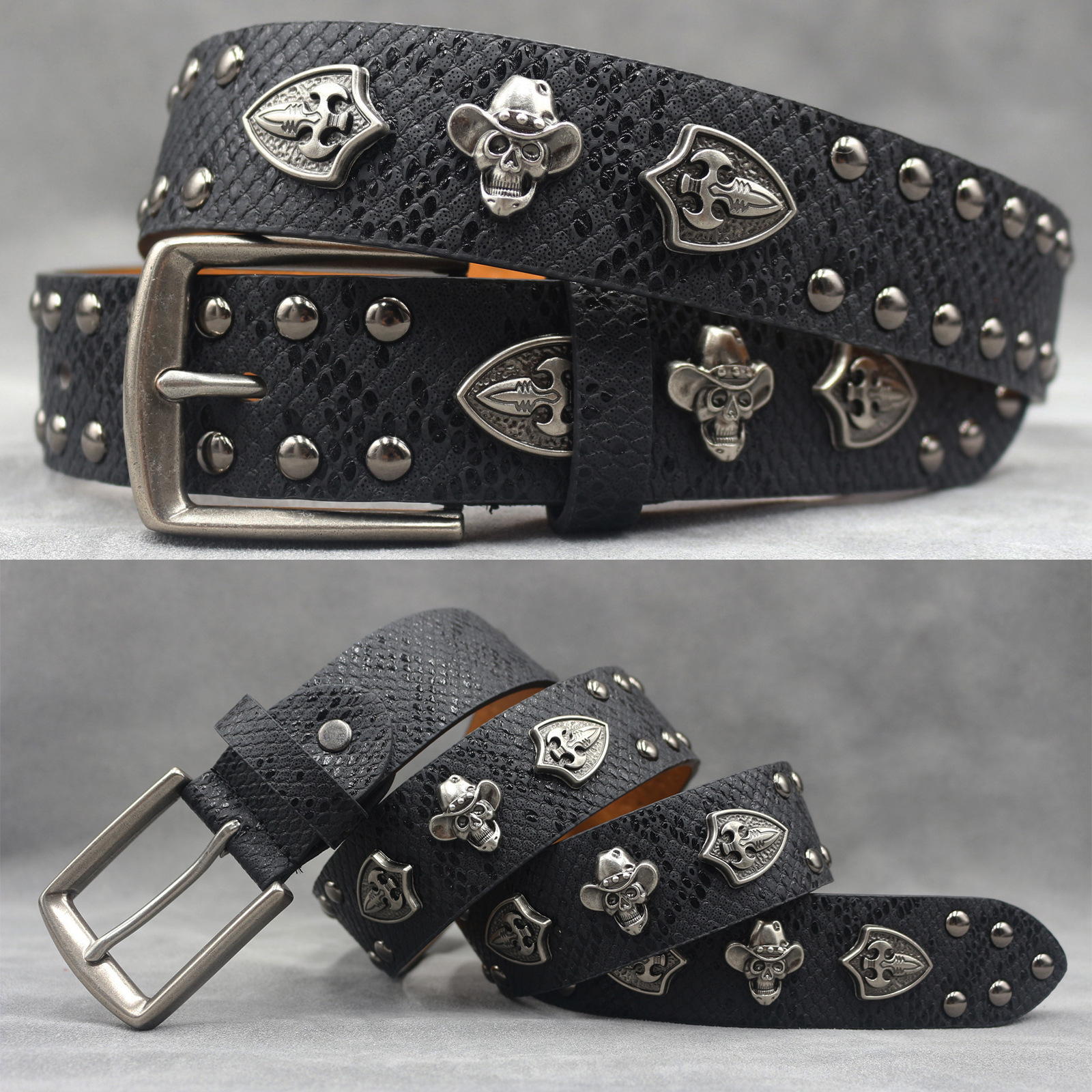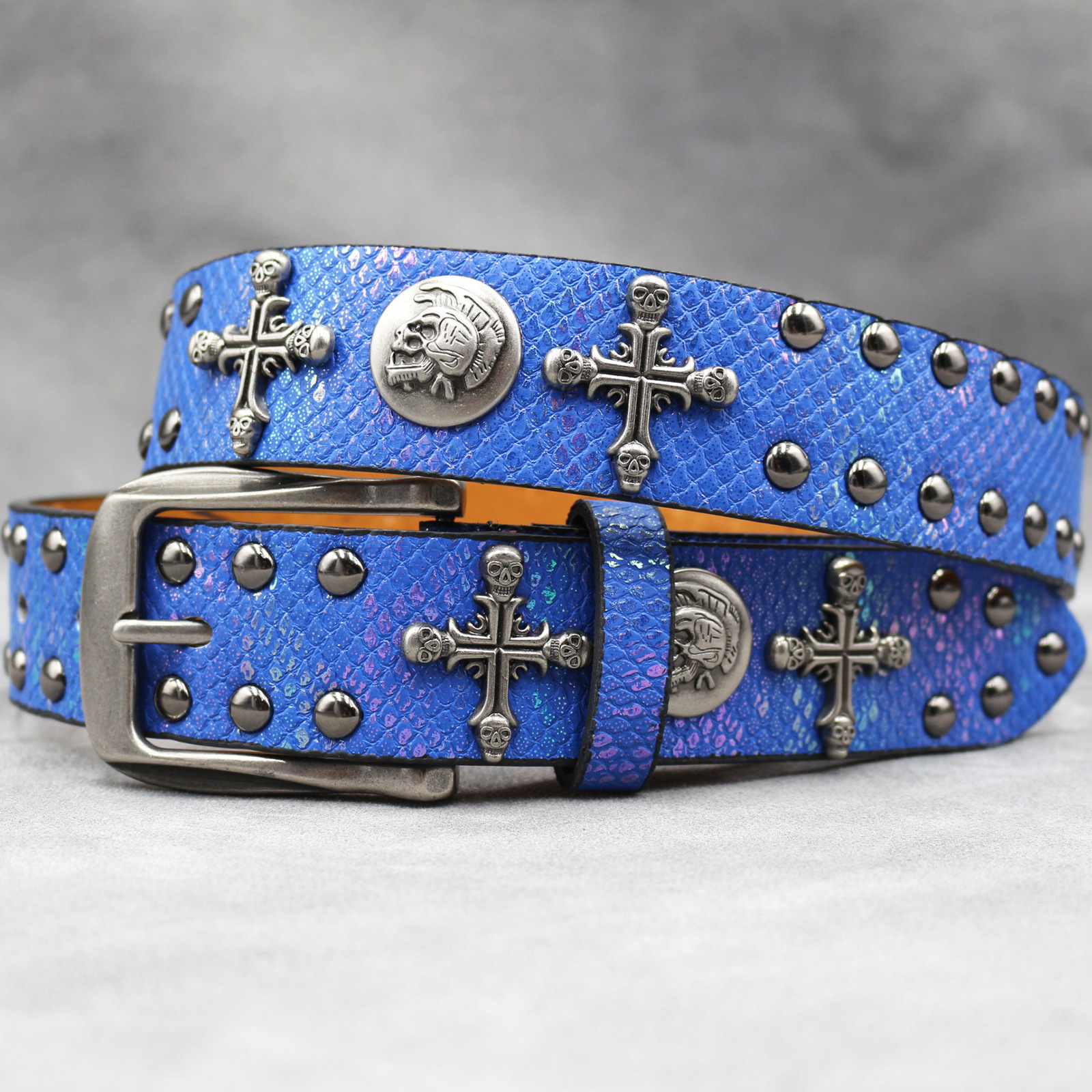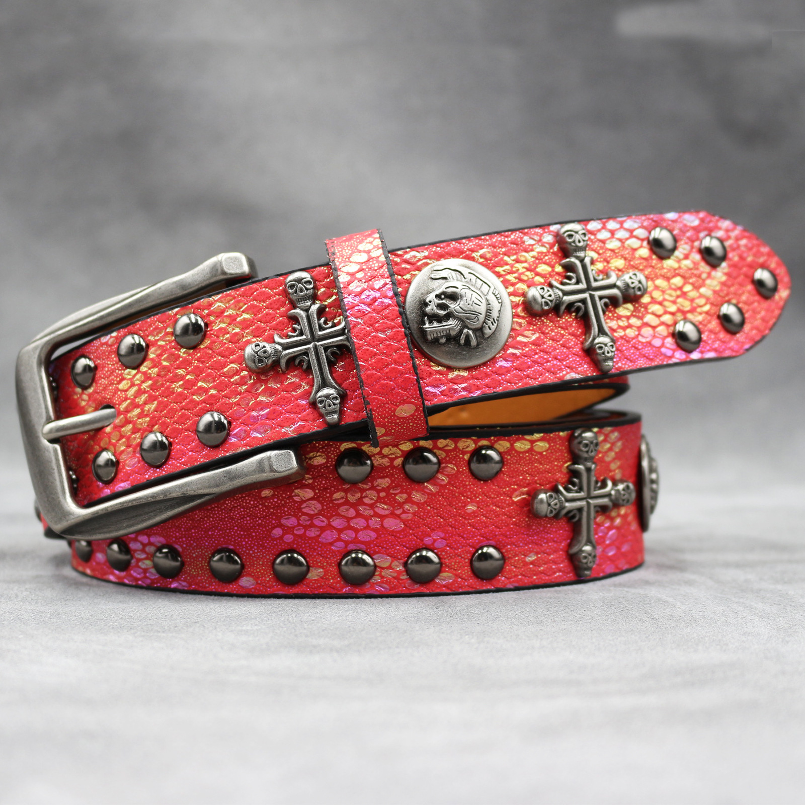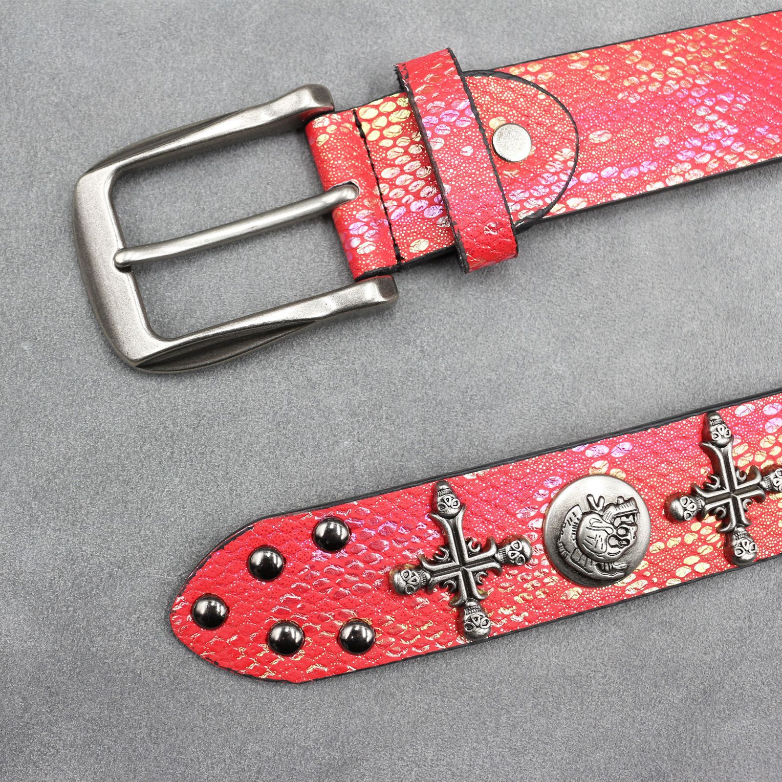 7 색 원래 크로스 해골 리벳 벨트 펑크 남성 벨트 여성 뱀 패턴 올 매치 장식 벨트 도매