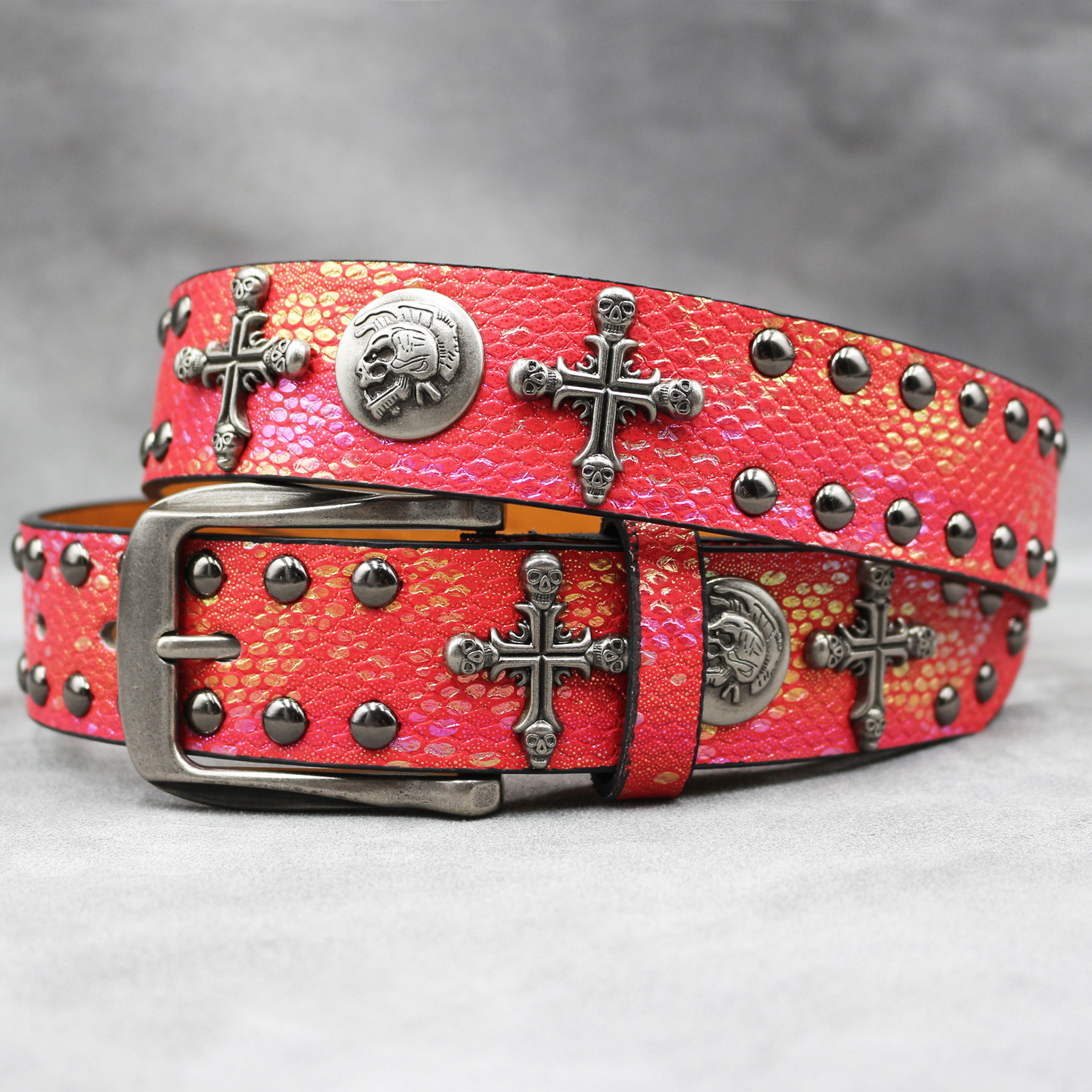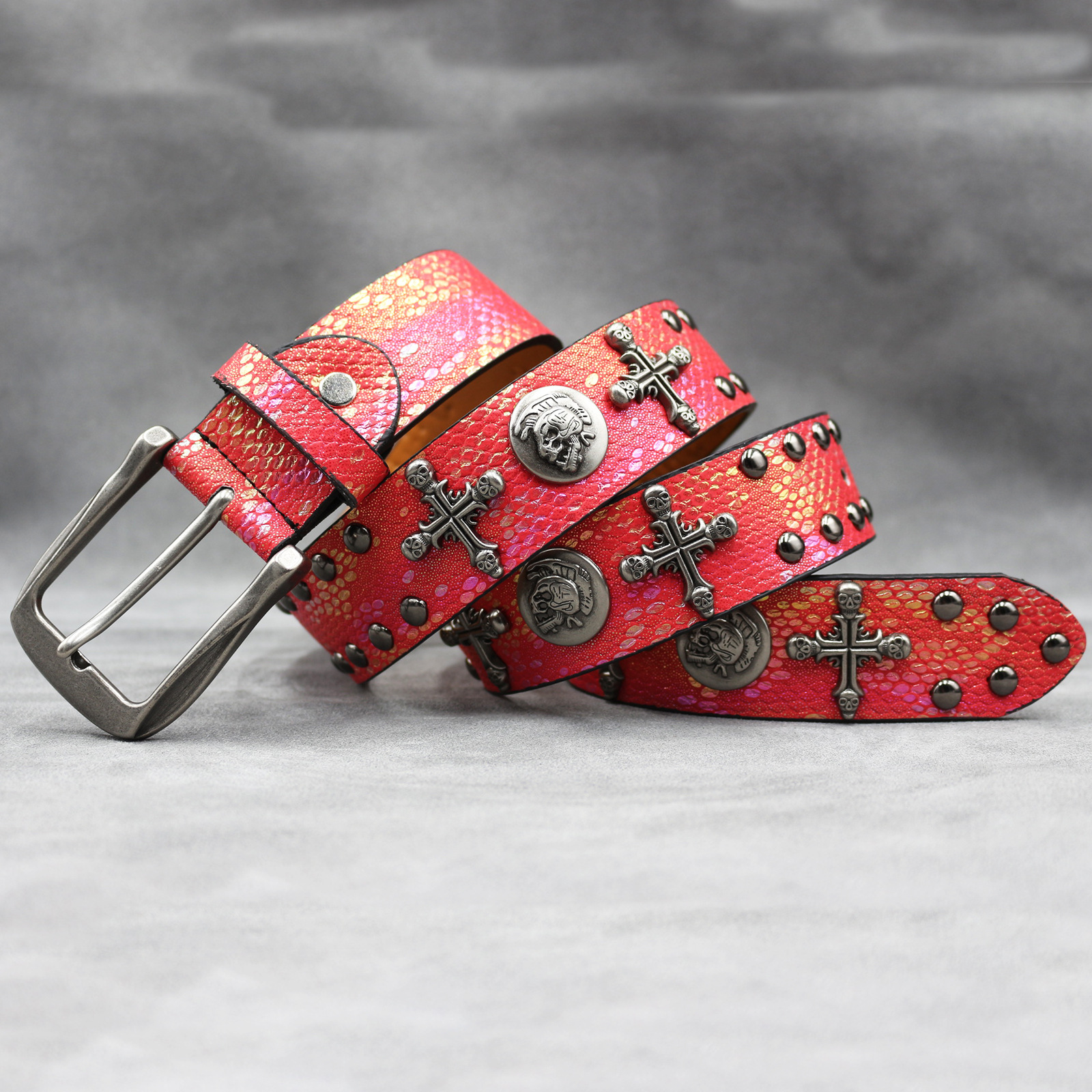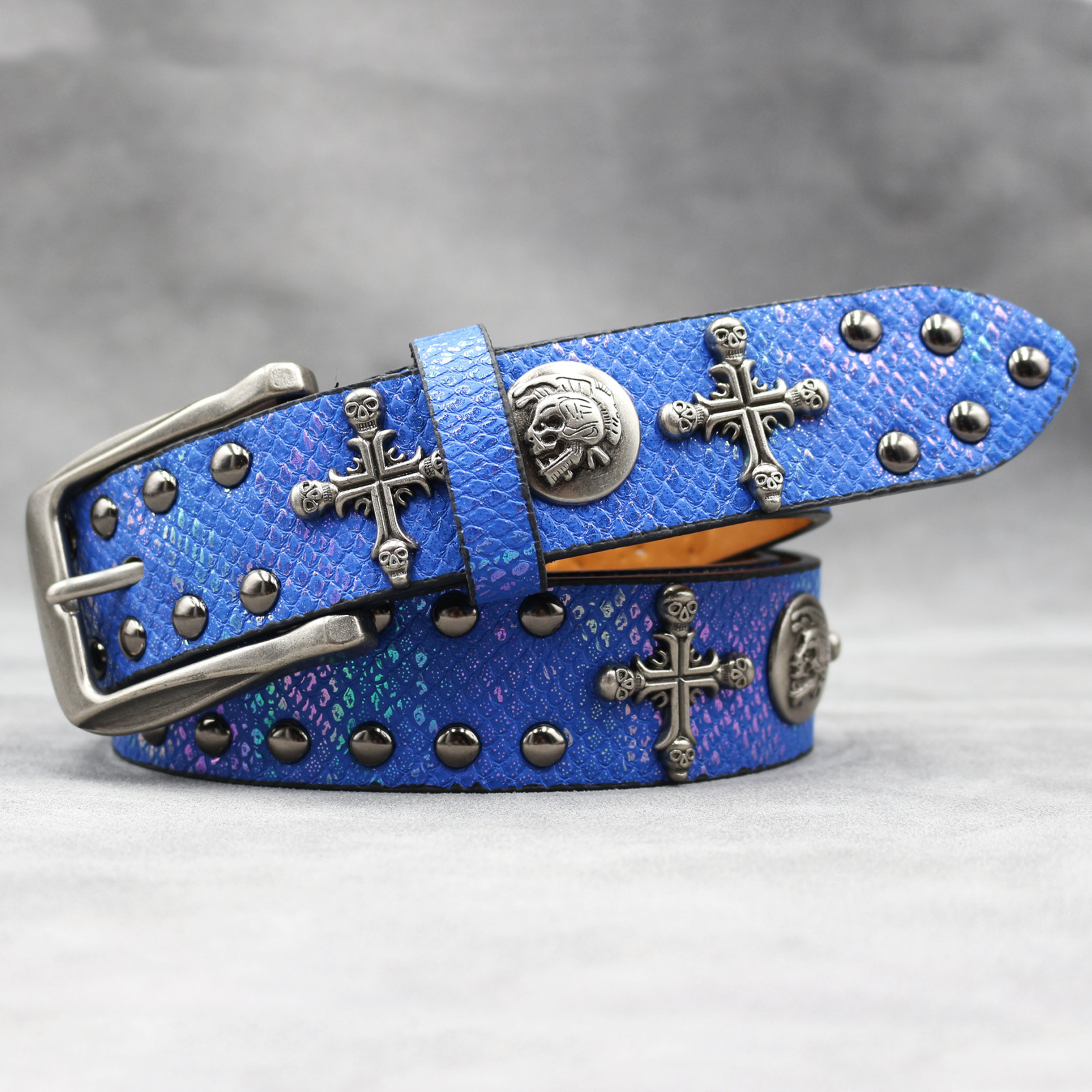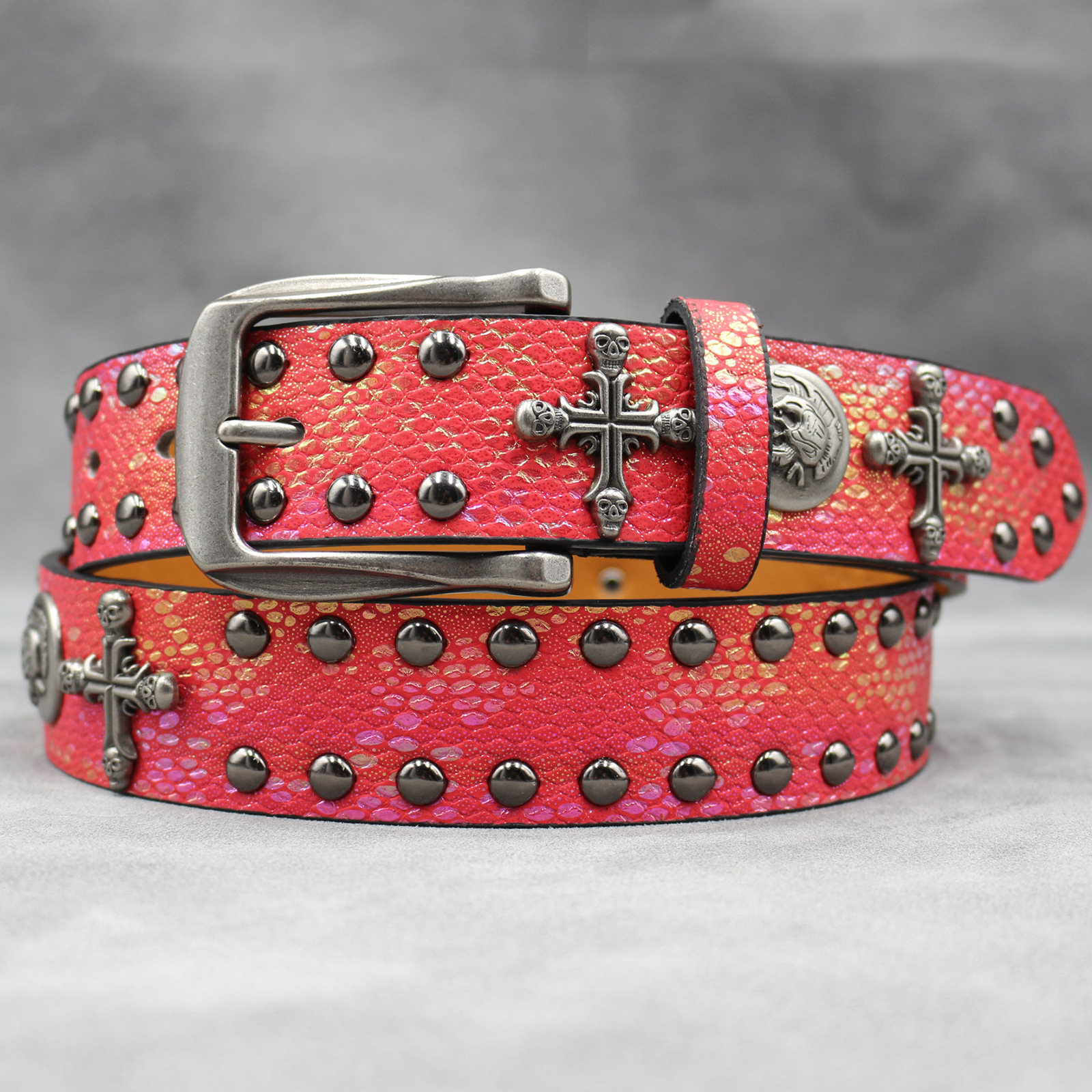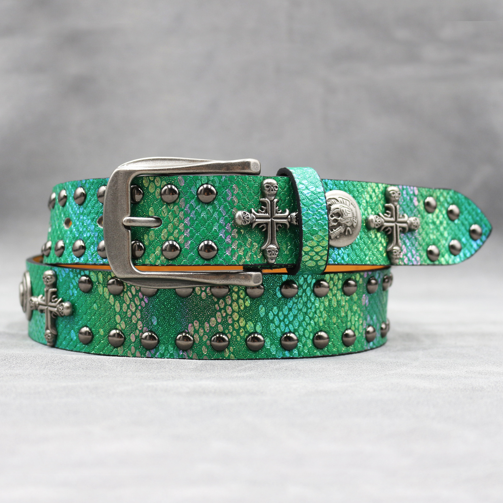 7 색 원래 크로스 해골 리벳 벨트 펑크 남성 벨트 여성 뱀 패턴 올 매치 장식 벨트 도매