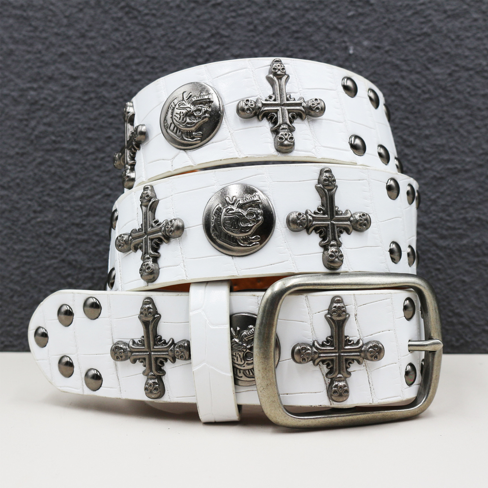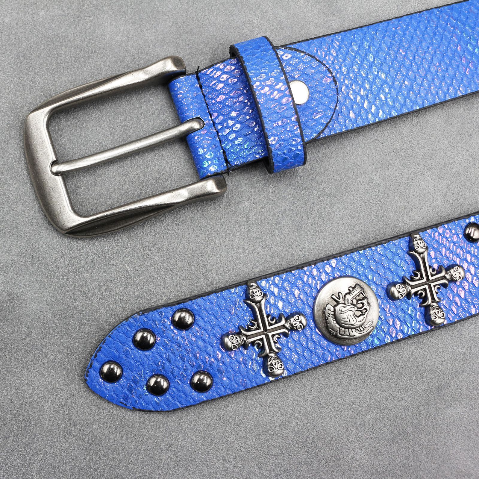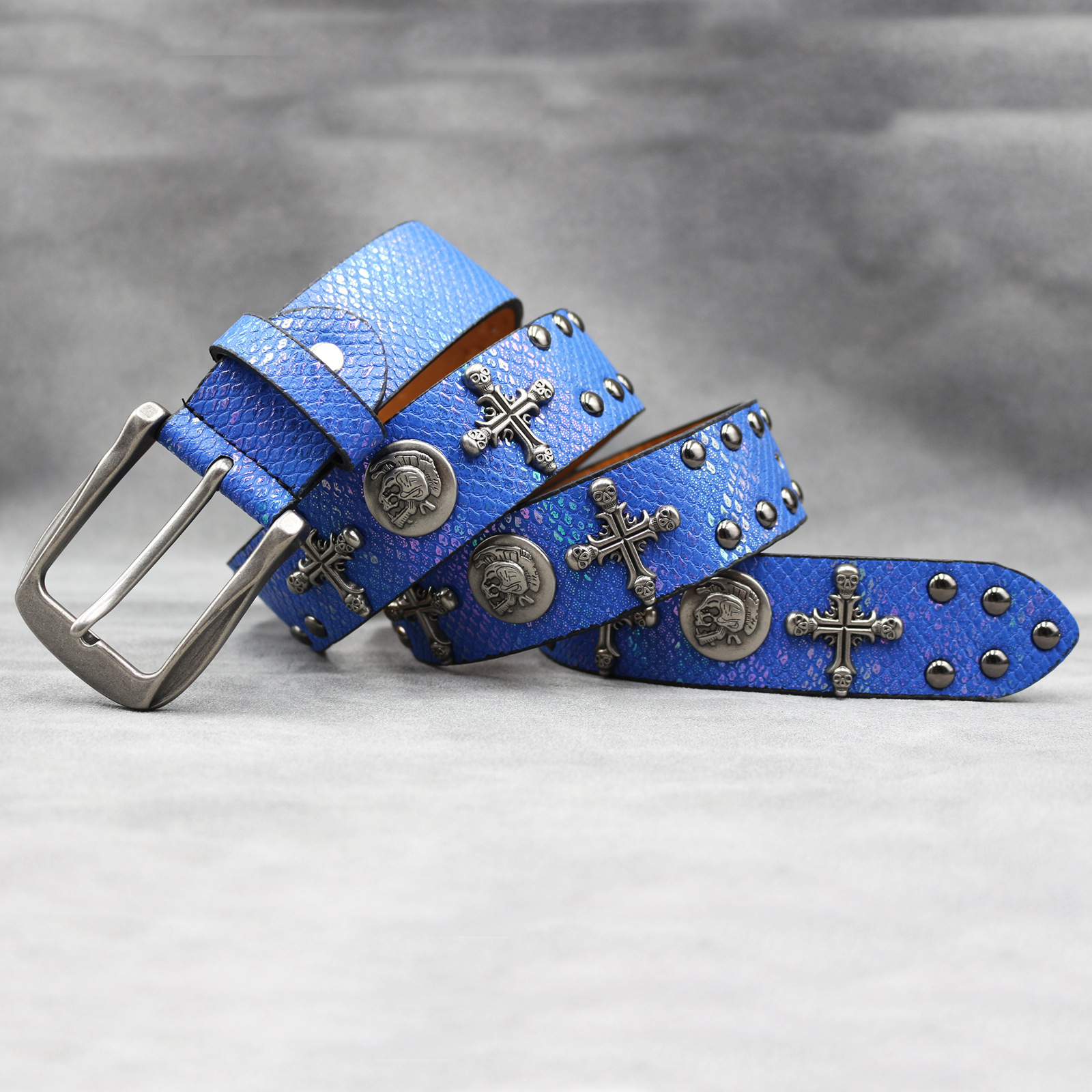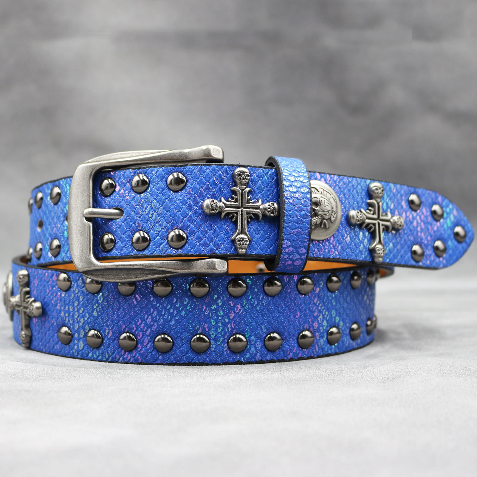 7 색 원래 크로스 해골 리벳 벨트 펑크 남성 벨트 여성 뱀 패턴 올 매치 장식 벨트 도매