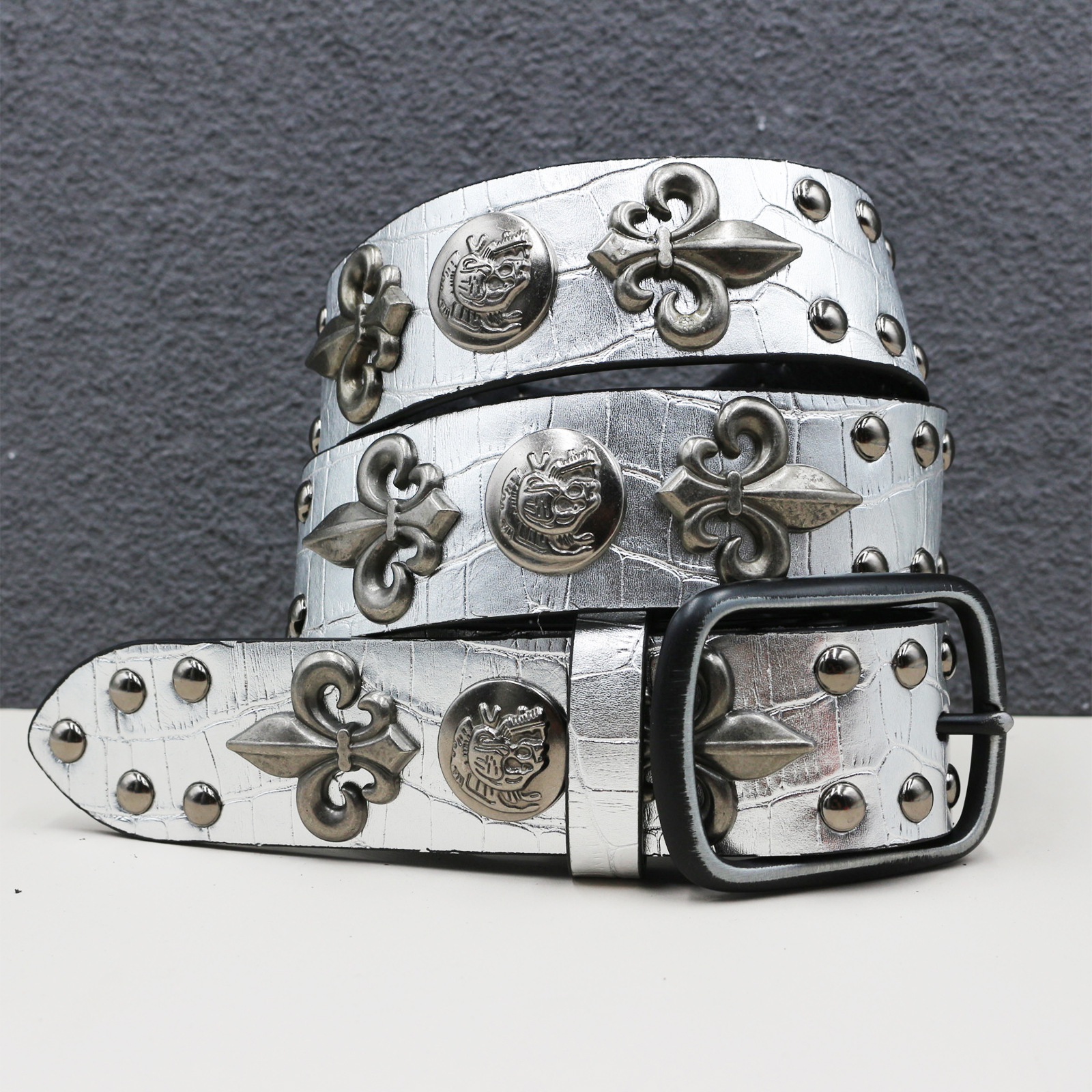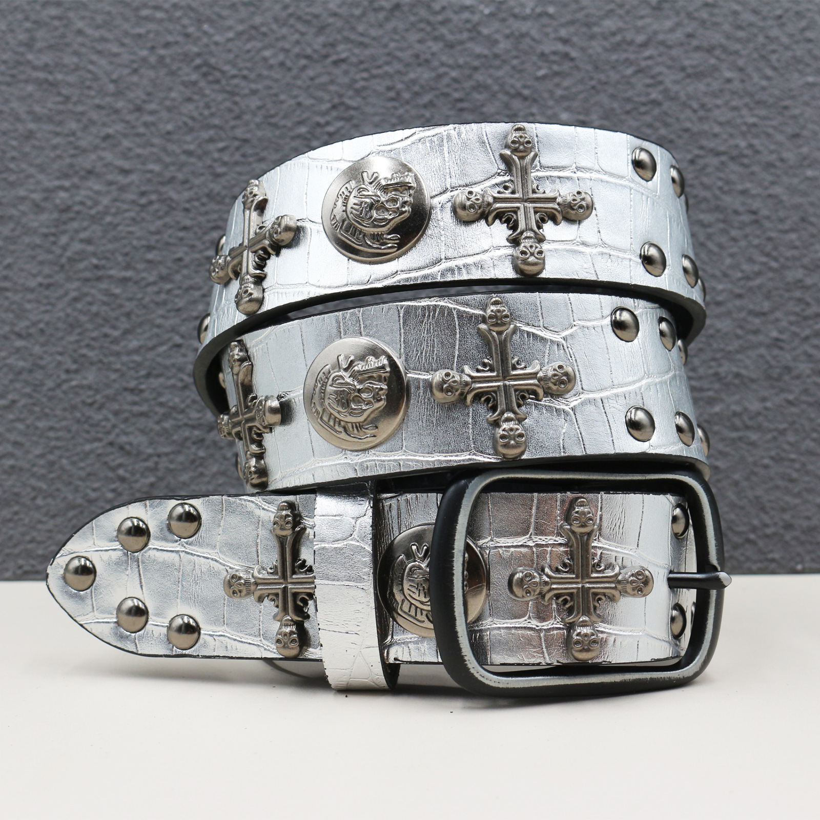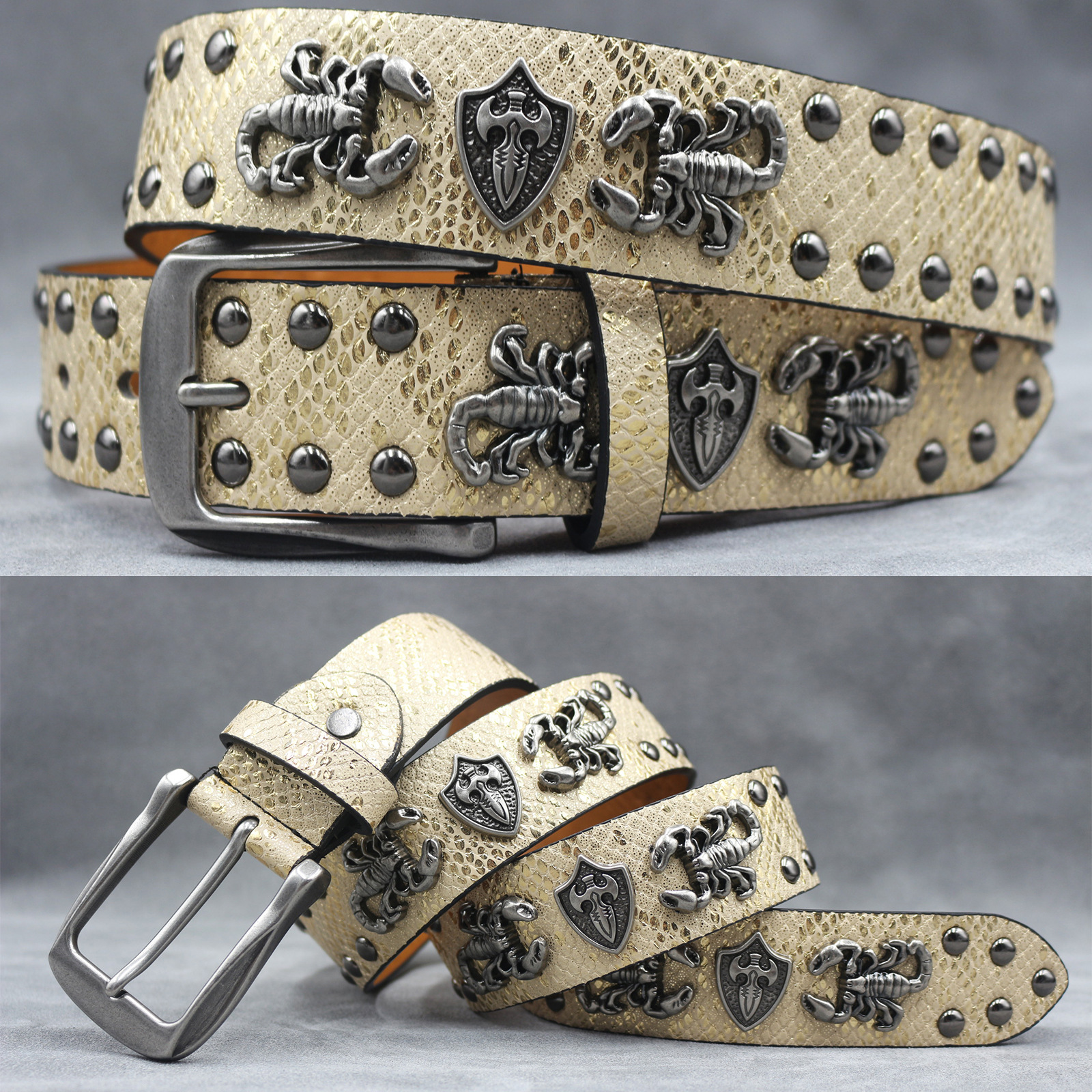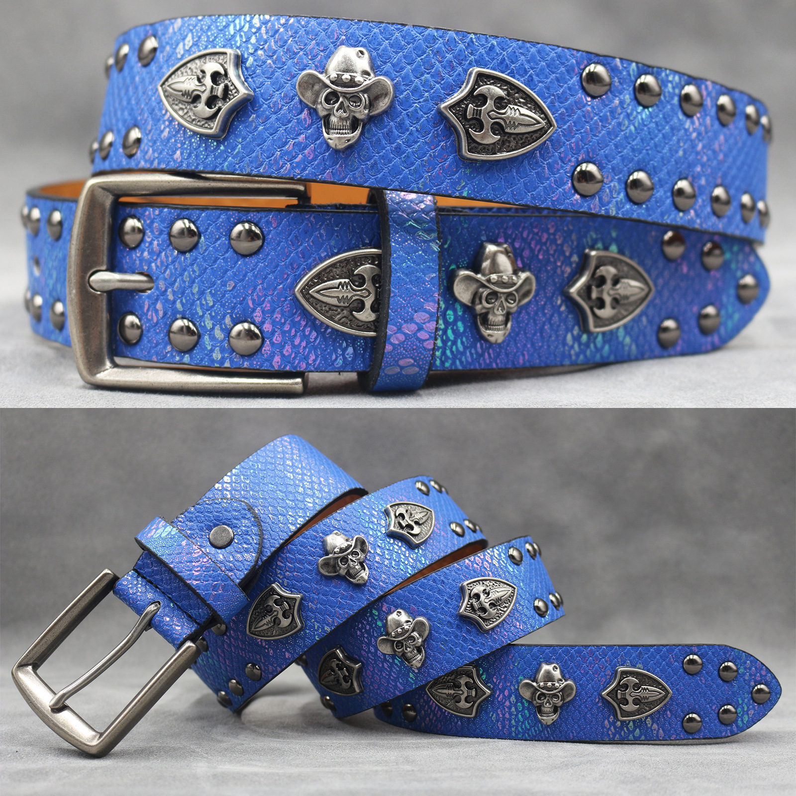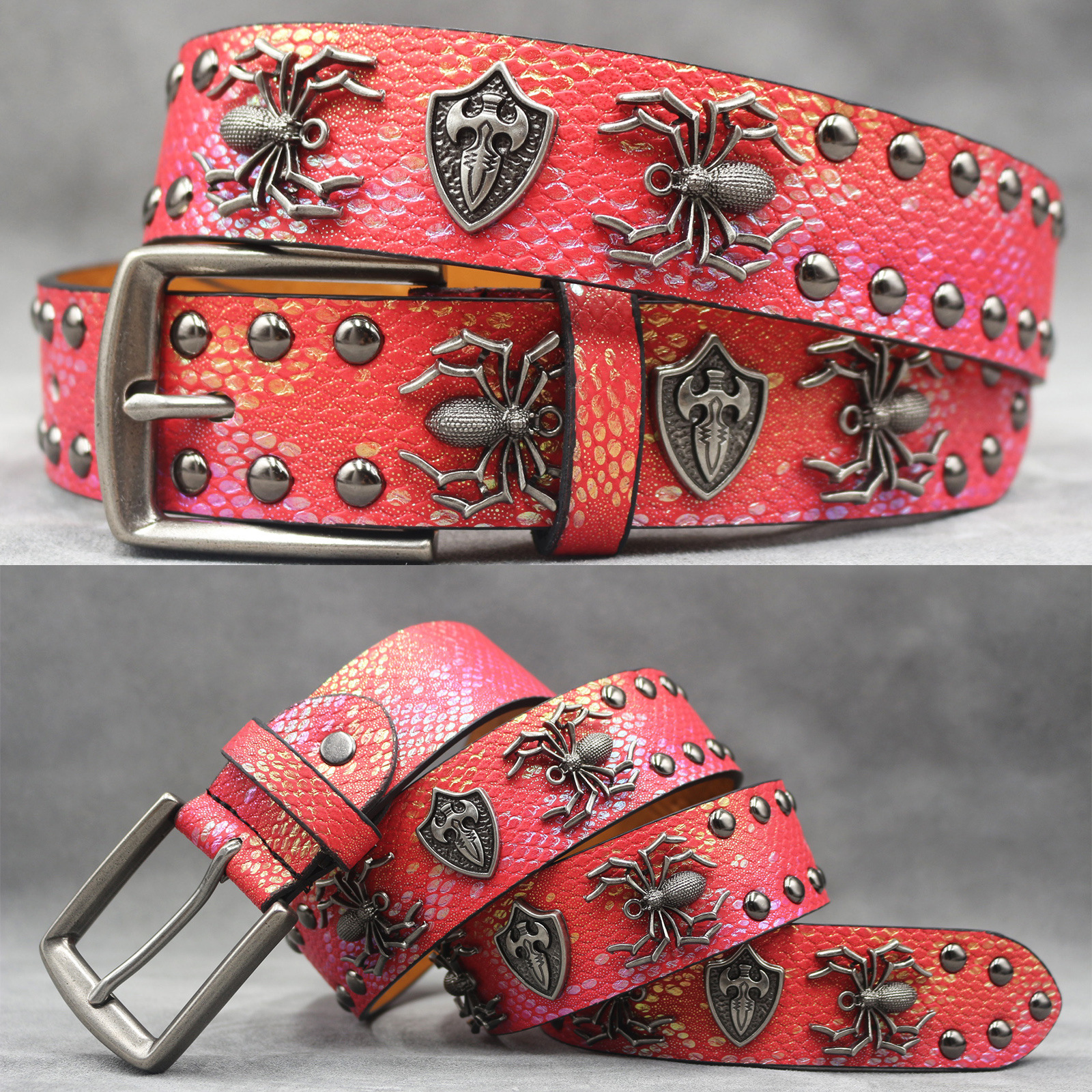 7 색 원래 크로스 해골 리벳 벨트 펑크 남성 벨트 여성 뱀 패턴 올 매치 장식 벨트 도매