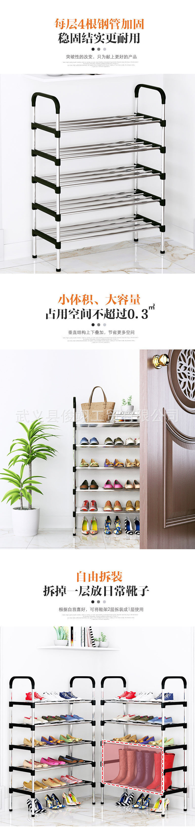 가정용 출입구용 간이 신발장, 다층 공간 절약형 임대 주택용 아연 도금 강관 간이 신발장
