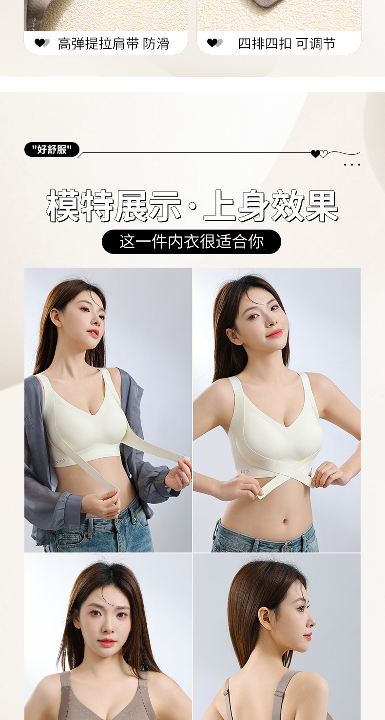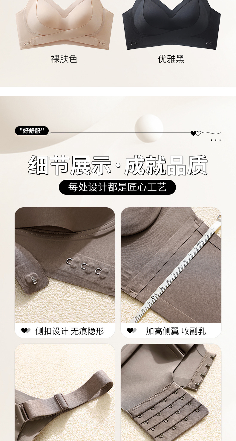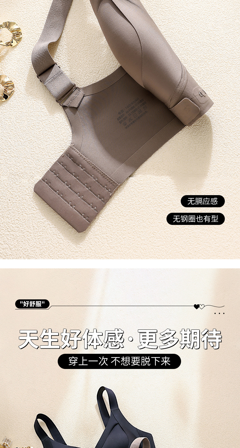 本款为前搭提拉贴胶文胸内衣,有黑/肤/香槟/咖啡四个颜色,码数有M/L/XL/XXL四个码,固定防滑宽肩带,后四排四扣设计,仅单件,无配套内裤。