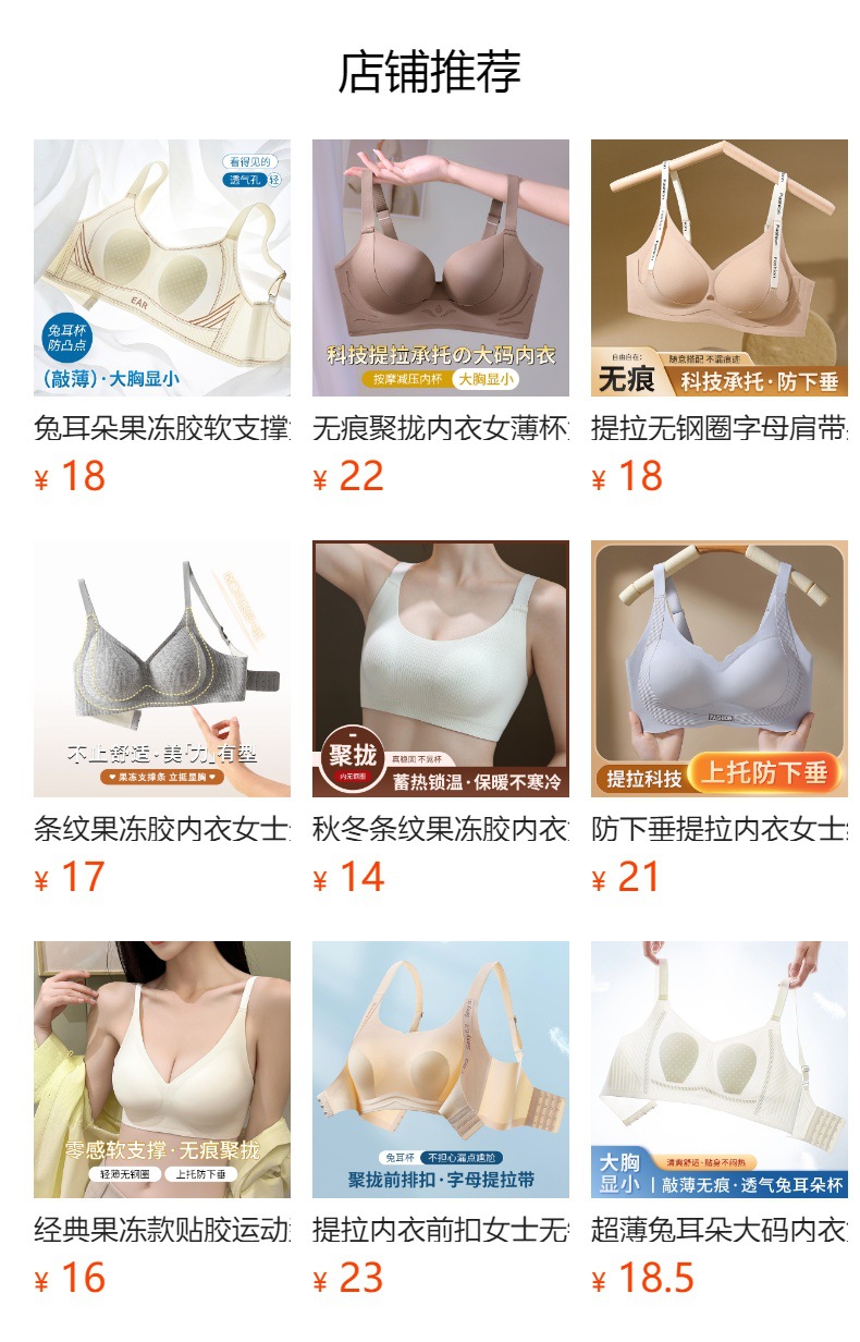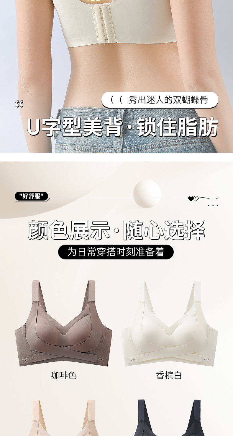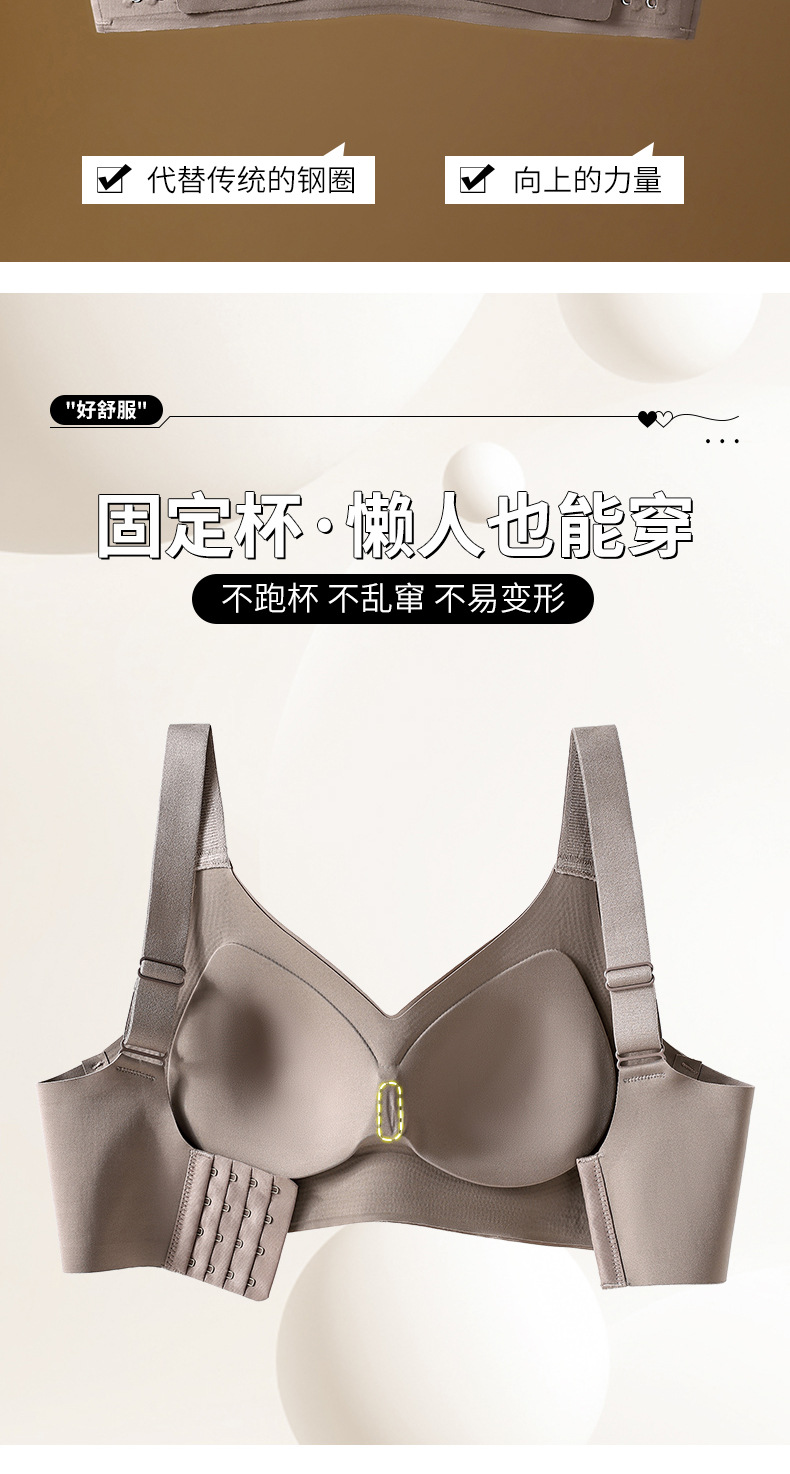 本款为前搭提拉贴胶文胸内衣,有黑/肤/香槟/咖啡四个颜色,码数有M/L/XL/XXL四个码,固定防滑宽肩带,后四排四扣设计,仅单件,无配套内裤。