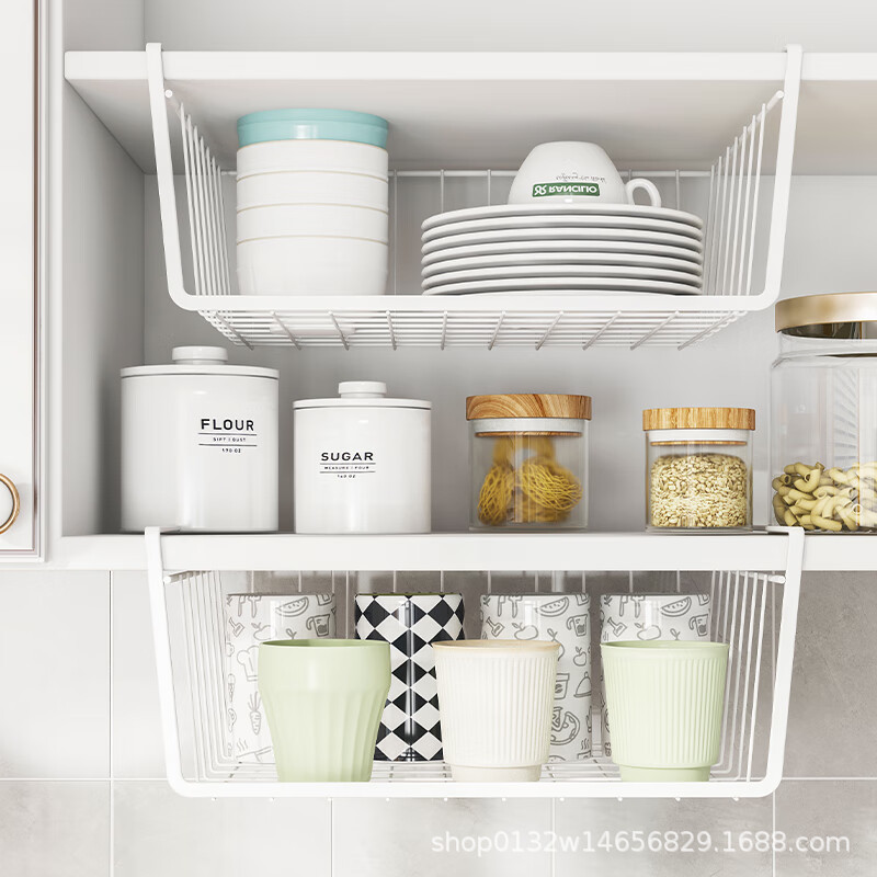 테이블 아래 보관 용 바구니 주방 랙 매달려 캐비닛 기숙사 옷장 보관 랙 교수형 선반 계층화 고정 랙스토어 가기