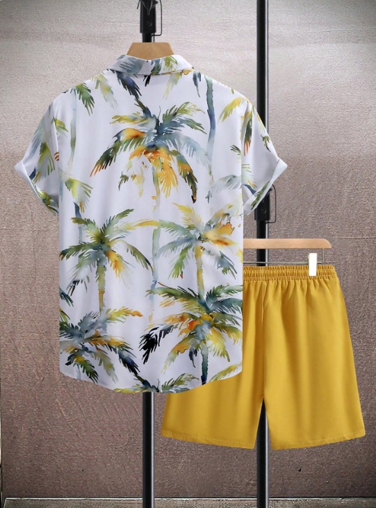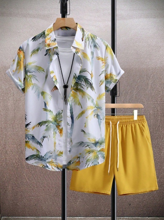 대외 무역 국경 간 캐주얼 휴가용 프린트 반팔 셔츠 남성 비치 셔츠 세트 도매