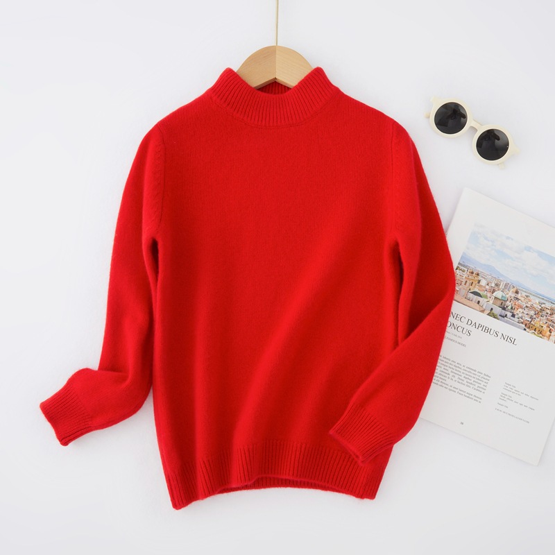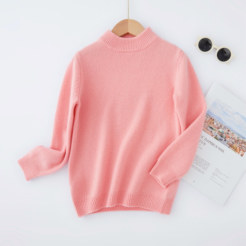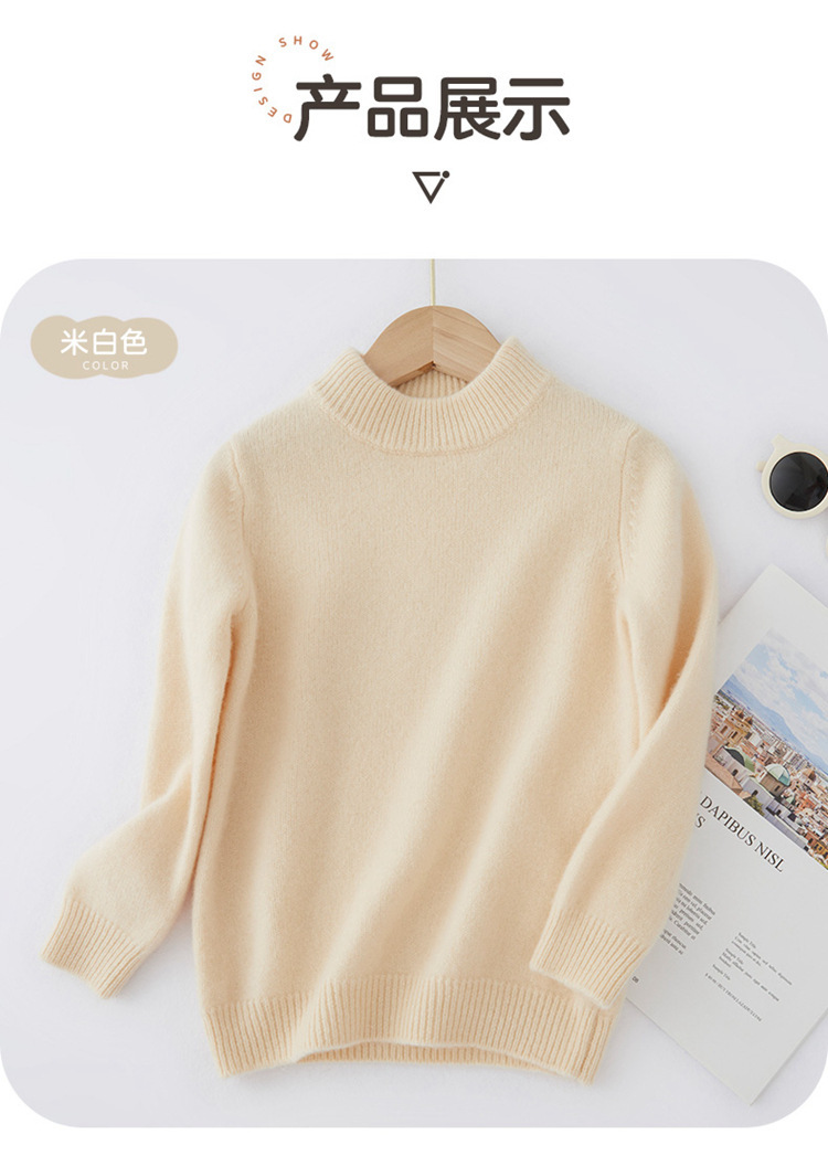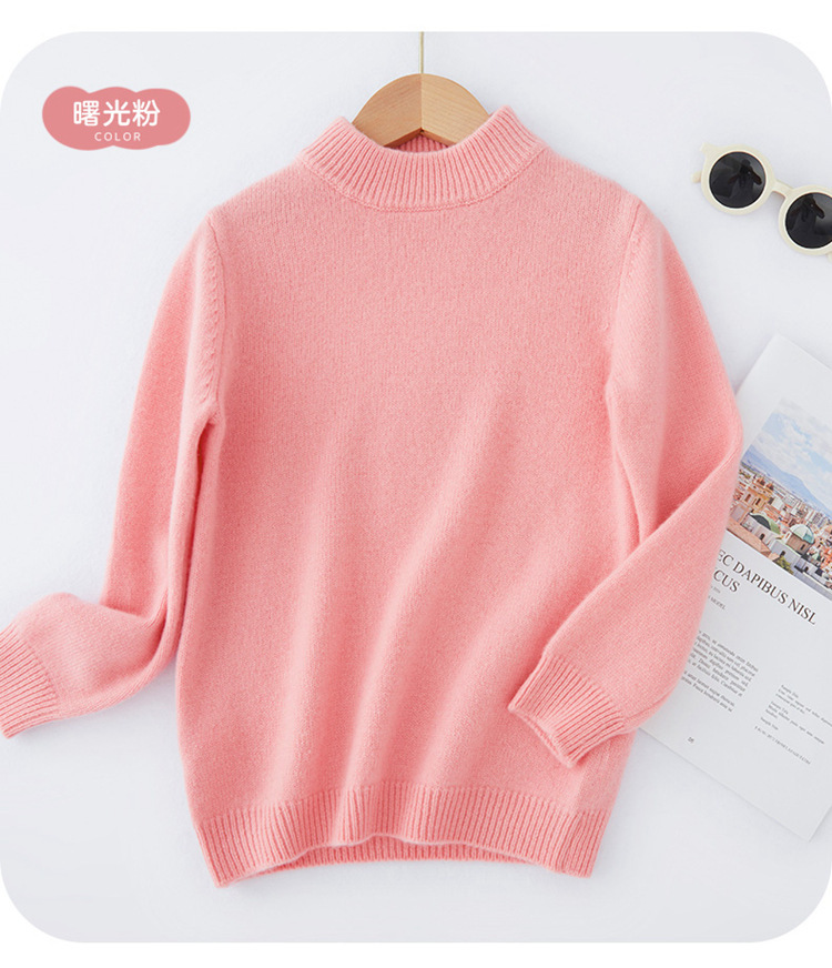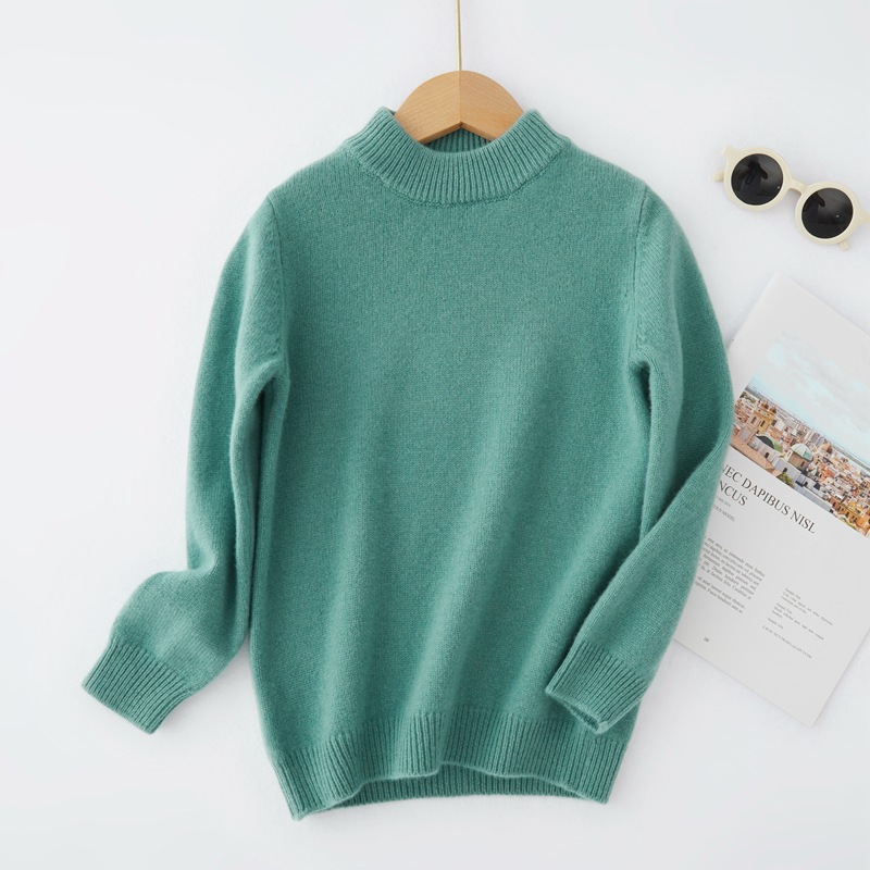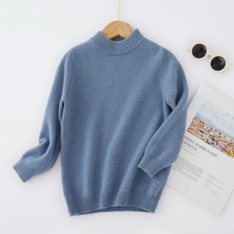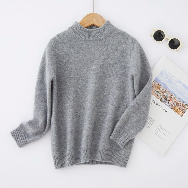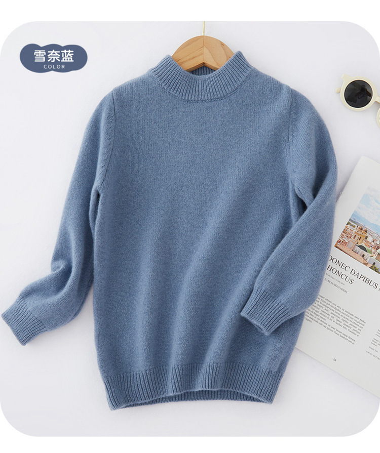 간단한 어린이 순수 양모 니트 스웨터 세미 하이 크루 넥 미드 빅 어린이 두꺼운 베이스 캐시미어 베이비 풀오버 스웨터