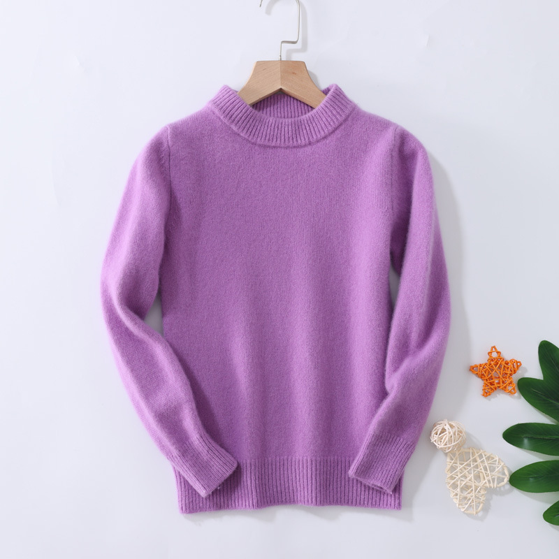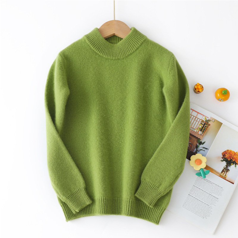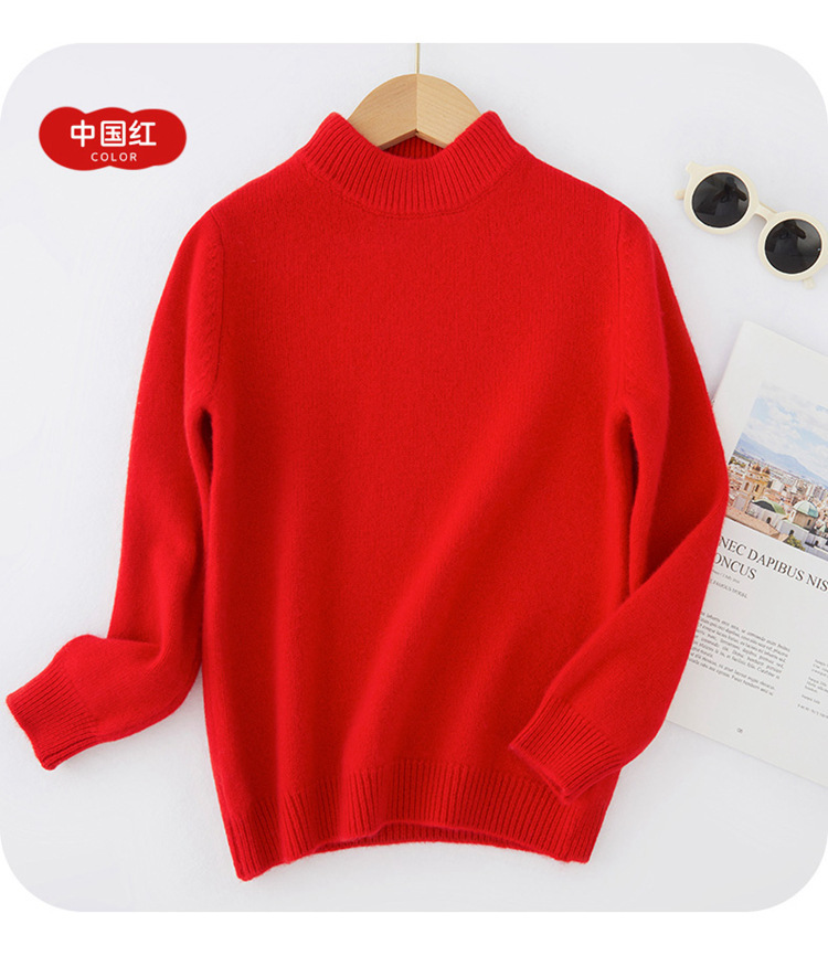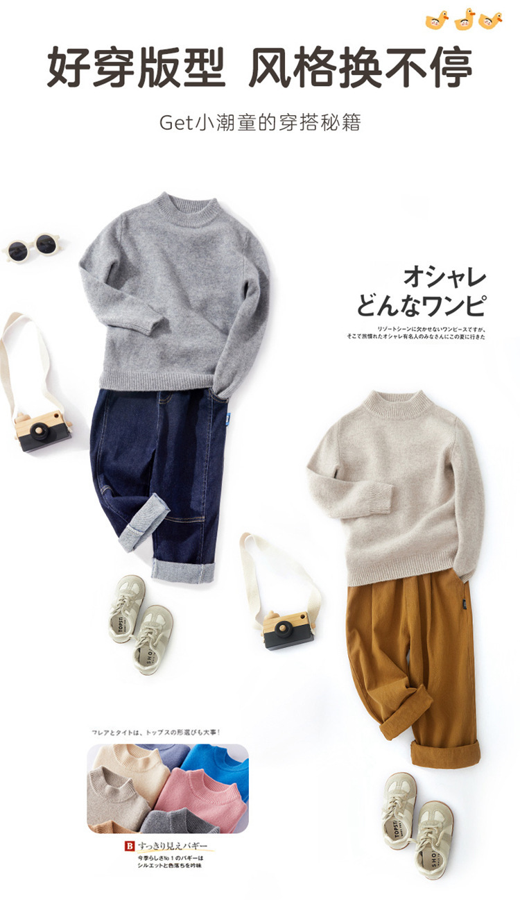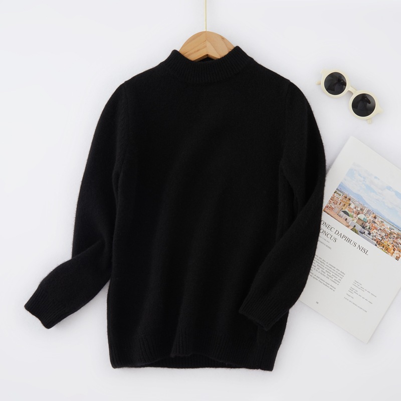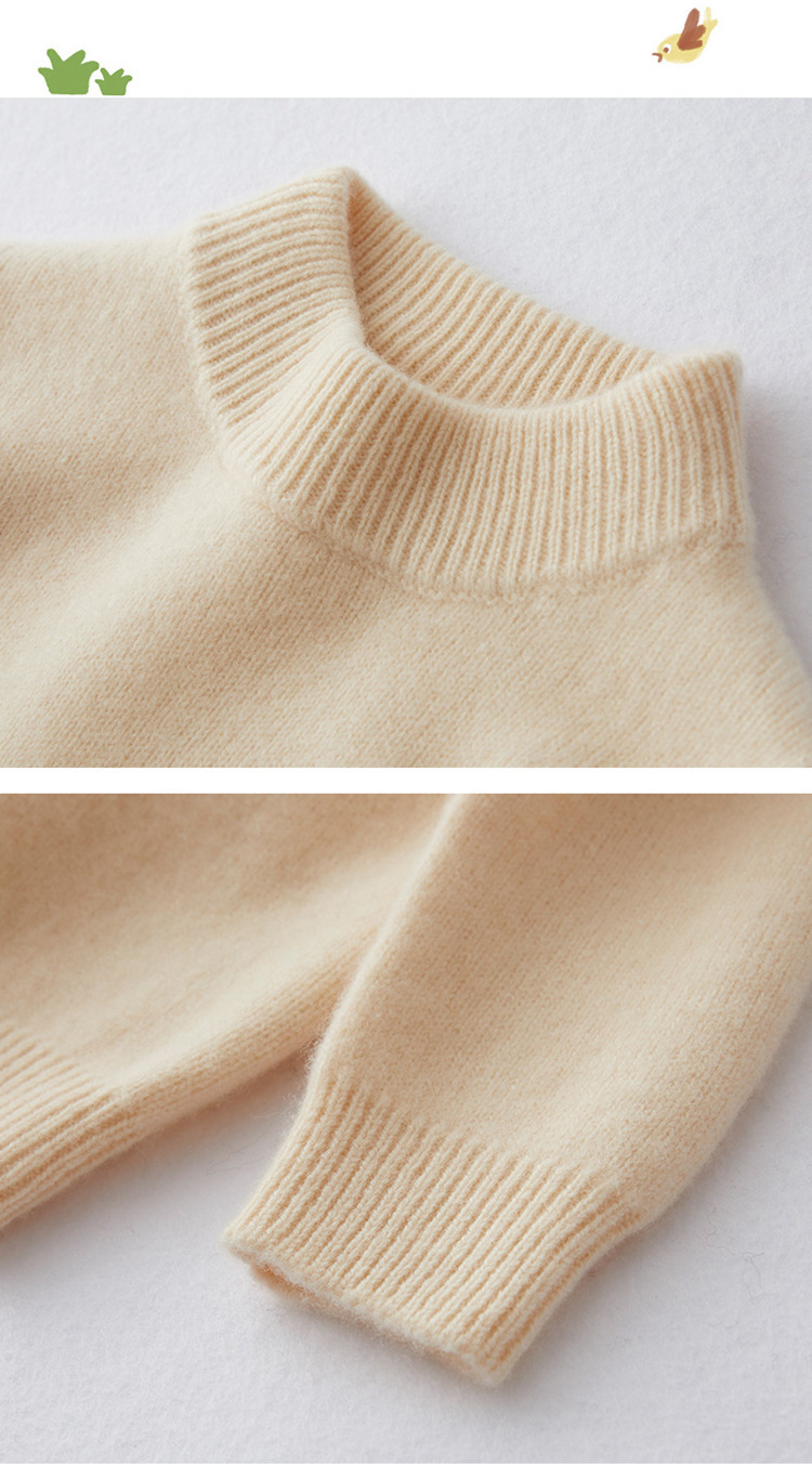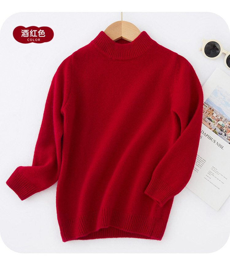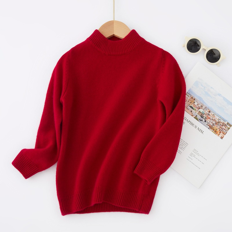 간단한 어린이 순수 양모 니트 스웨터 세미 하이 크루 넥 미드 빅 어린이 두꺼운 베이스 캐시미어 베이비 풀오버 스웨터