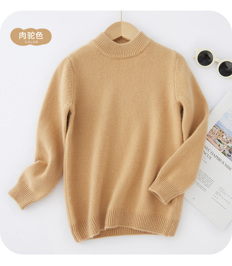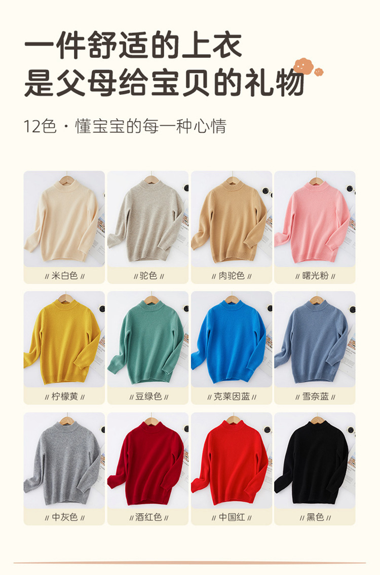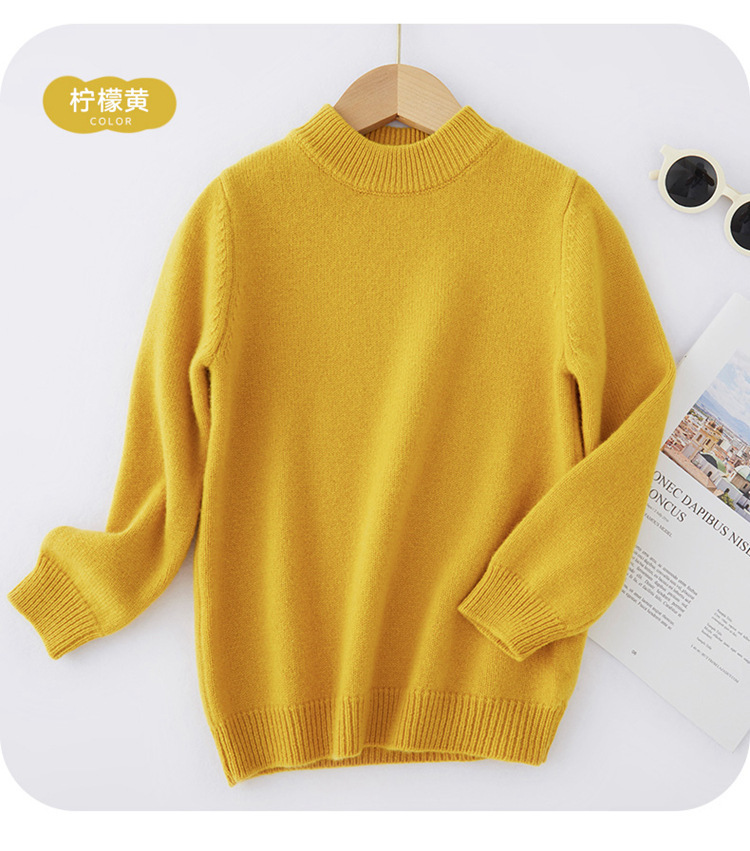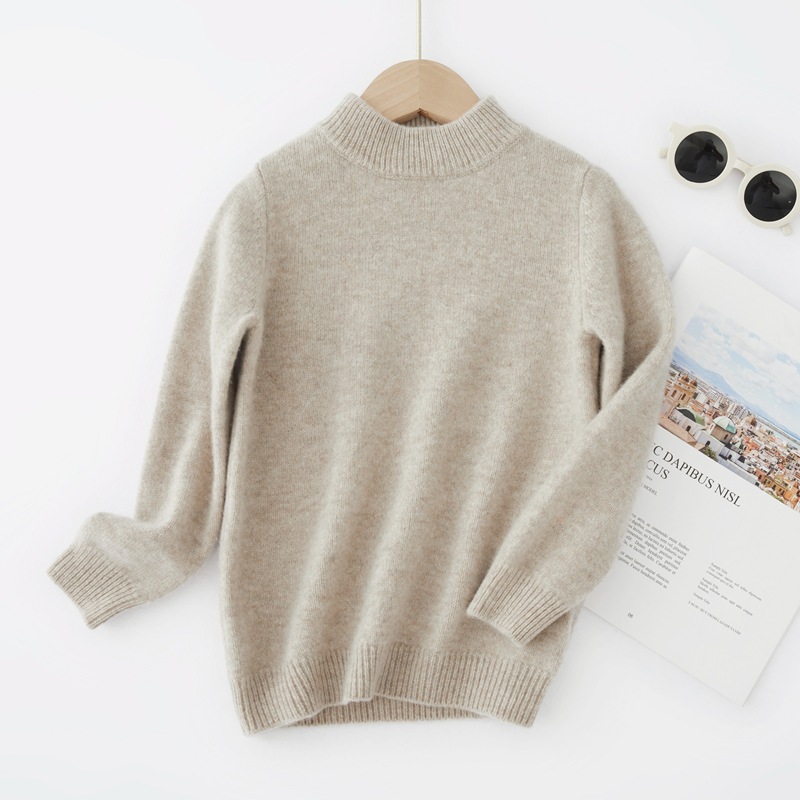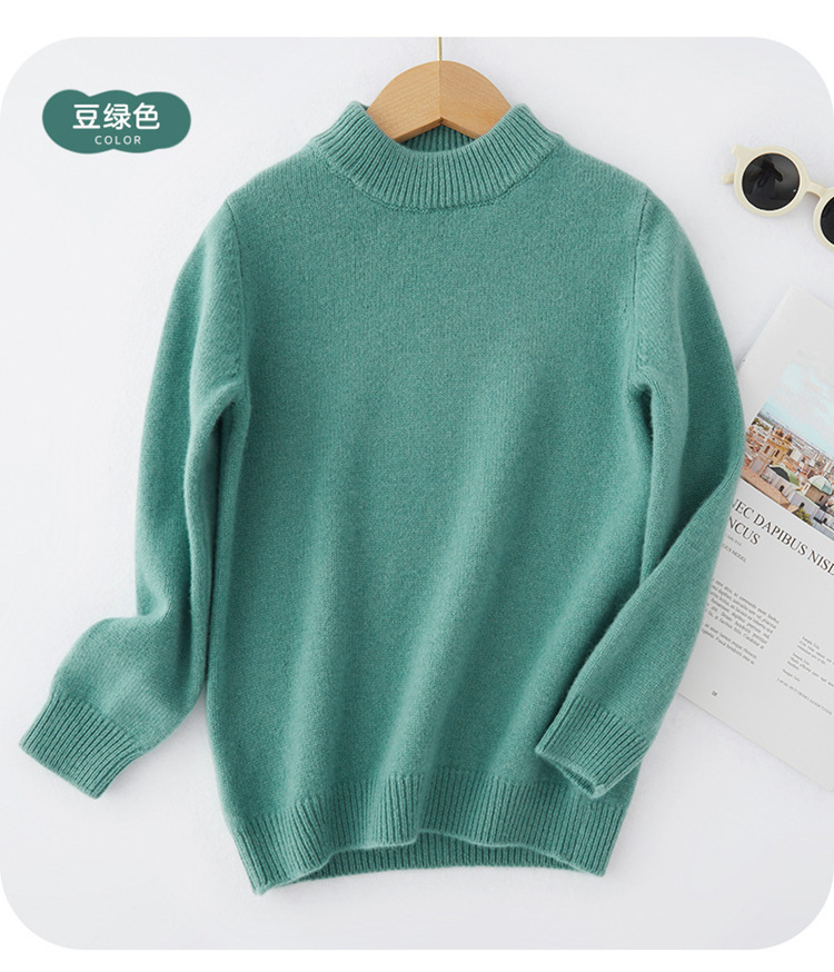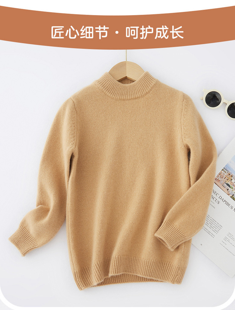 간단한 어린이 순수 양모 니트 스웨터 세미 하이 크루 넥 미드 빅 어린이 두꺼운 베이스 캐시미어 베이비 풀오버 스웨터스토어 가기