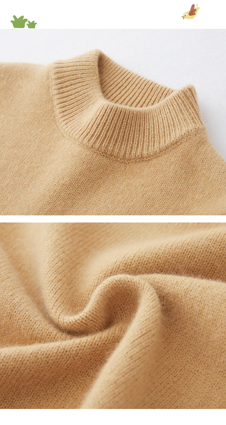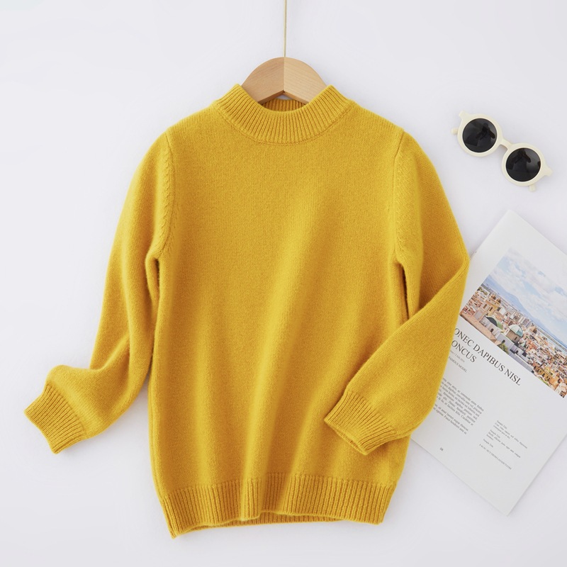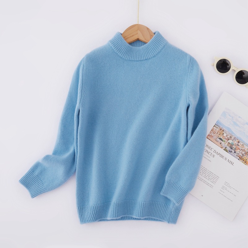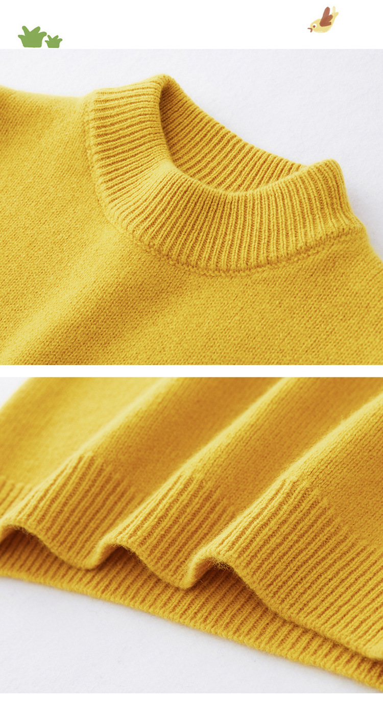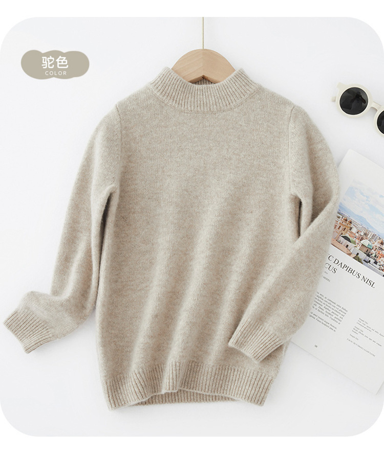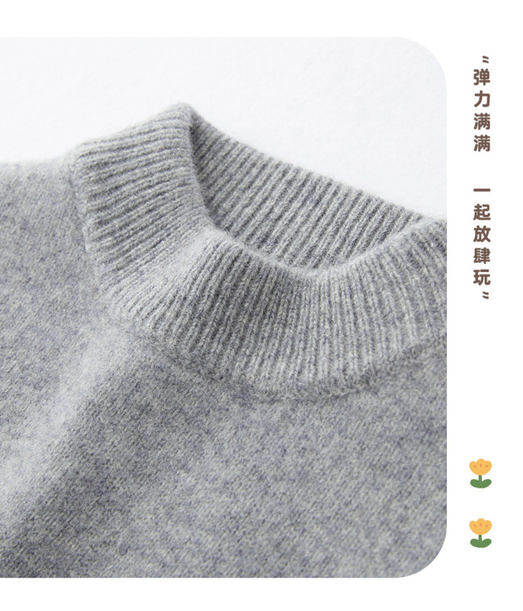 간단한 어린이 순수 양모 니트 스웨터 세미 하이 크루 넥 미드 빅 어린이 두꺼운 베이스 캐시미어 베이비 풀오버 스웨터스토어 가기