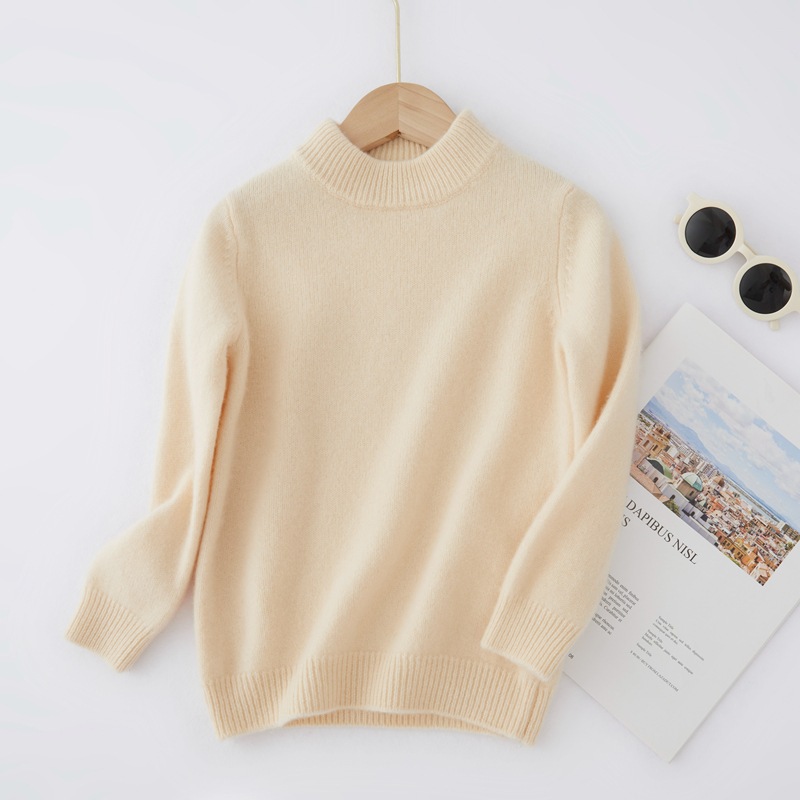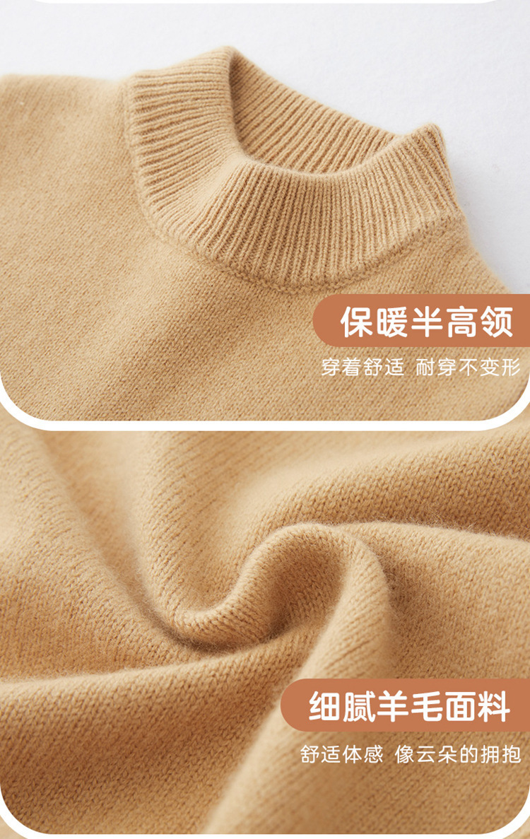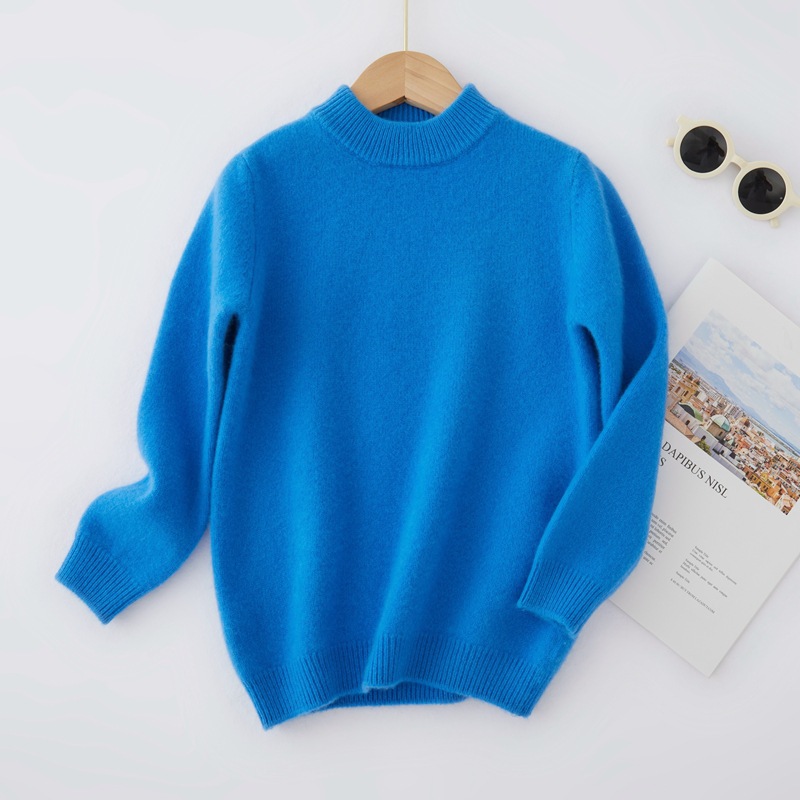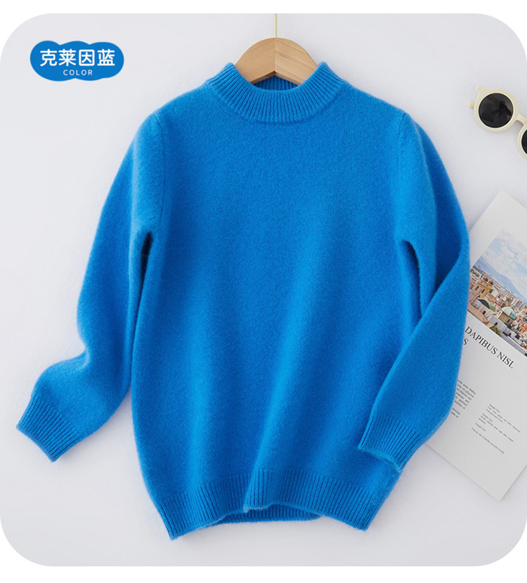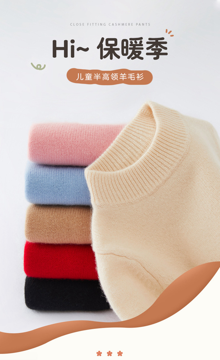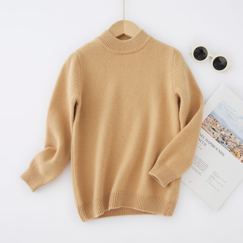 간단한 어린이 순수 양모 니트 스웨터 세미 하이 크루 넥 미드 빅 어린이 두꺼운 베이스 캐시미어 베이비 풀오버 스웨터스토어 가기