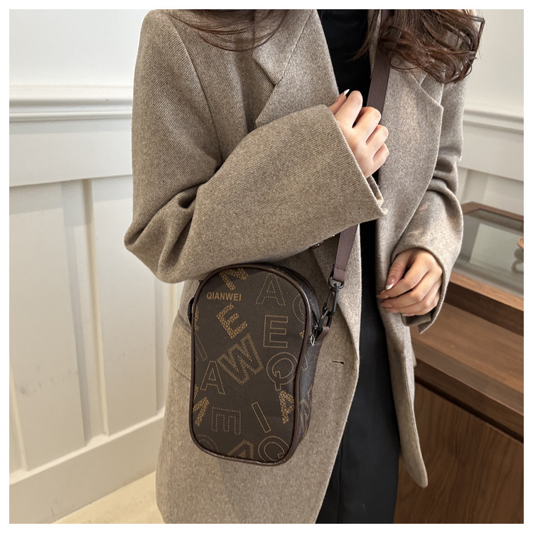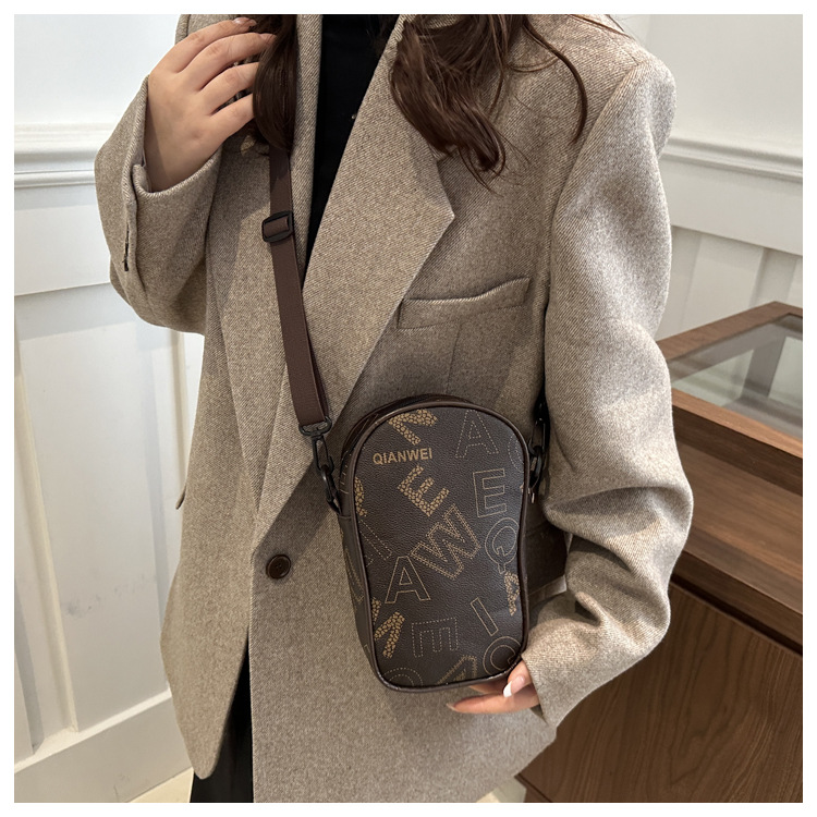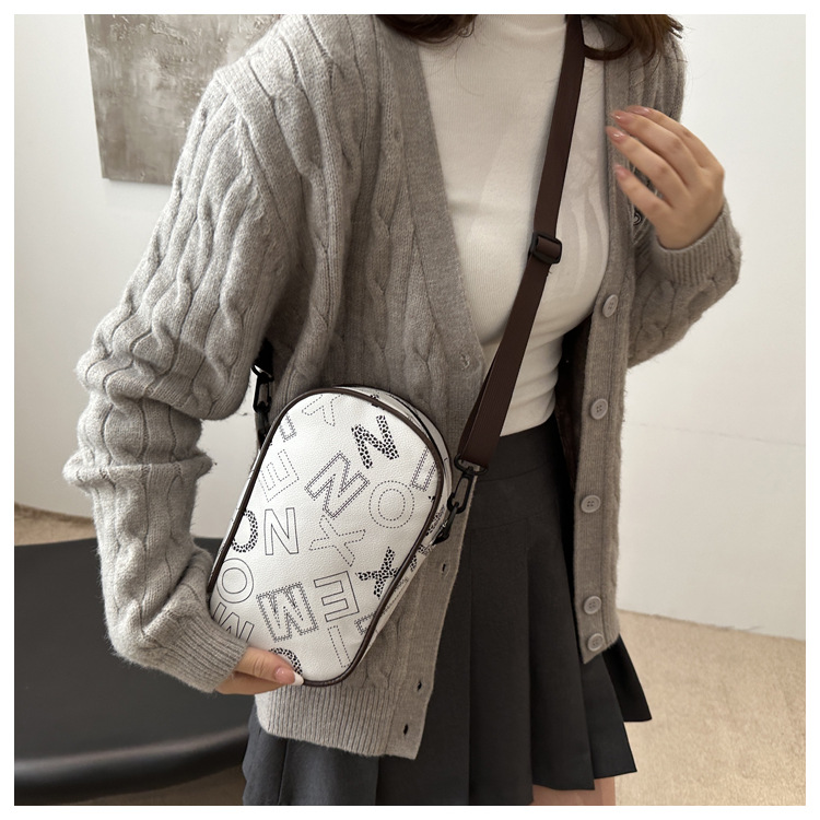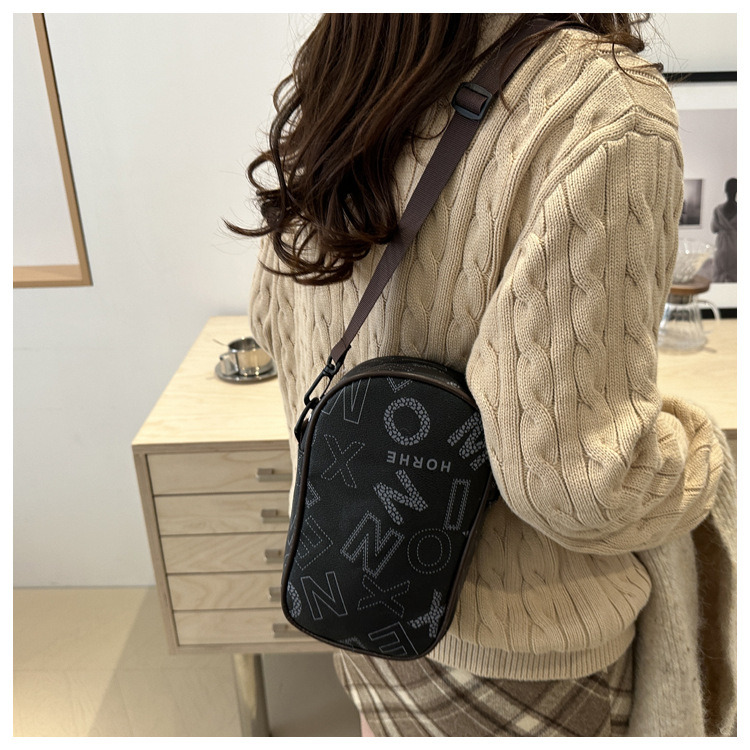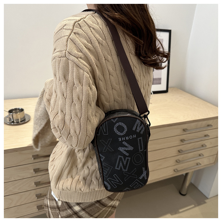2025 이른 봄 새로운 패션 복고풍 편지 인쇄 전화 가방 대용량 휴대 전화 가방 질감 서양식 크로스 바디 가방스토어 가기