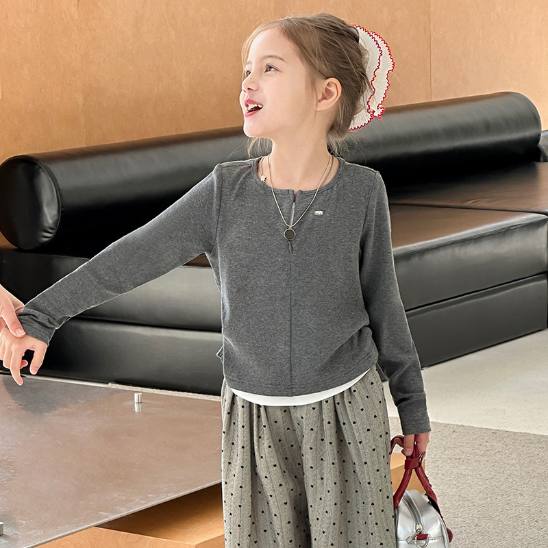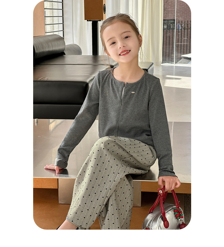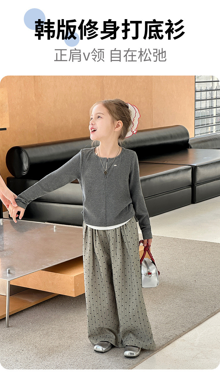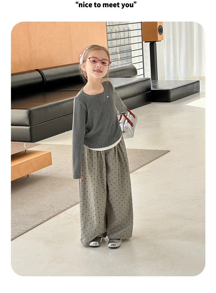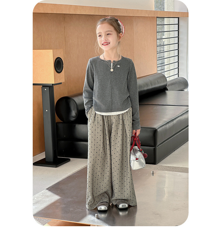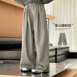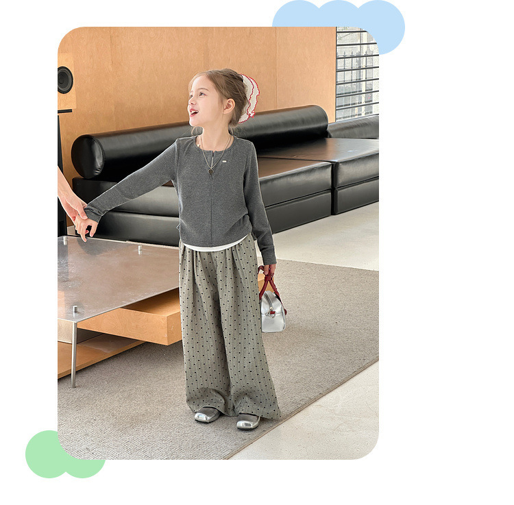 图图小象女童休闲裤2025春装新款儿童阔腿裤亲子装爱心波点直筒裤