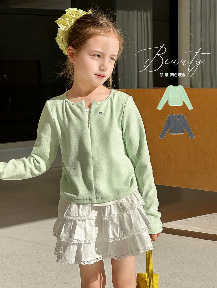 图图小象女童外套2025春装新款儿童休闲拉链衫洋气亲子装长袖上衣