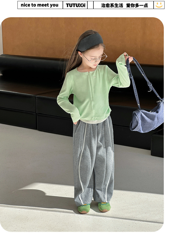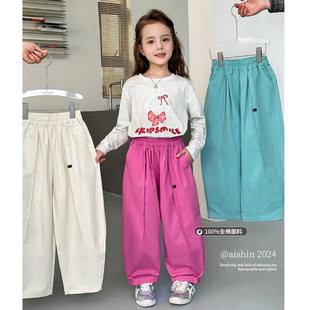 图图小象女童阔腿裤2025春装新款儿童休闲裤洋气裤子亲子装运动裤