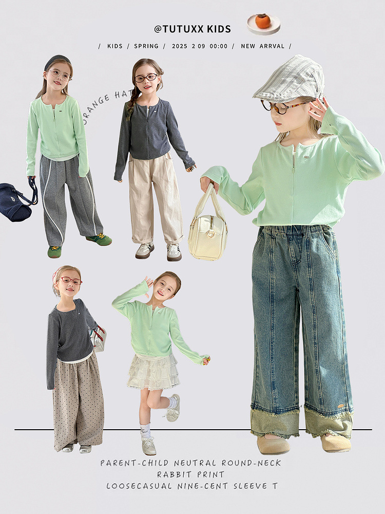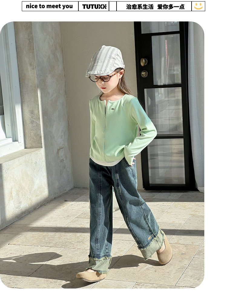 图图小象女童牛仔裤2025春装新款童装长裤儿童休闲裤亲子款直筒裤