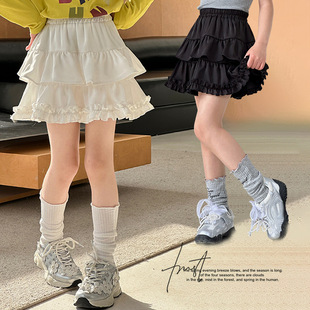 图图小象女童芭蕾风缎面小短裙2025春装新款裙子儿童洋气百褶裙