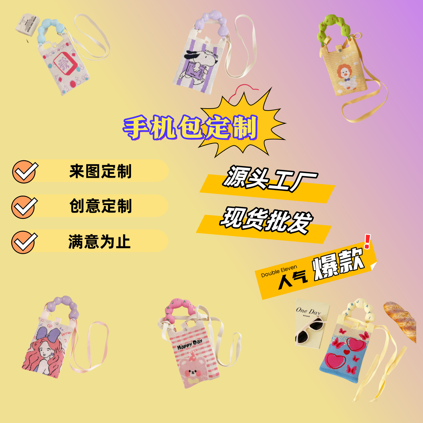 새로운 귀여운 만화 틈새 디자인 미니 모든 경기 작은 휴대용 니트 휴대 전화 가방 통근 크로스 바디 작은 광장 가방