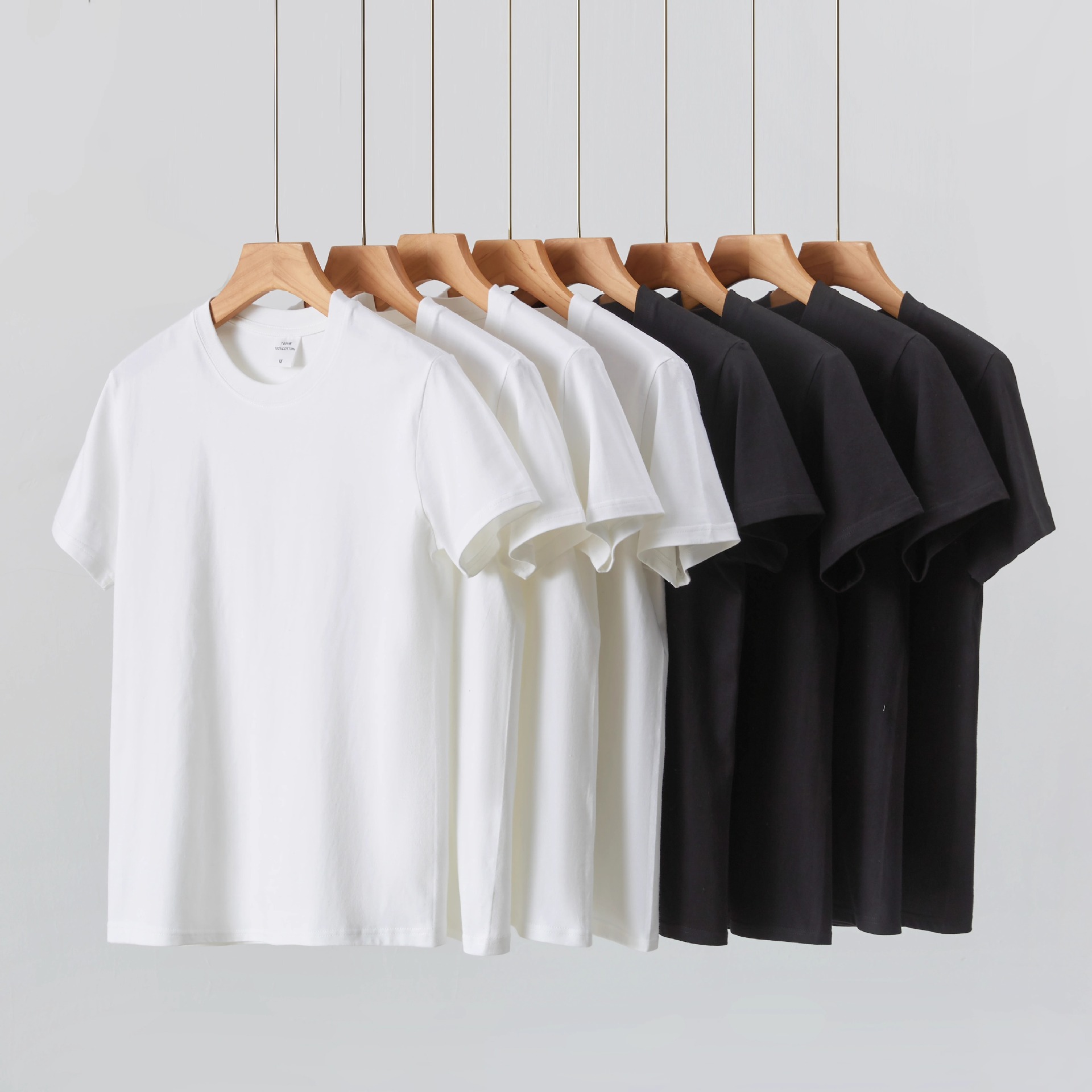 250g 무거운면 단색 반팔 티셔츠 남성과 여성의 바닥 셔츠 흰색 바디, 검은 셔츠 남성 반소매 티셔츠스토어 가기