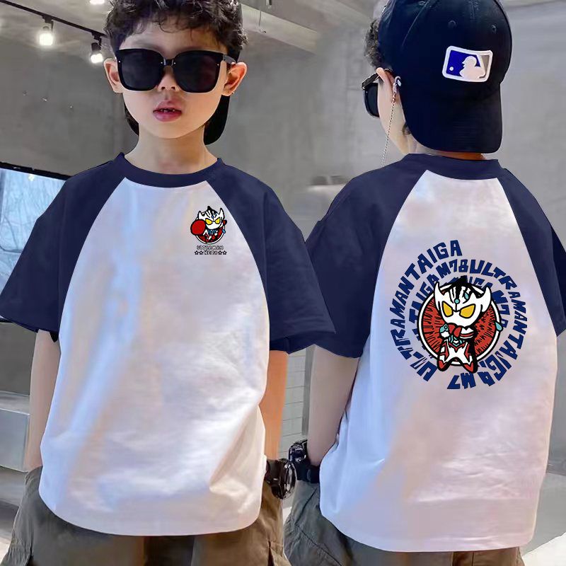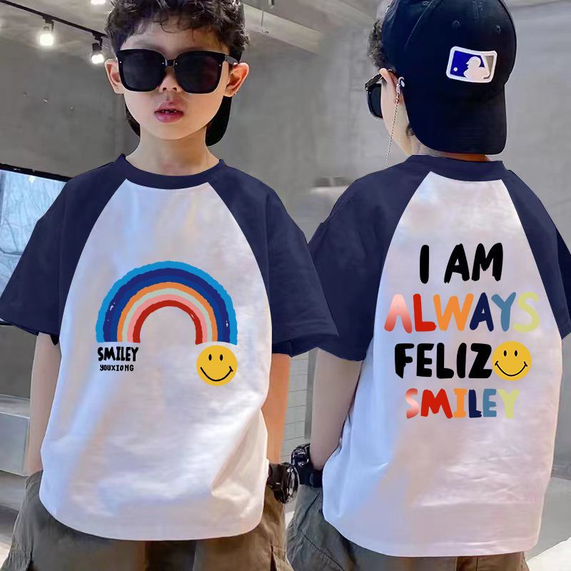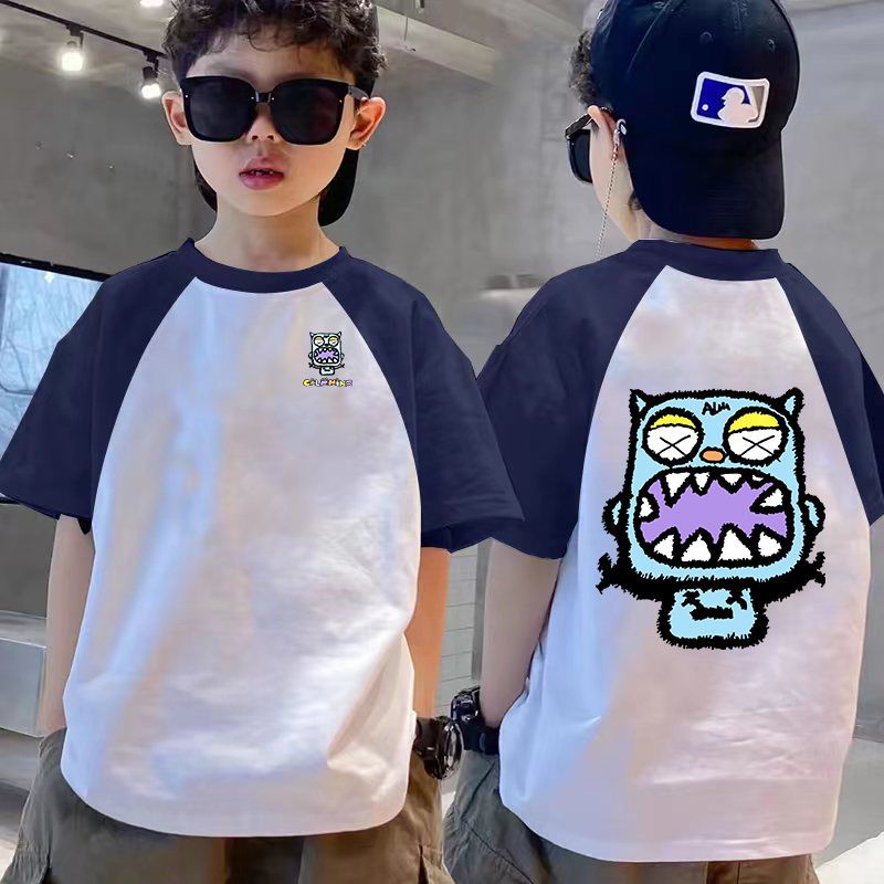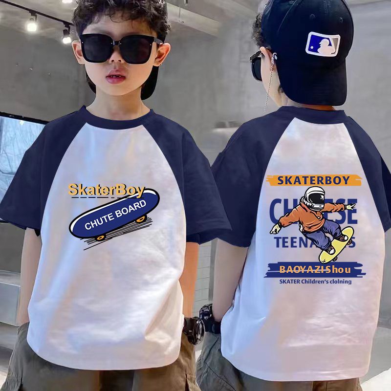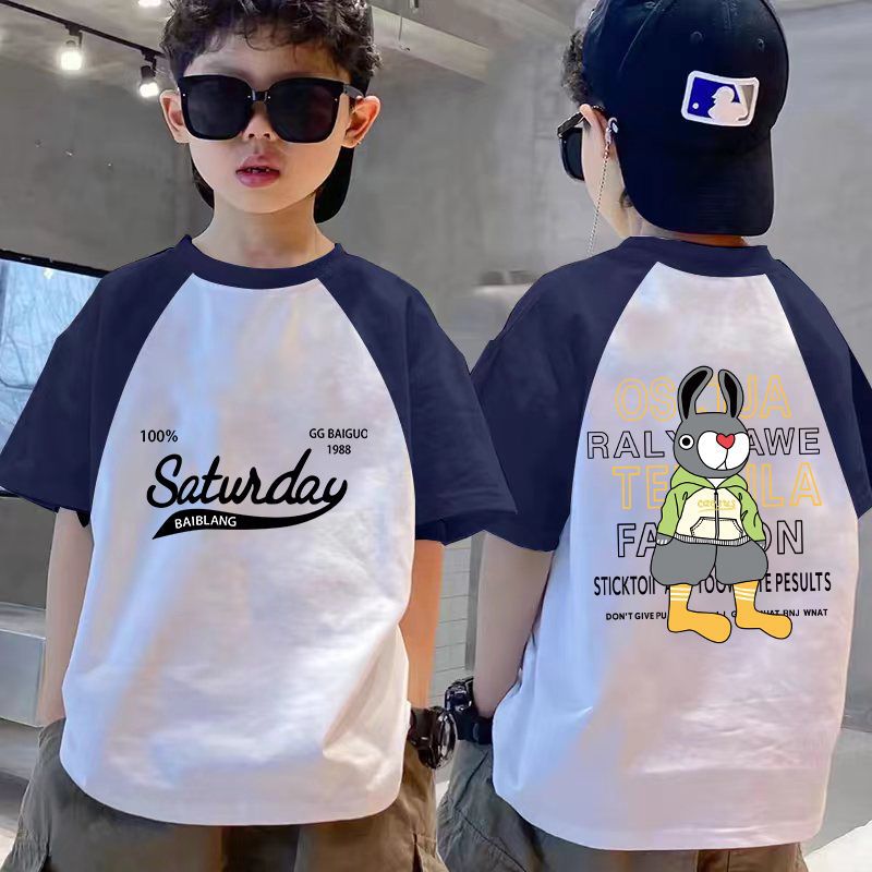 남아용 순면 2025년 여름 신상 어린이 배색 패션 다용도 반팔 티셔츠 트렌디한 중대형 어린이 상의