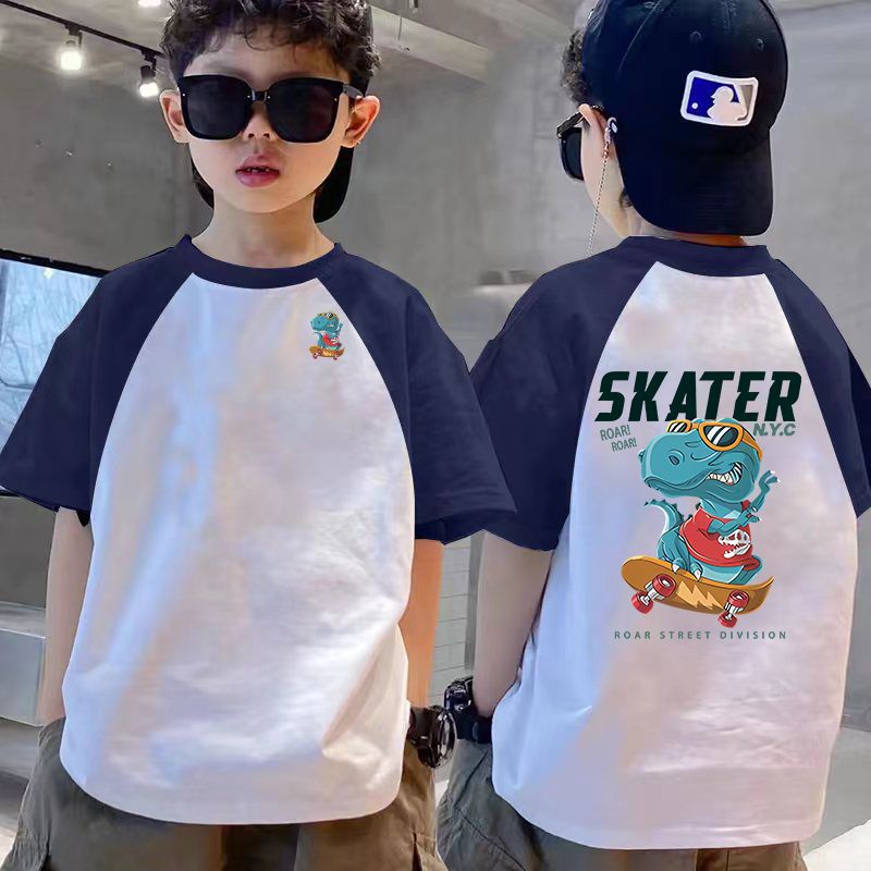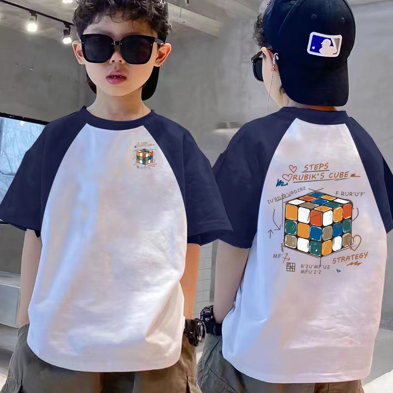 남아용 순면 2025년 여름 신상 어린이 배색 패션 다용도 반팔 티셔츠 트렌디한 중대형 어린이 상의스토어 가기