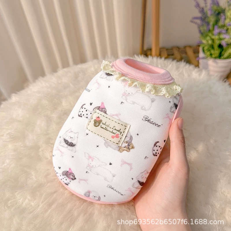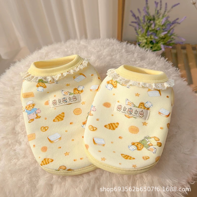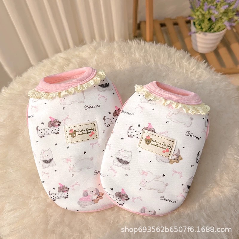 공주 스타일 개 옷 가을과 겨울 작은 개 새로운 기모 애완 동물 고양이 조끼 테디 빅시스