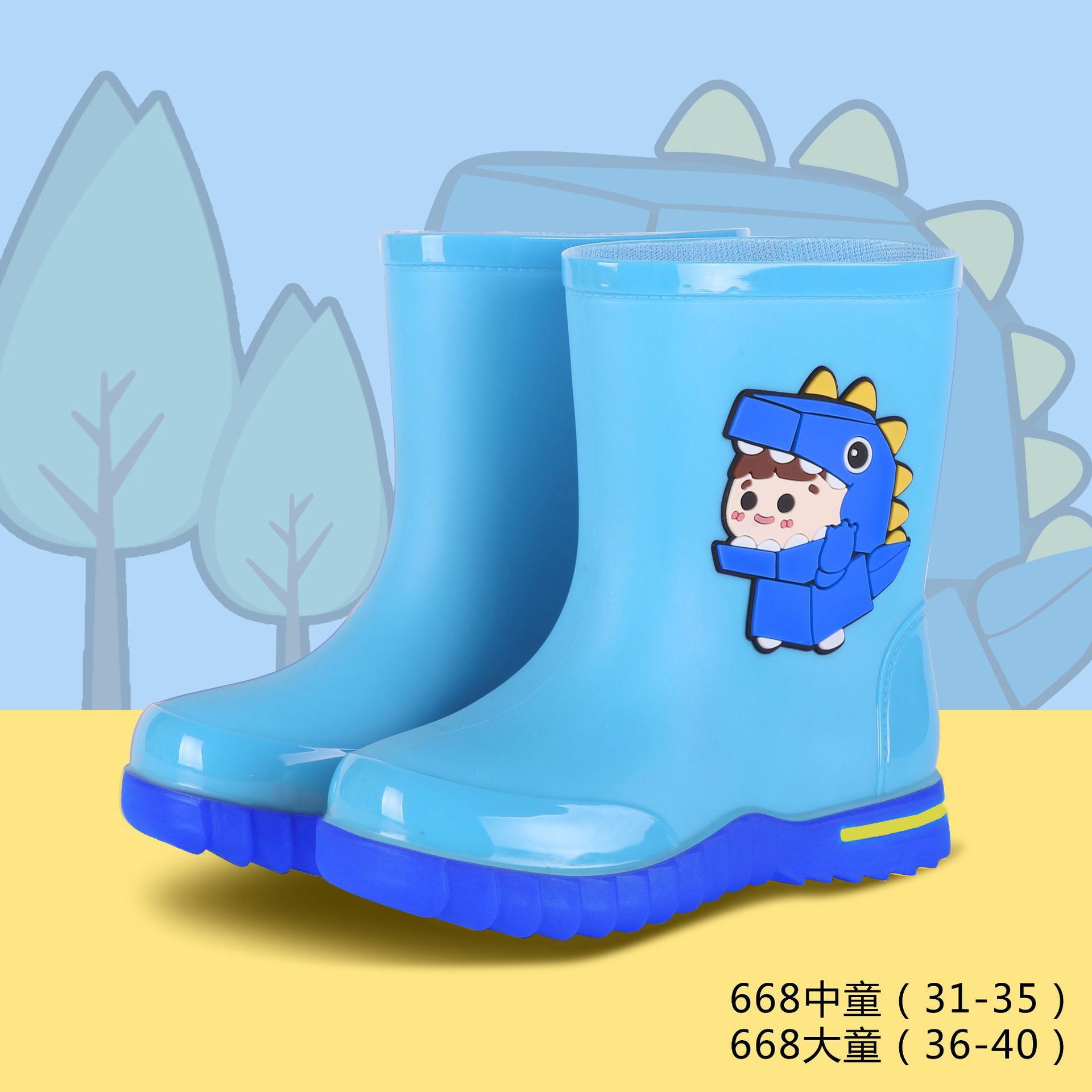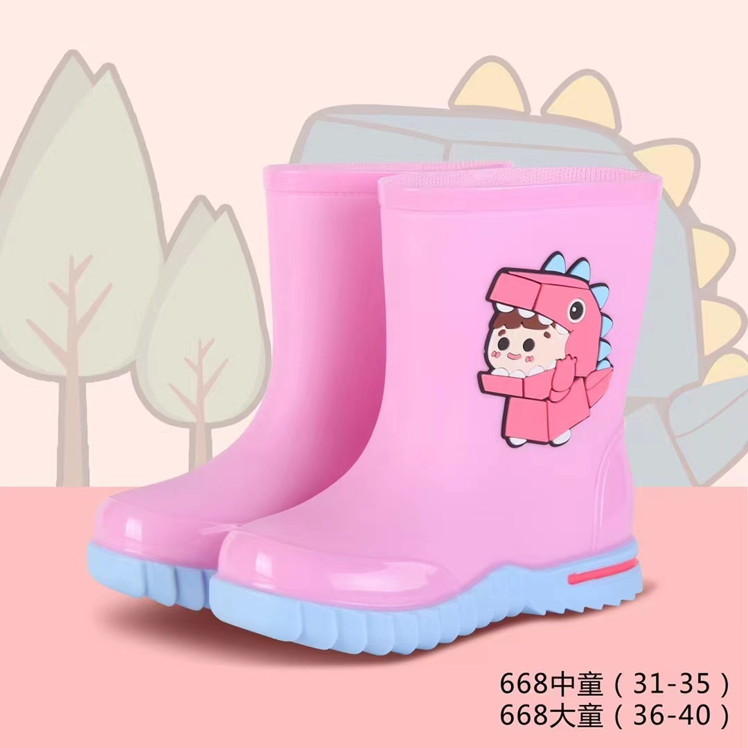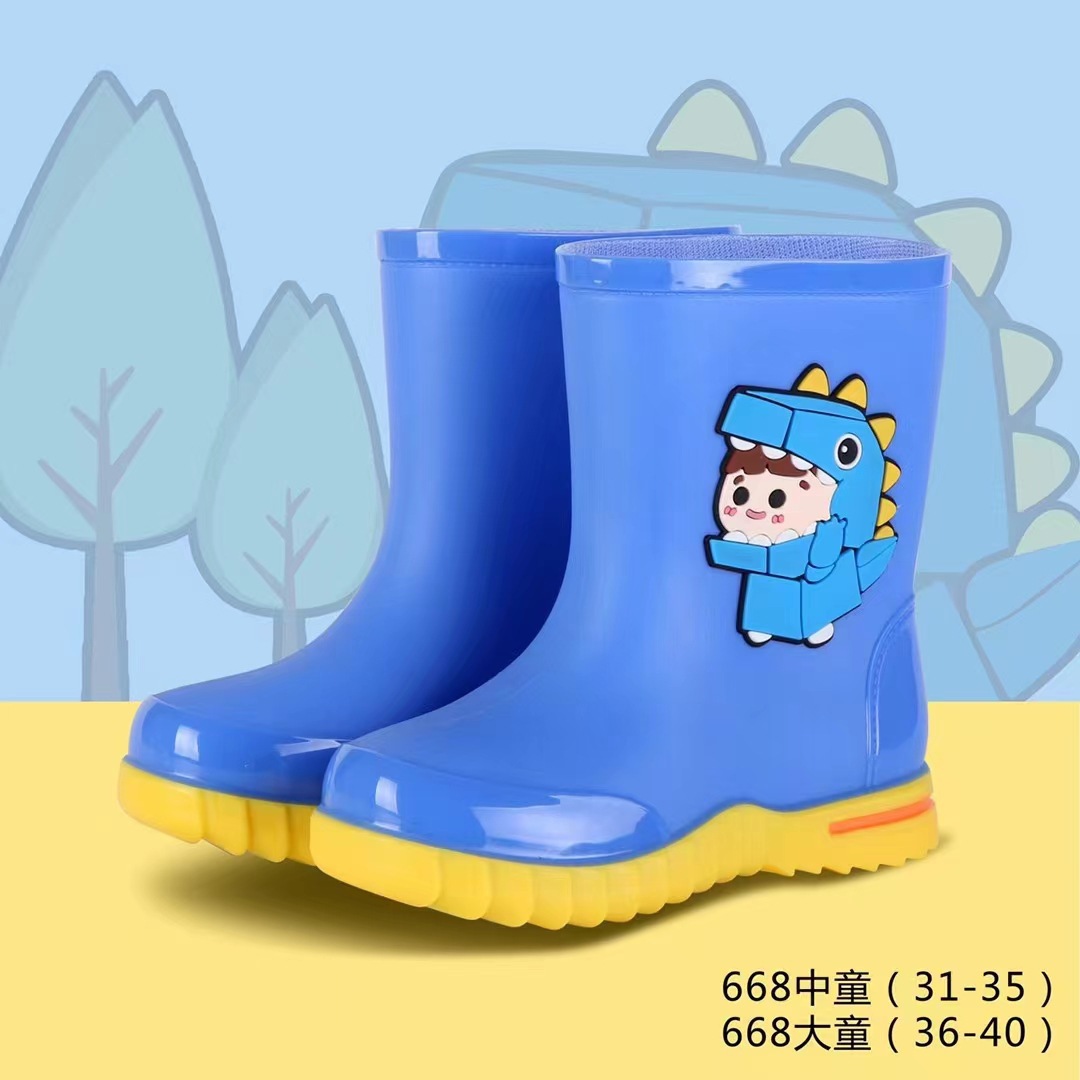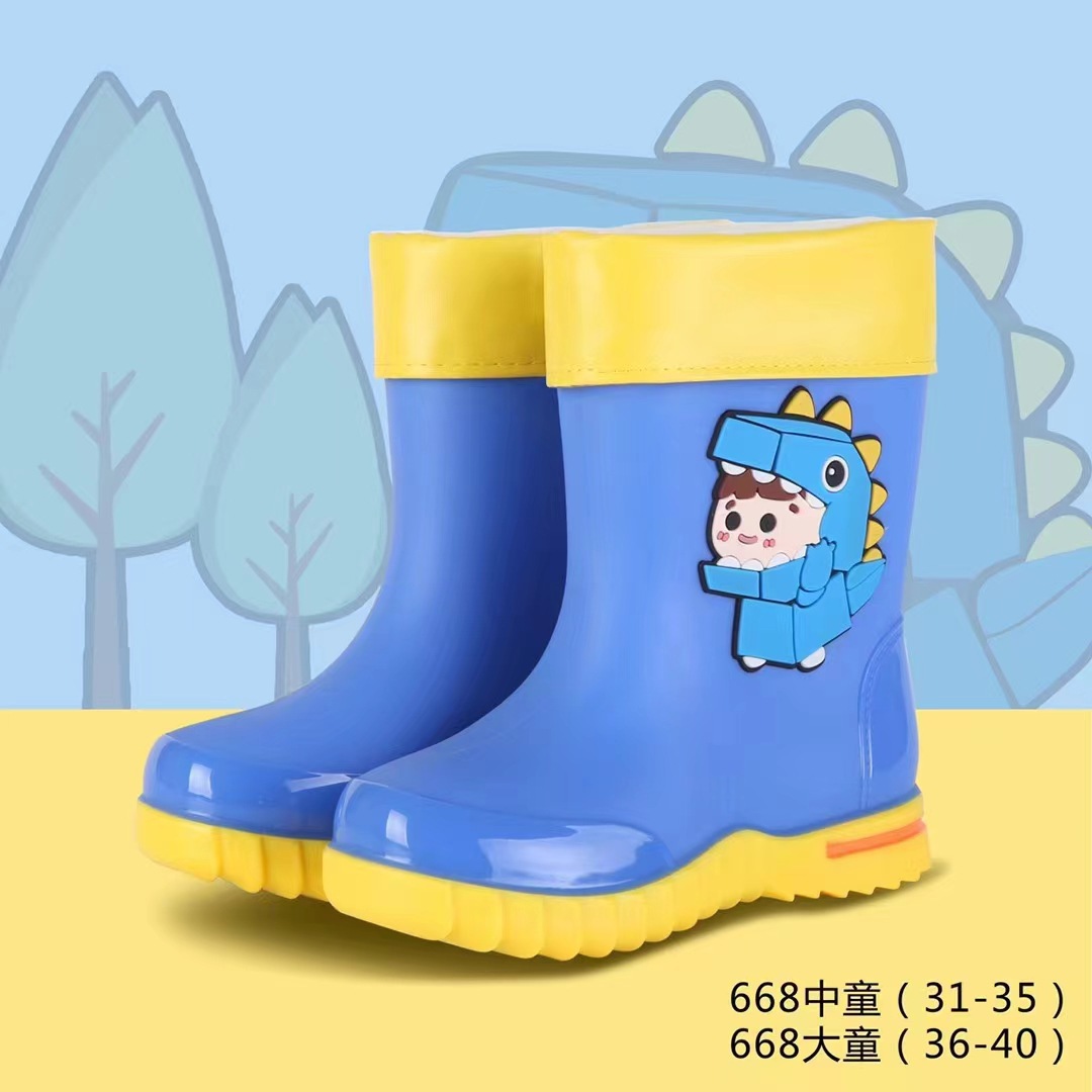Kuangjia Shoes Gongangbao 668 어린이 장화 만화 소년과 소녀 미끄럼 방지 장화 초등학생 방수 장화