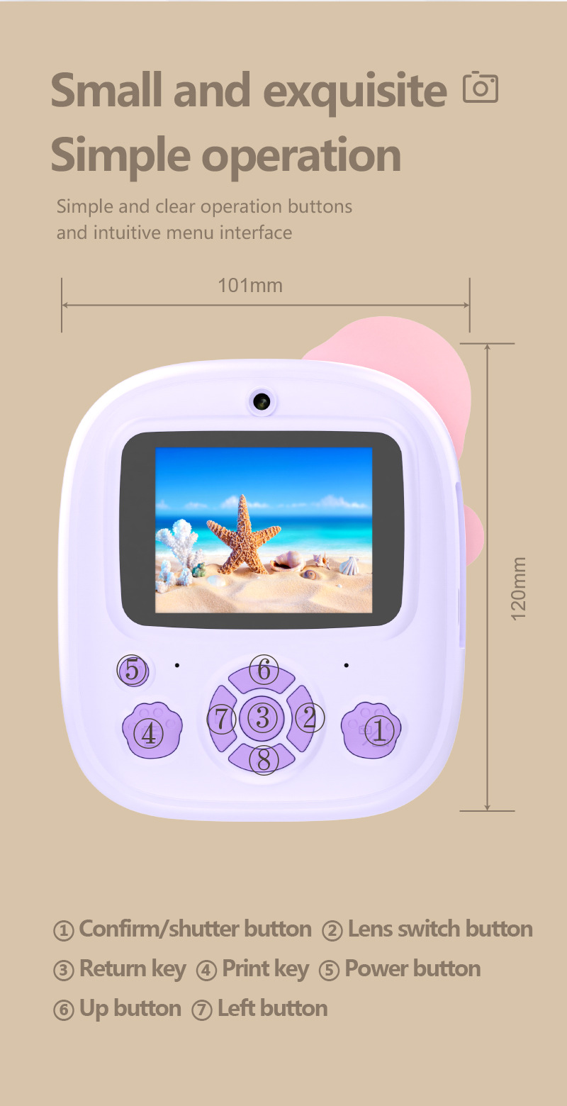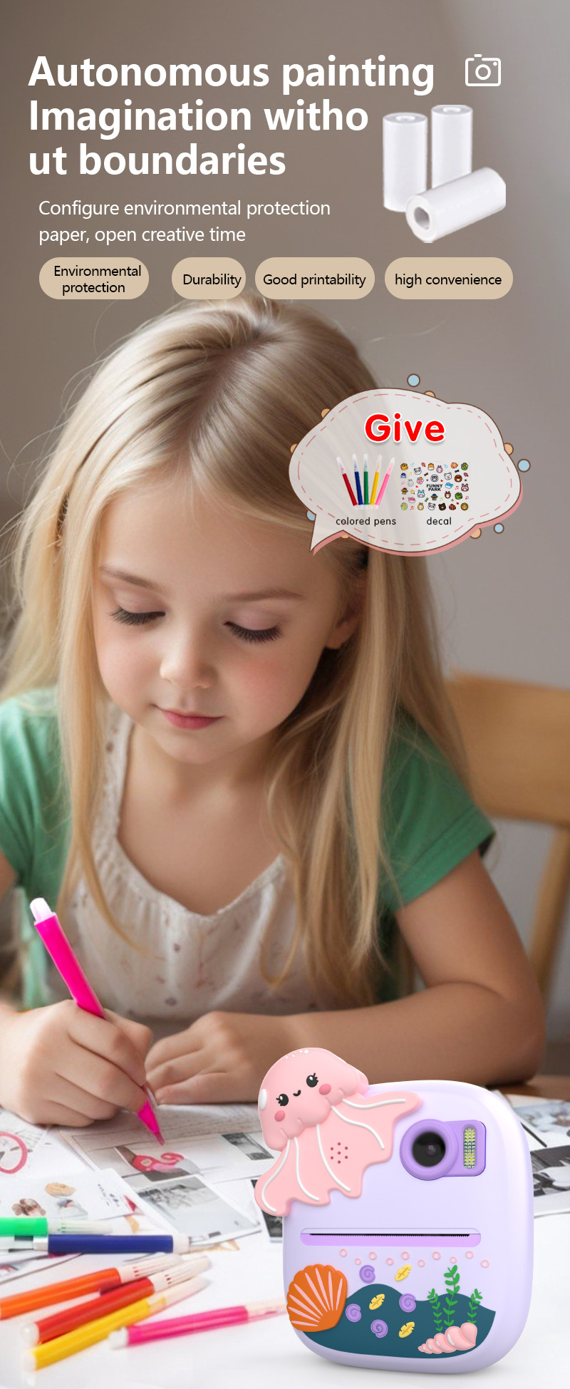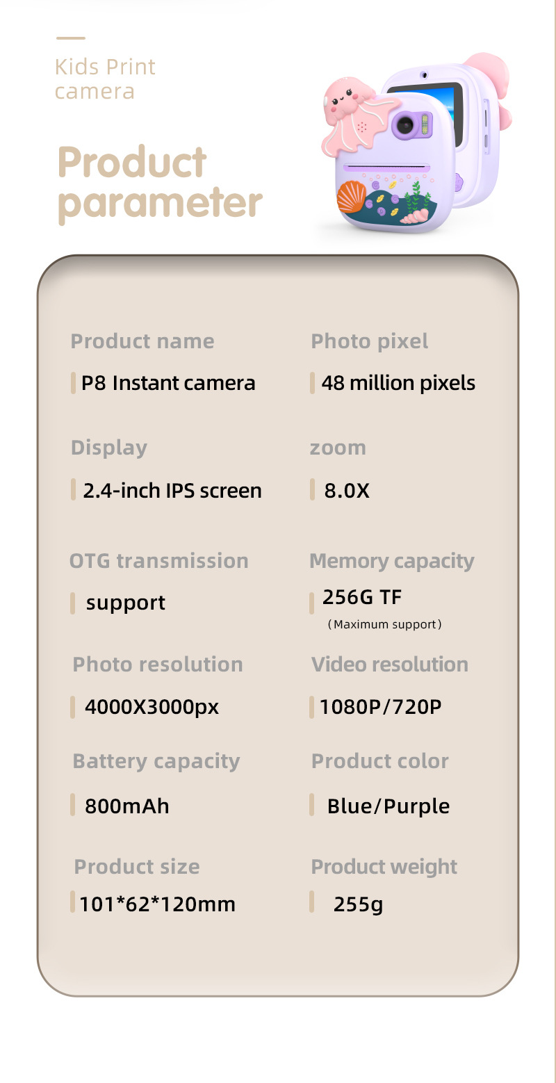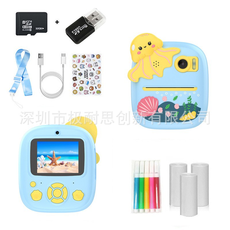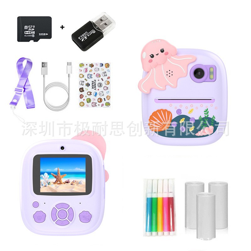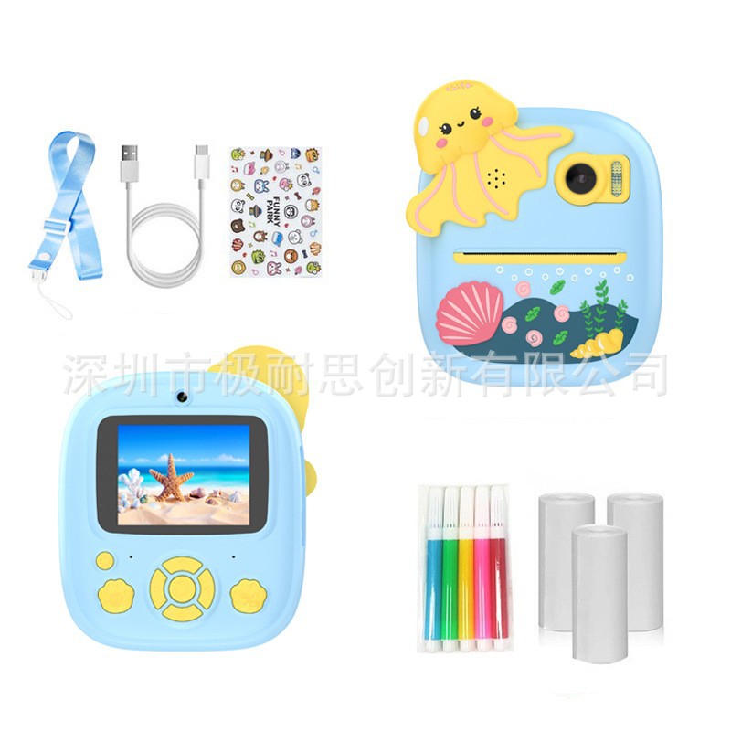 국경 간 새로운 P8 어린이 디지털 만화 해파리 카메라 고화질 듀얼 카메라 인쇄 카메라