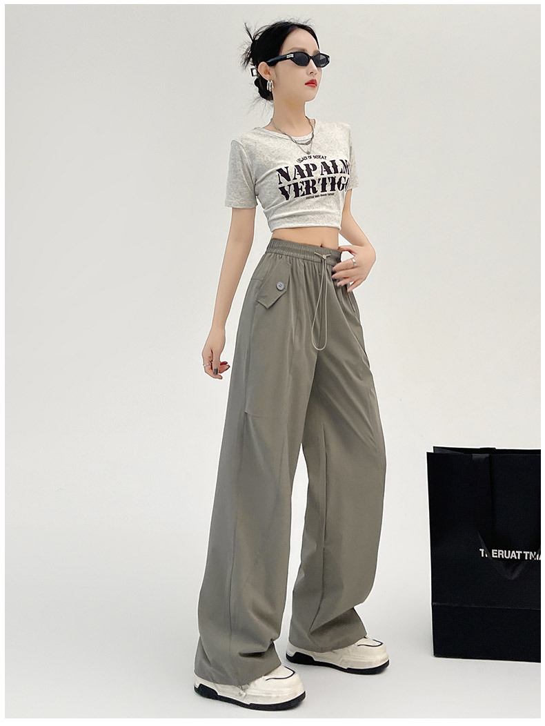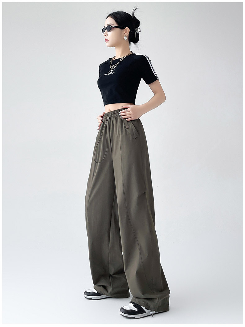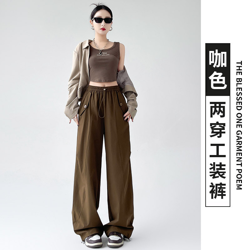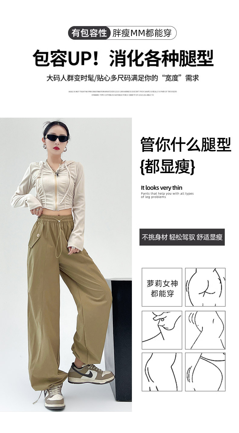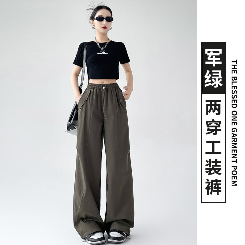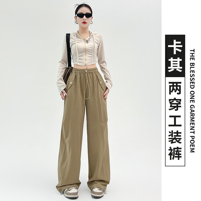 카키 미국 오버홀 여성의 봄과 여름 2025 새로운 높은 허리 슬리밍 느슨한 넓은 다리 캐주얼 스포츠 등산 바지스토어 가기