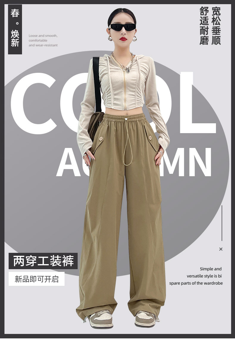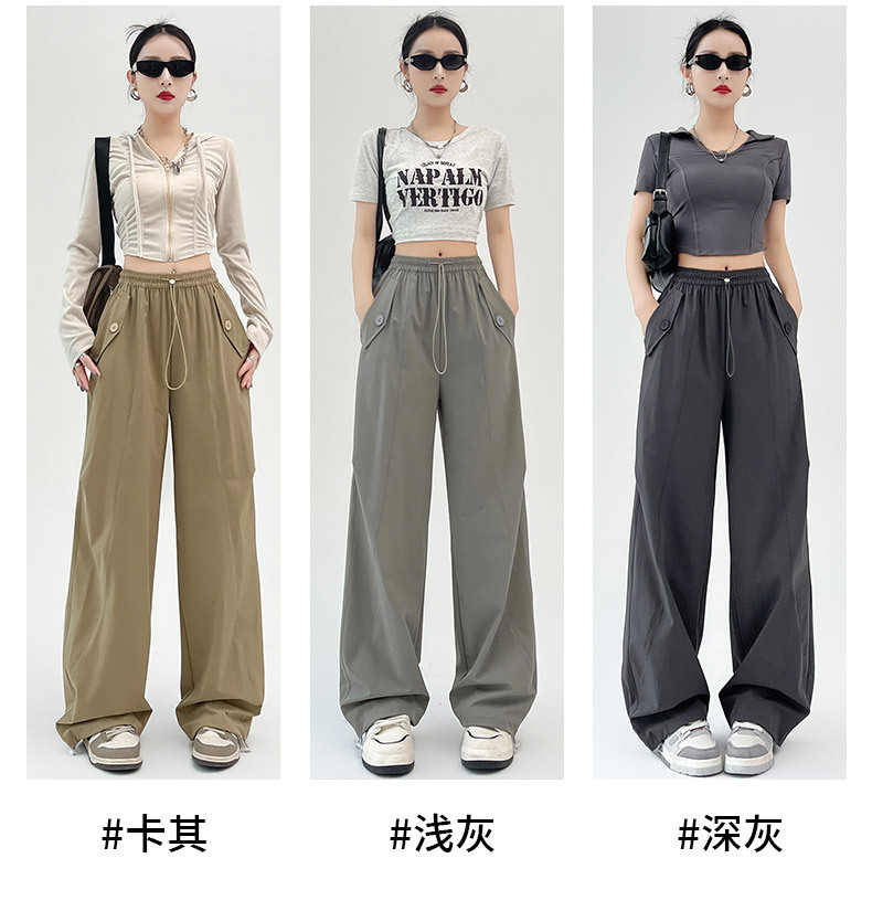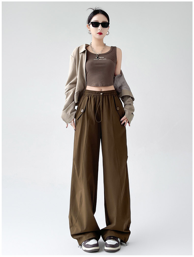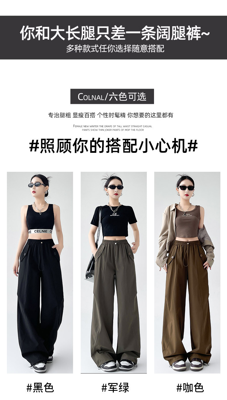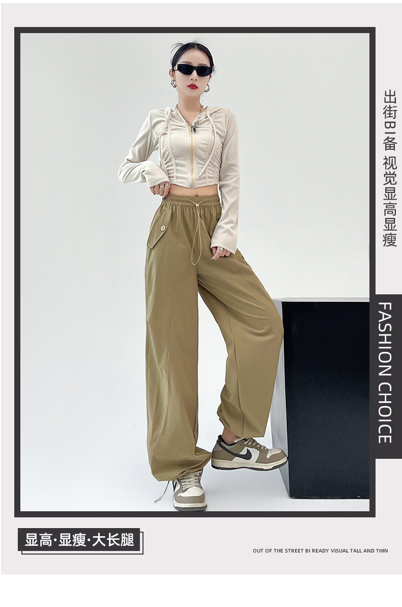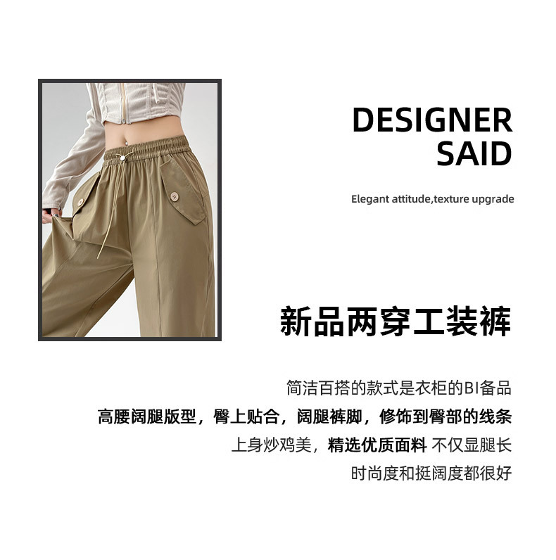카키 미국 오버홀 여성의 봄과 여름 2025 새로운 높은 허리 슬리밍 느슨한 넓은 다리 캐주얼 스포츠 등산 바지스토어 가기