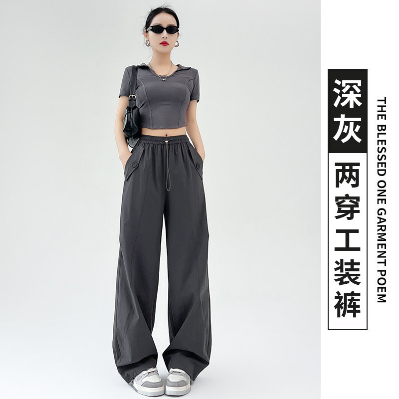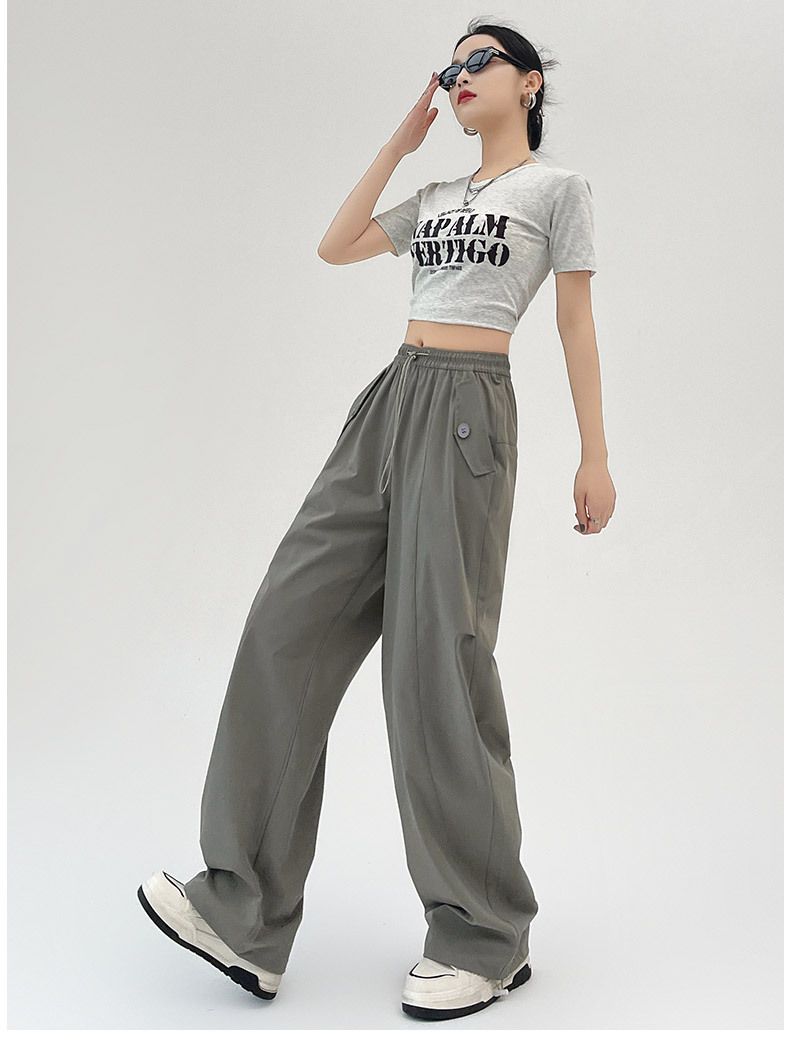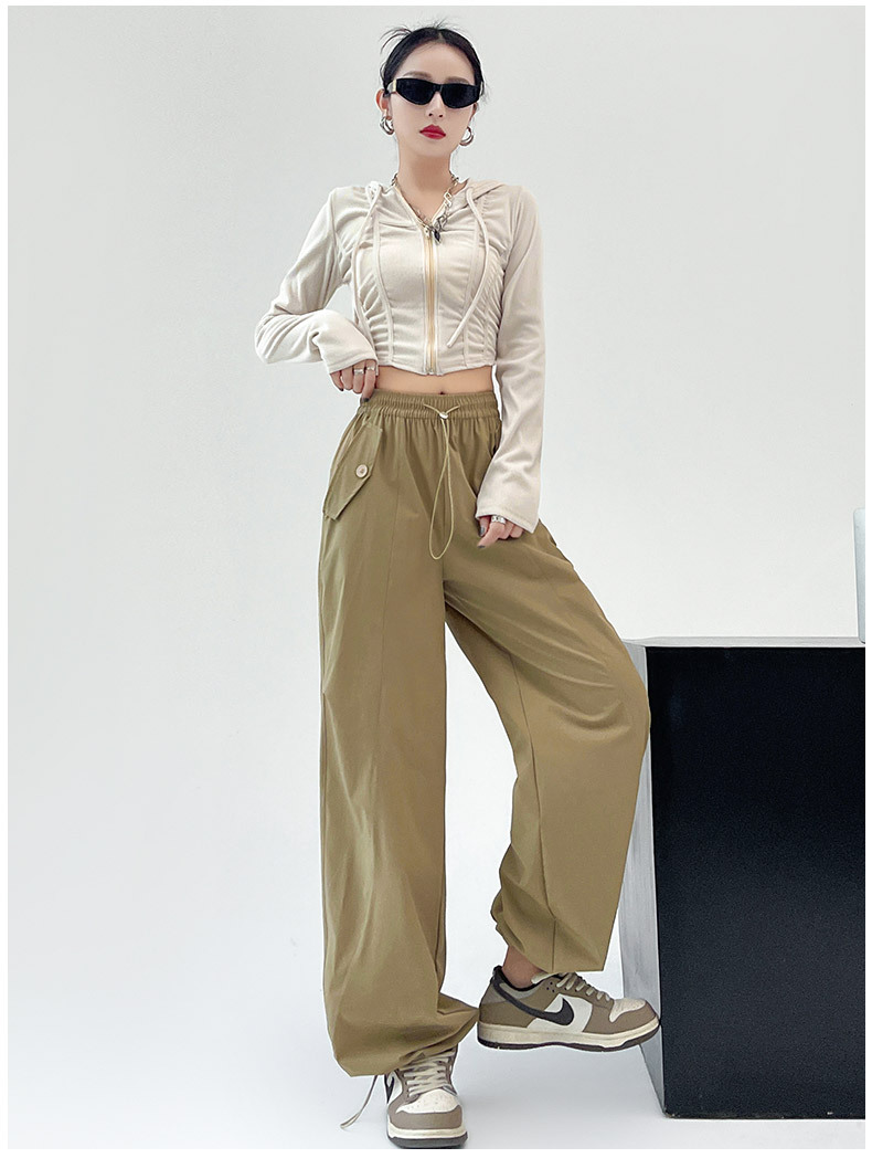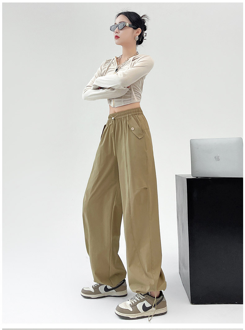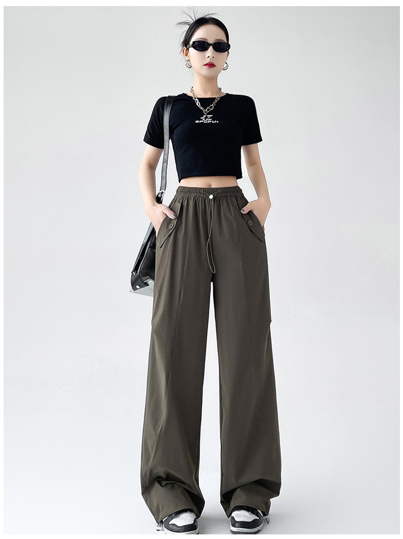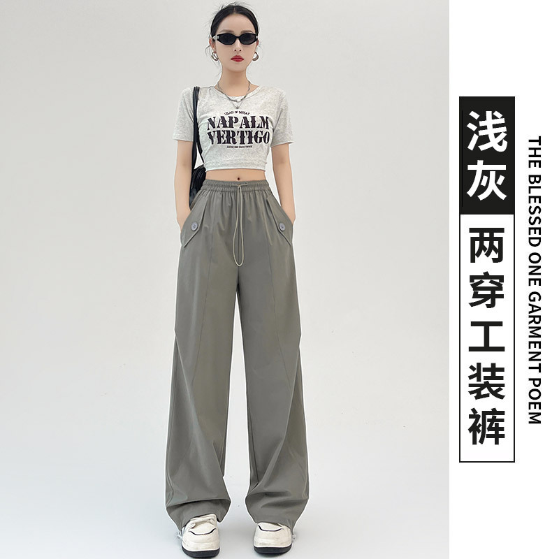 카키 미국 오버홀 여성의 봄과 여름 2025 새로운 높은 허리 슬리밍 느슨한 넓은 다리 캐주얼 스포츠 등산 바지스토어 가기