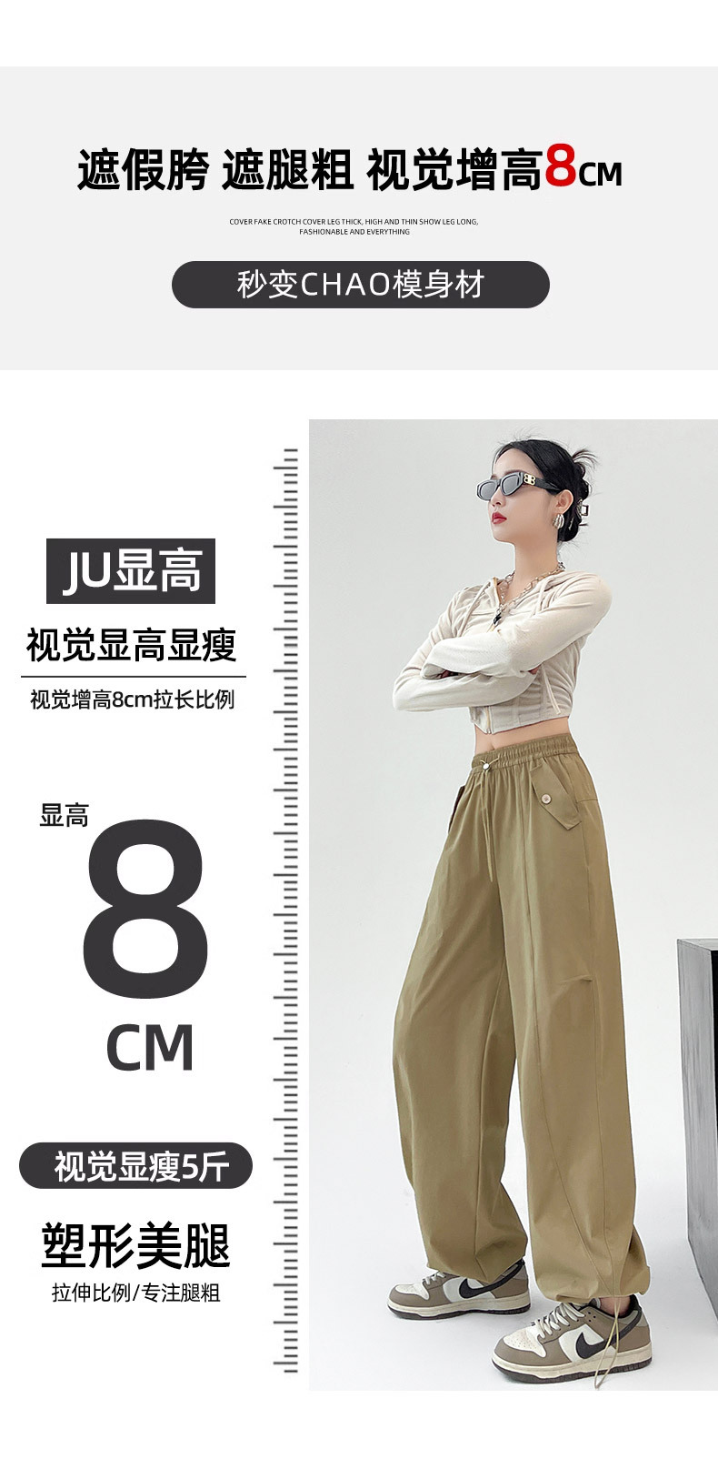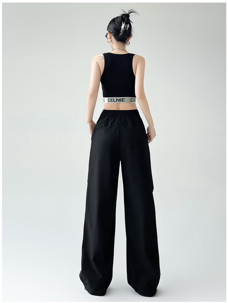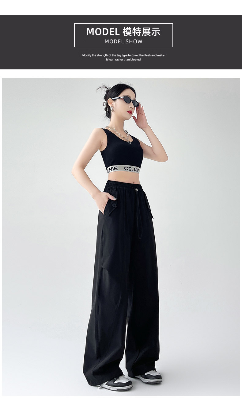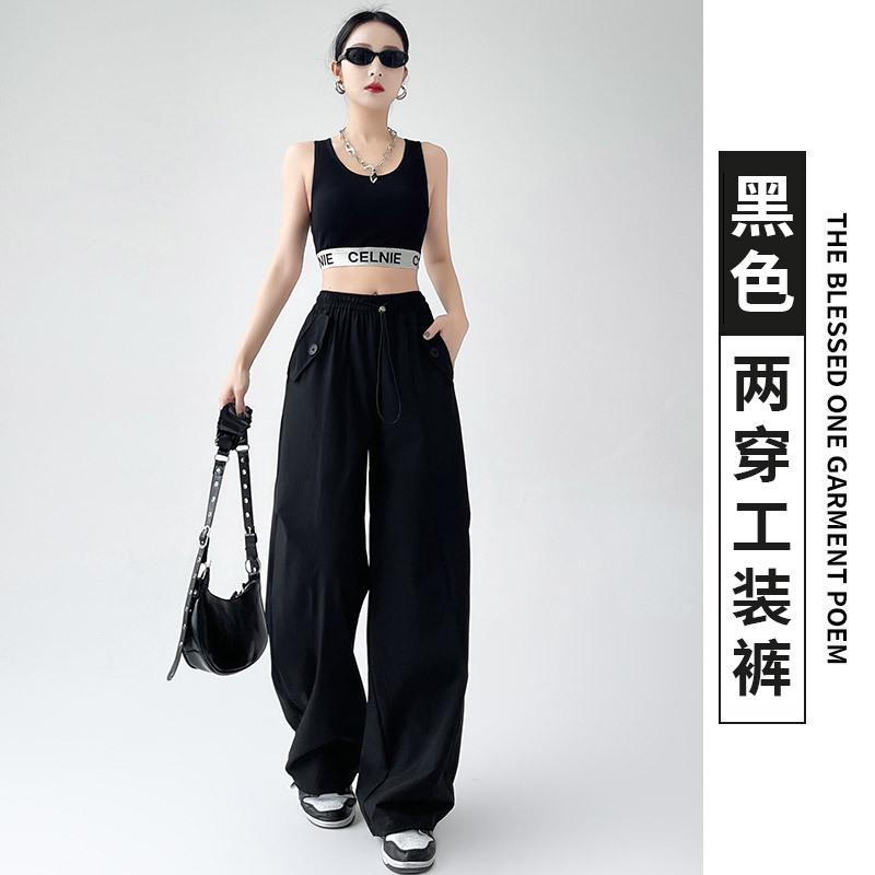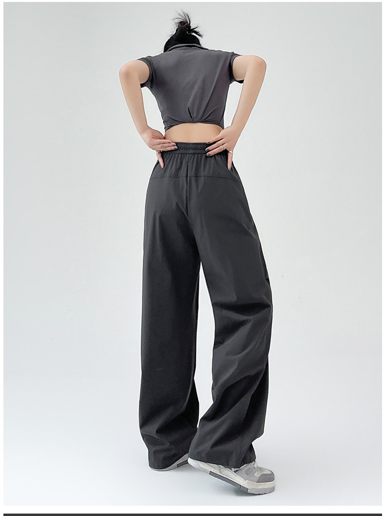카키 미국 오버홀 여성의 봄과 여름 2025 새로운 높은 허리 슬리밍 느슨한 넓은 다리 캐주얼 스포츠 등산 바지스토어 가기