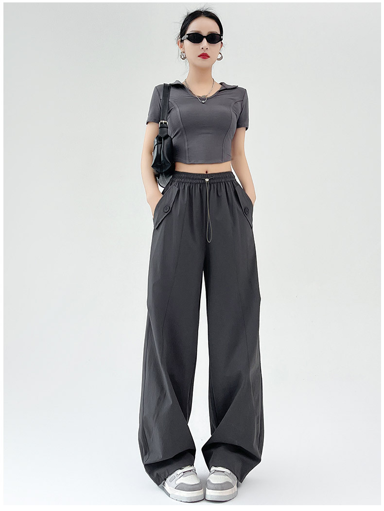 카키 미국 오버홀 여성의 봄과 여름 2025 새로운 높은 허리 슬리밍 느슨한 넓은 다리 캐주얼 스포츠 등산 바지