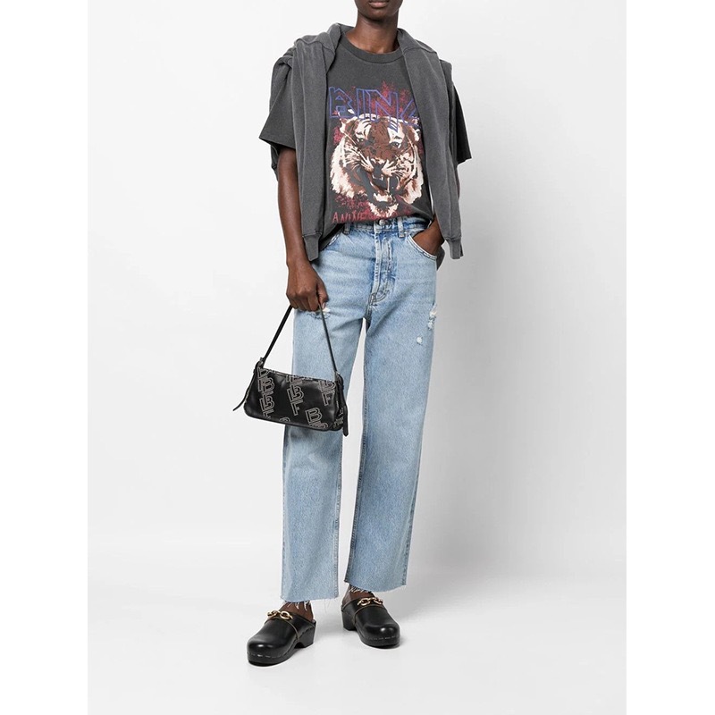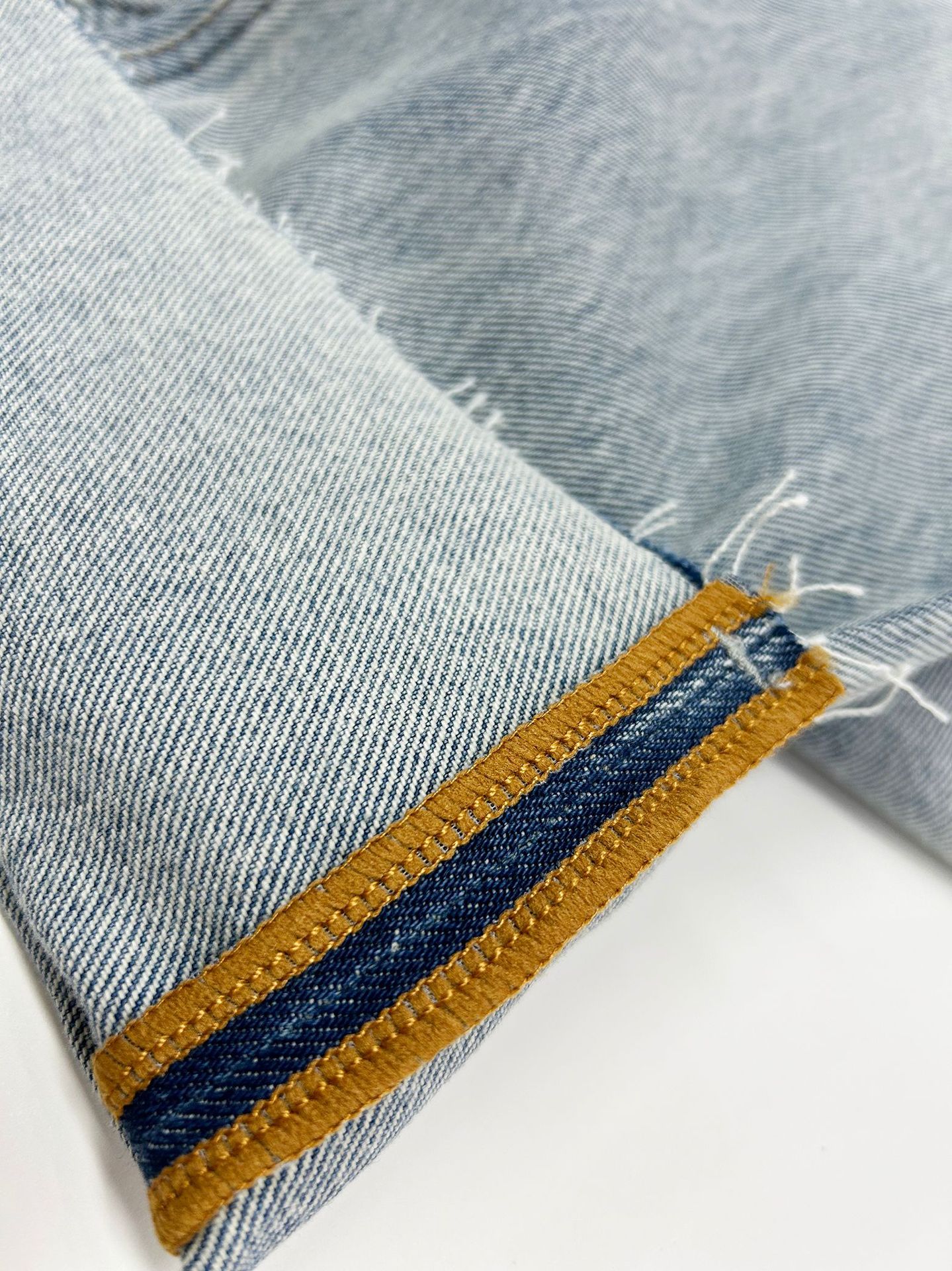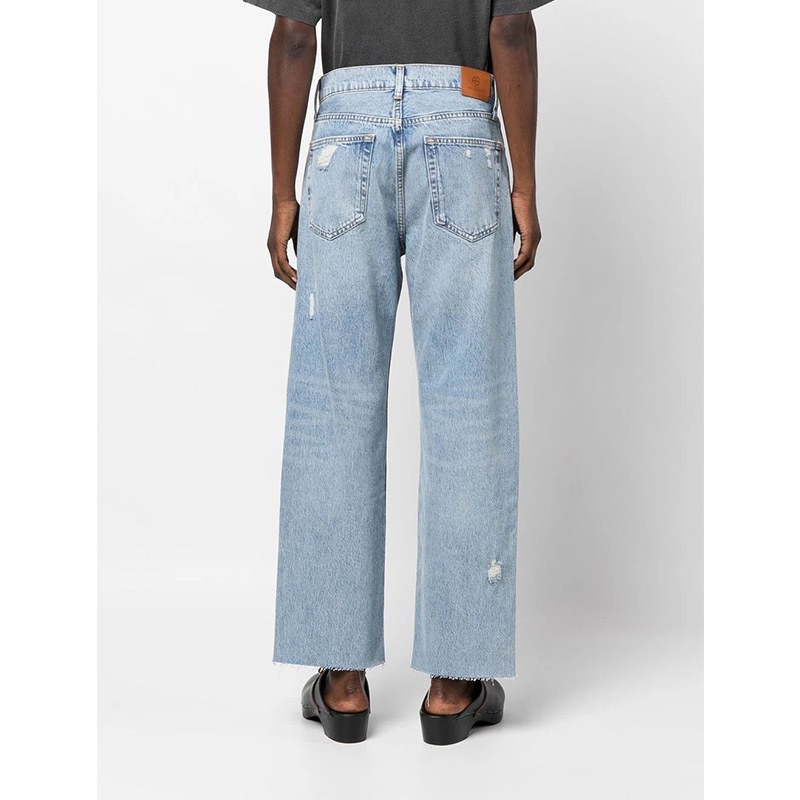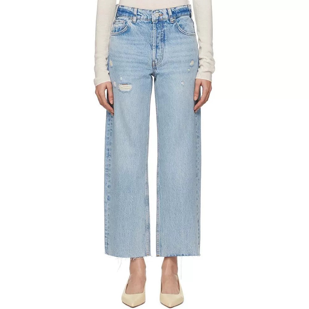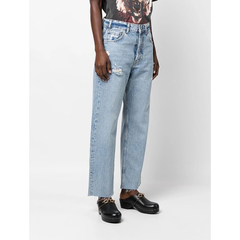 이른 봄 2025 새로운 유럽과 미국의 AB 같은 스타일 높은 허리 라이트 블루 수제 스트레이트 스트레이트 스크래스트 엣지 크롭 청바지스토어 가기